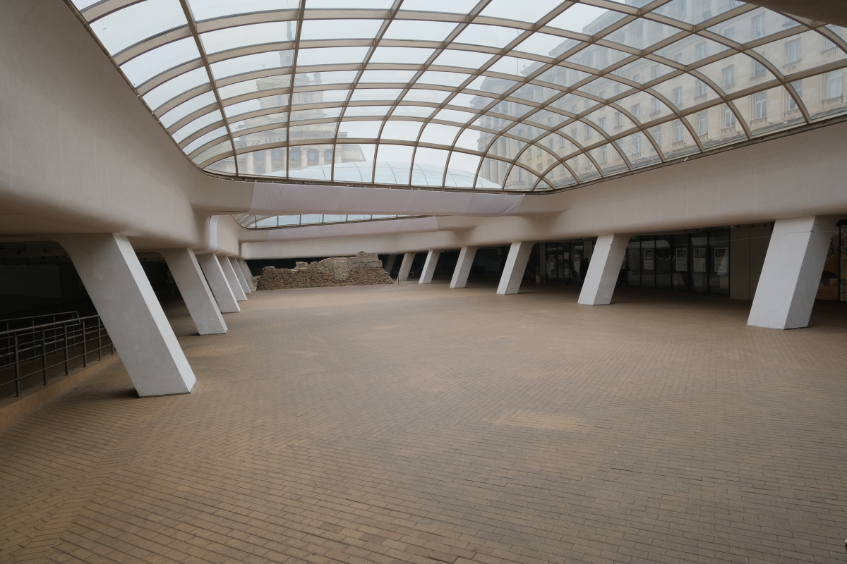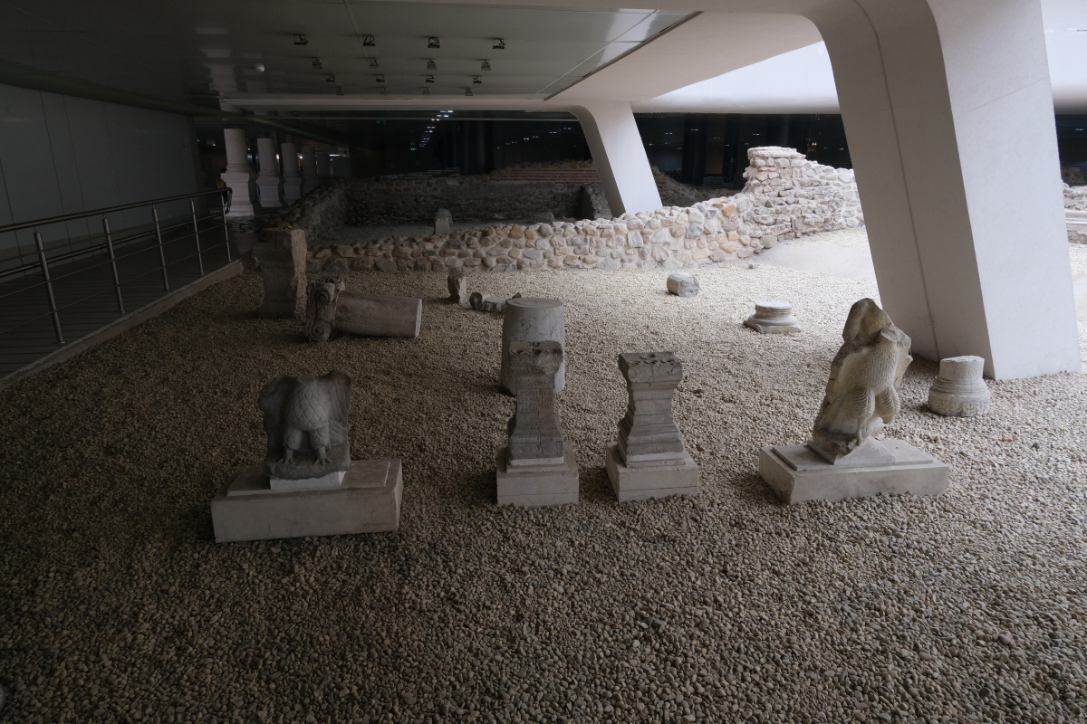 ガラスの下に遺跡が見える。