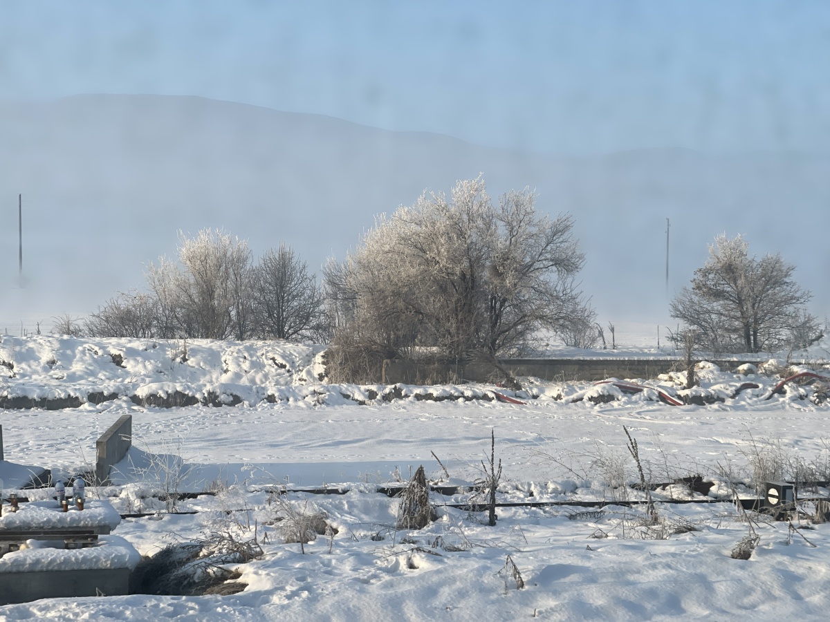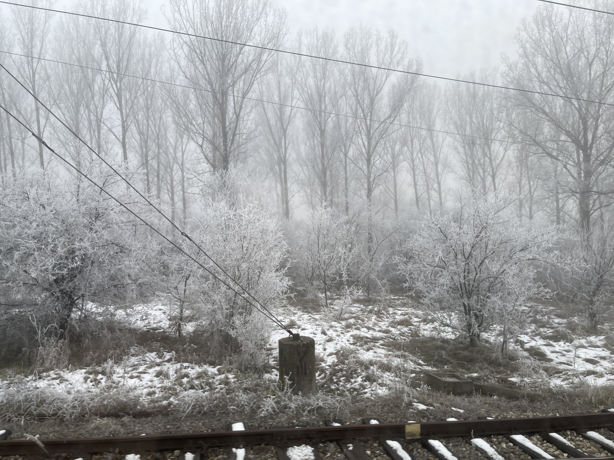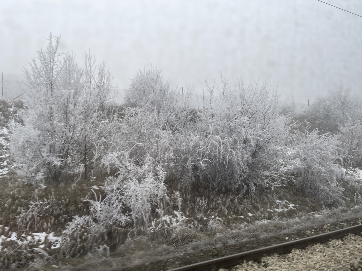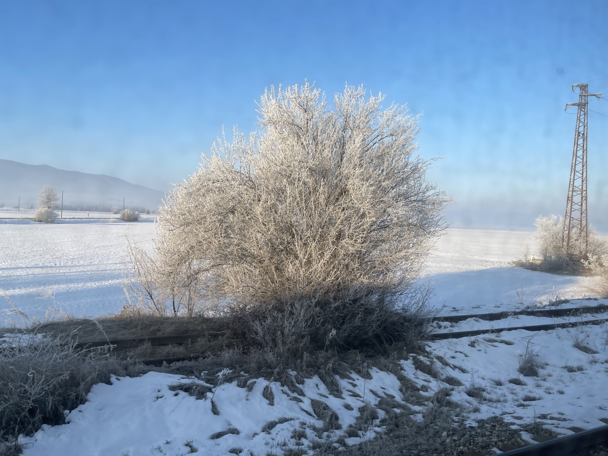 朝、目が覚めると列車の外は雪景色だった。