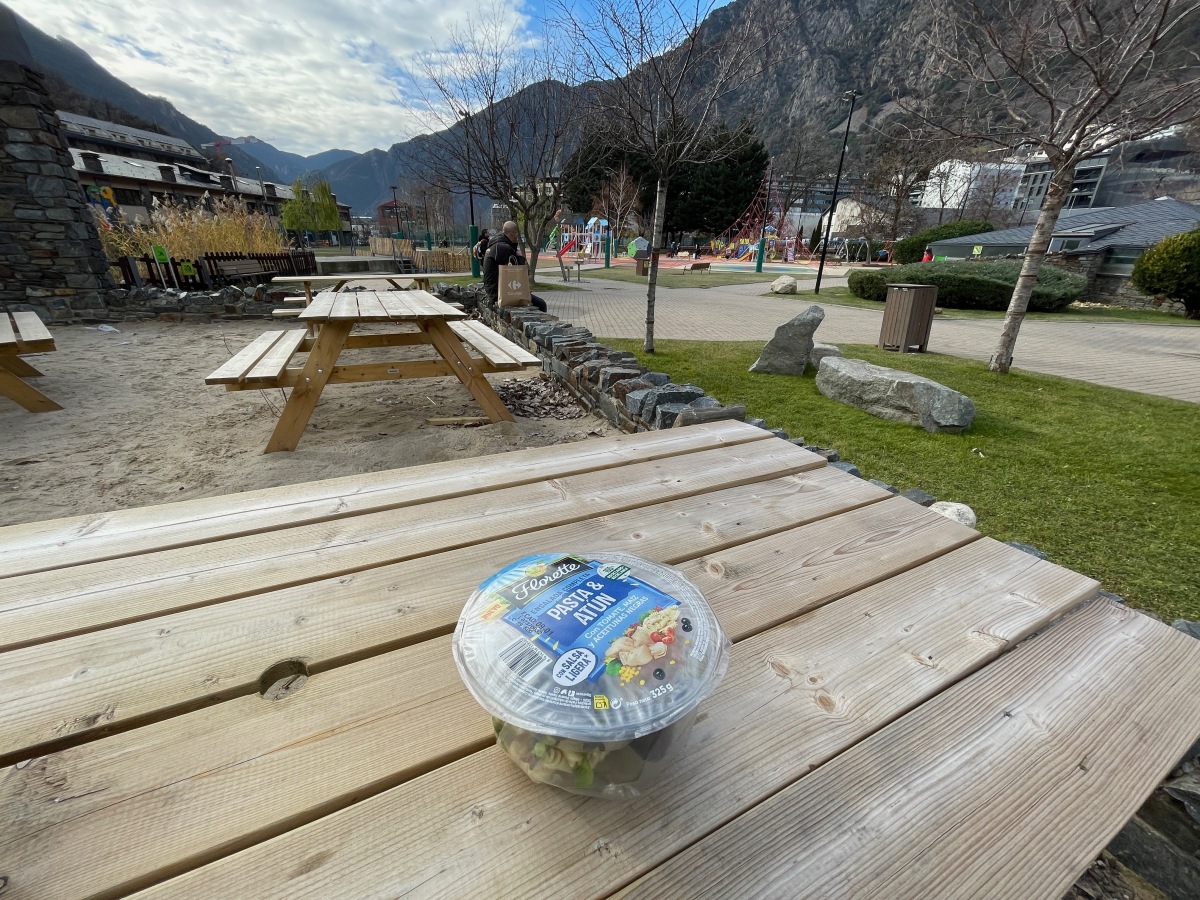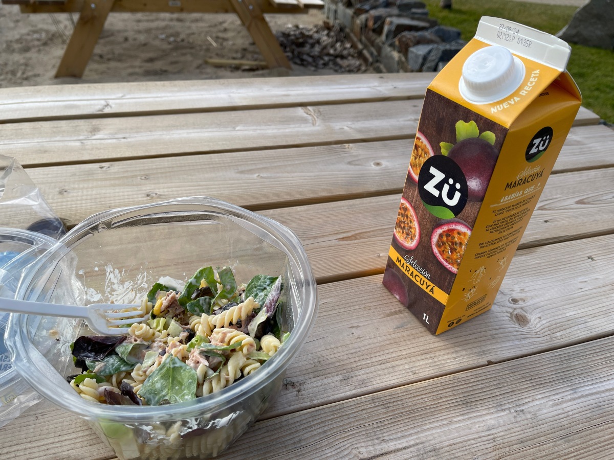 天気がいいので公園で昼食。スーパーで買ったサラダ。