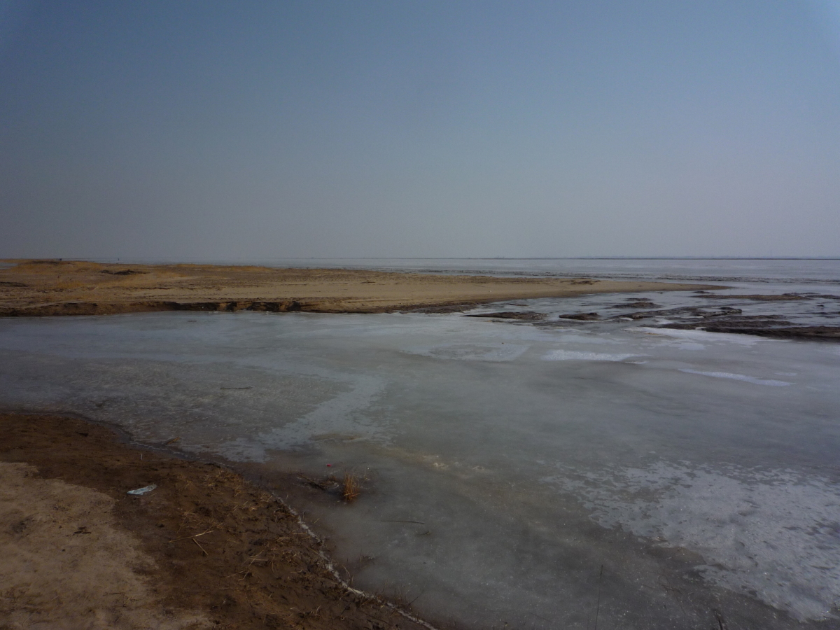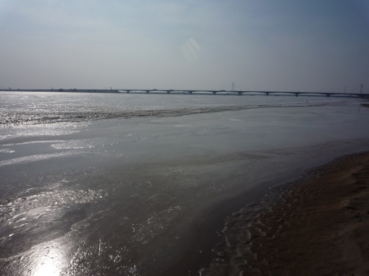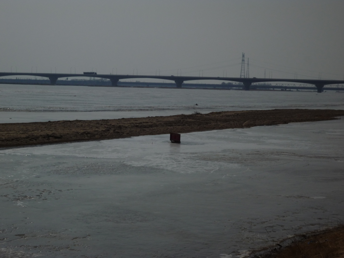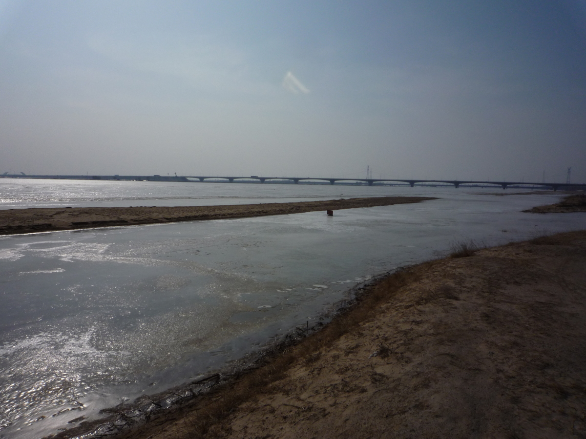 包頭の街の南側にある黄河。対岸はオルドス。 冬の黄河は完全に凍結する。