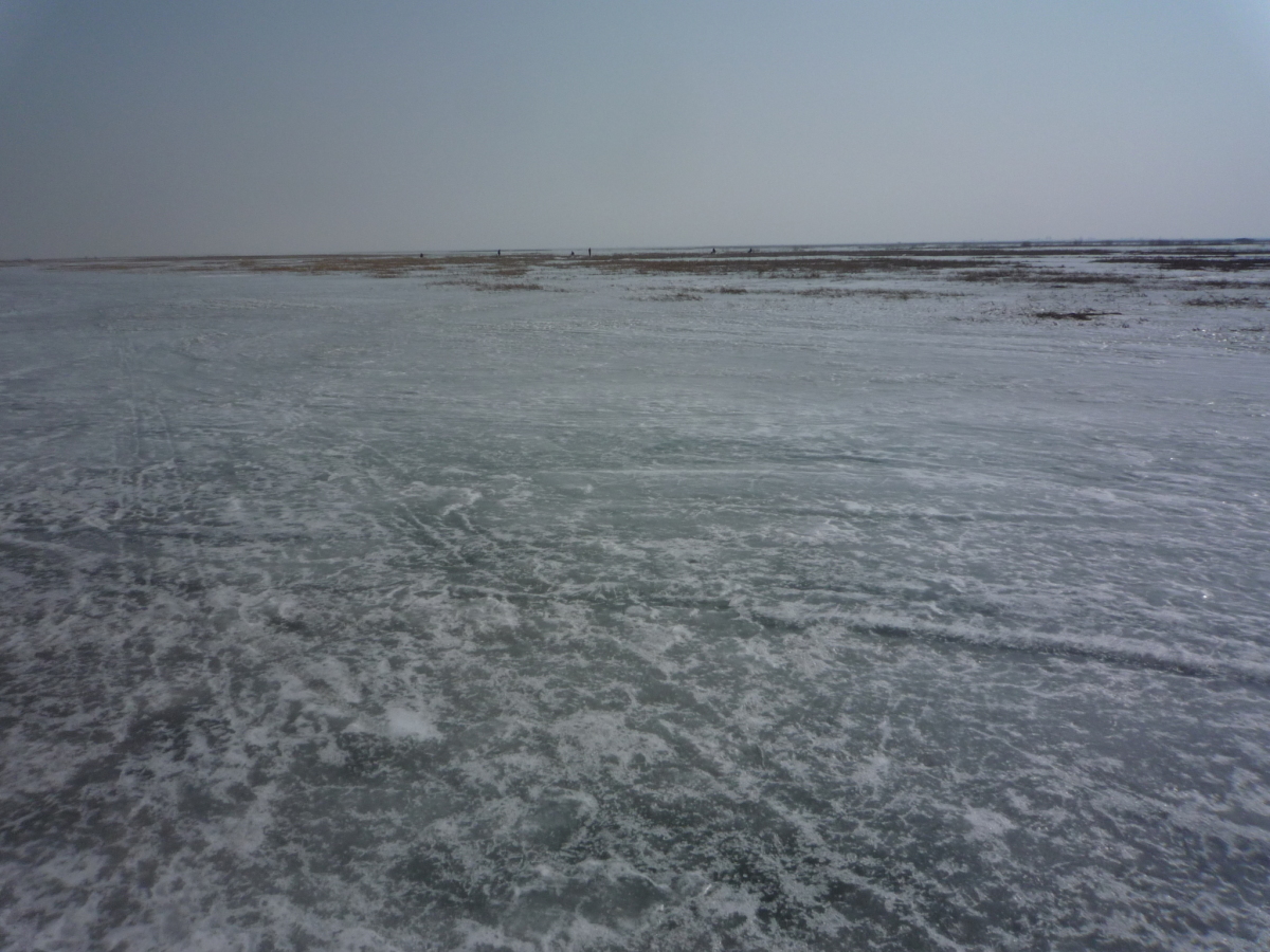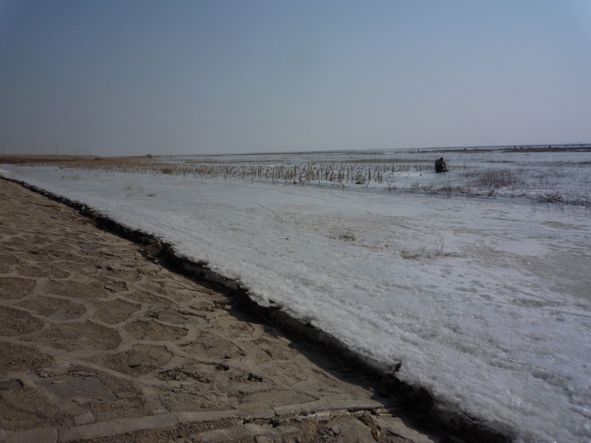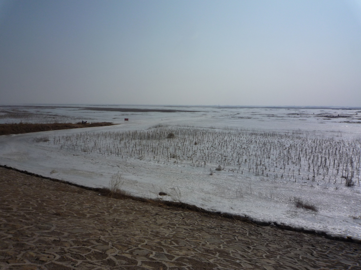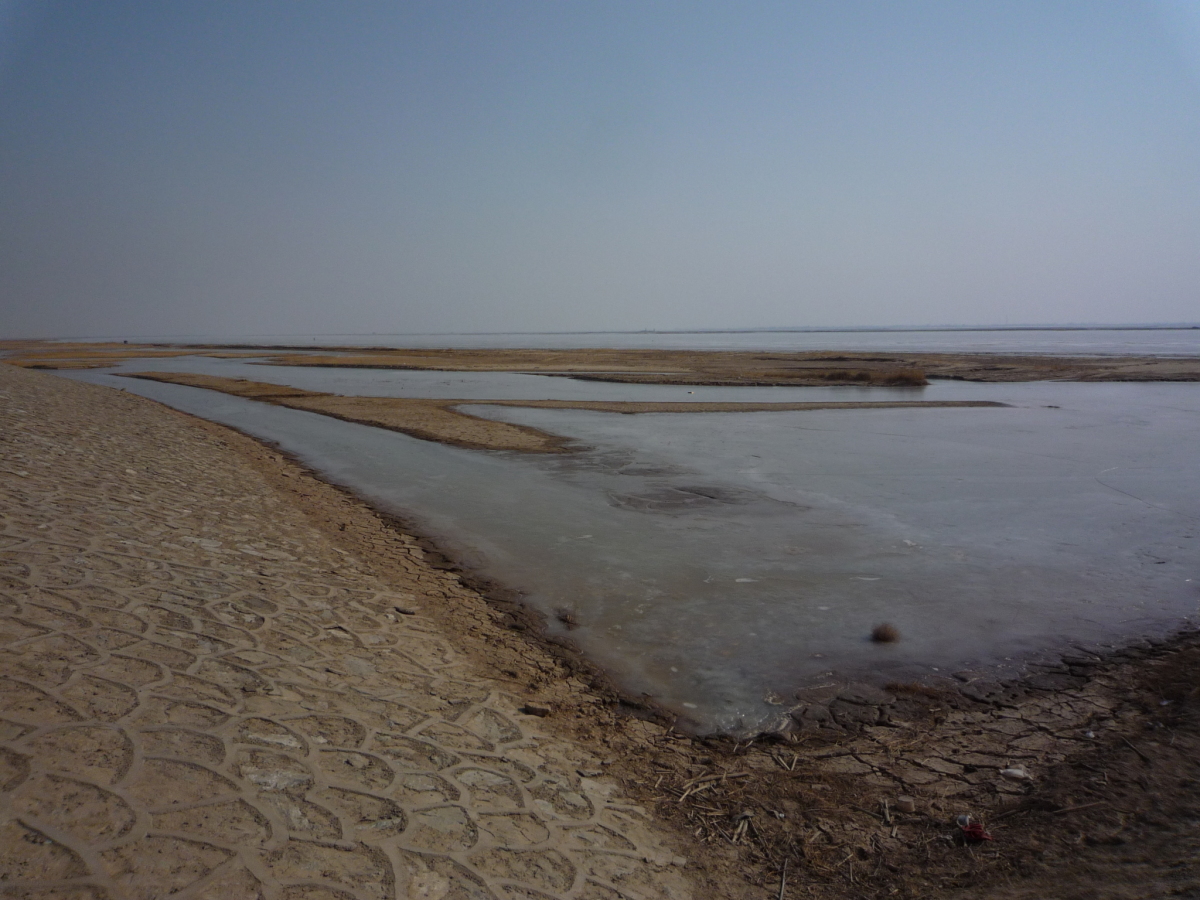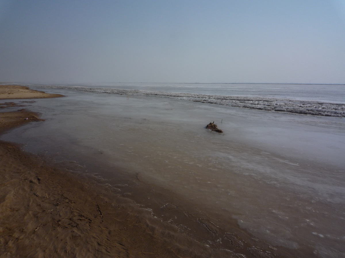 包頭の街の南側にある黄河。対岸はオルドス。 冬の黄河は完全に凍結する。
