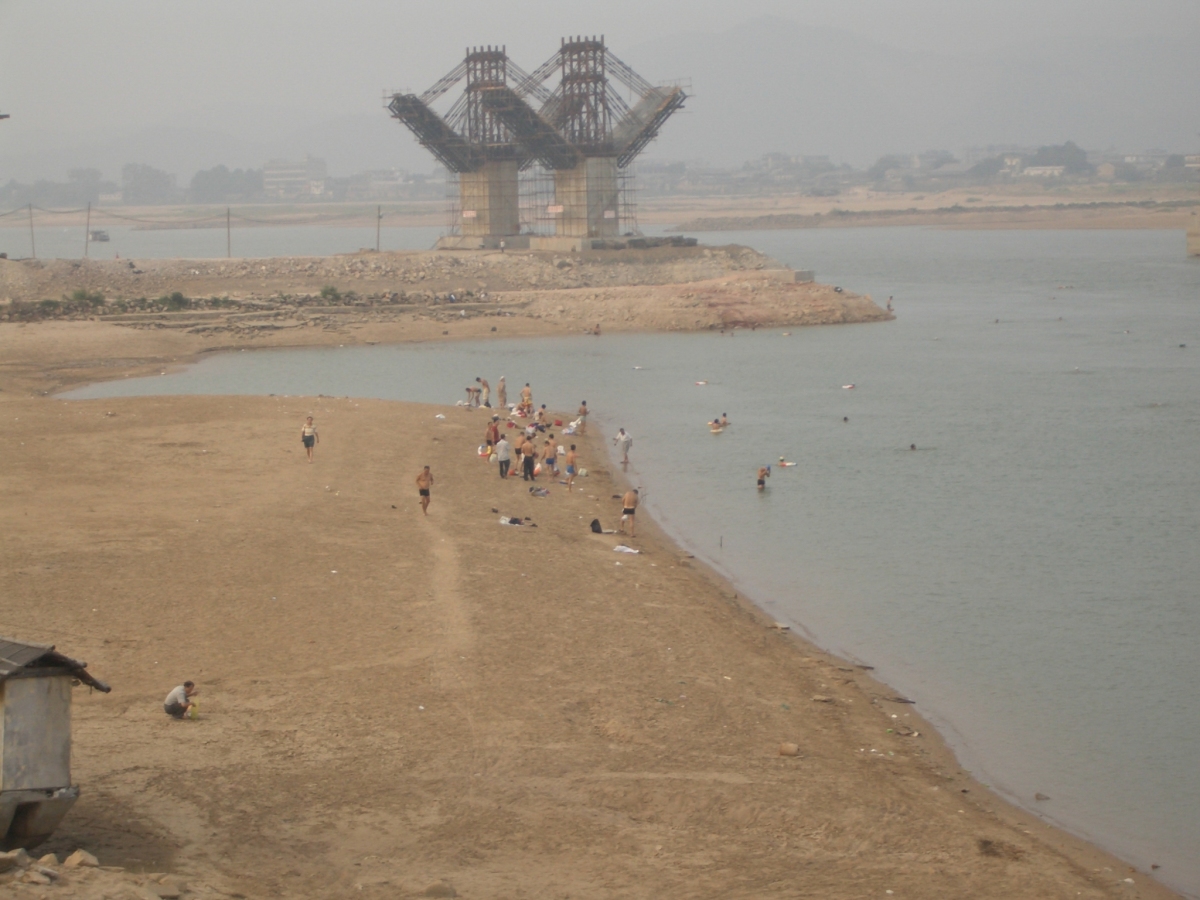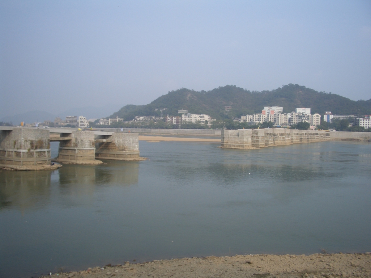 湘子橋。広済橋とも呼ばれる。 2010年にバスから見た時は立派な楼閣が建てられていた。