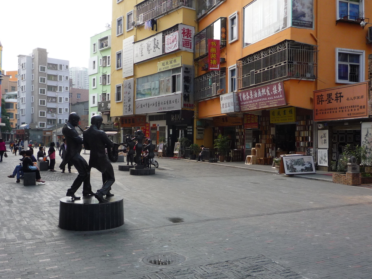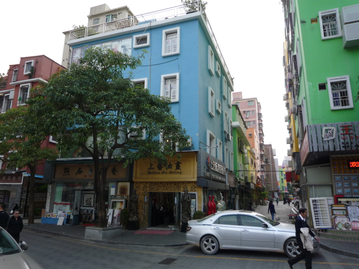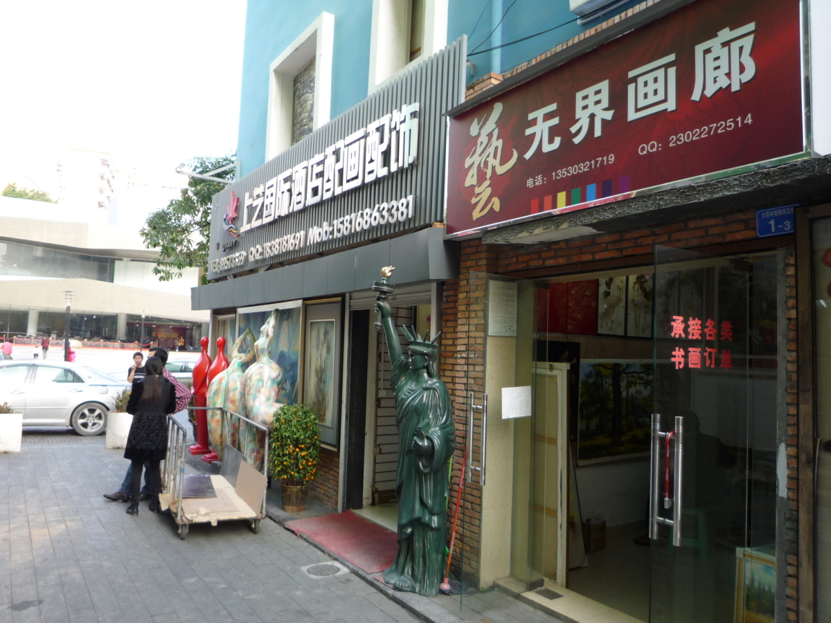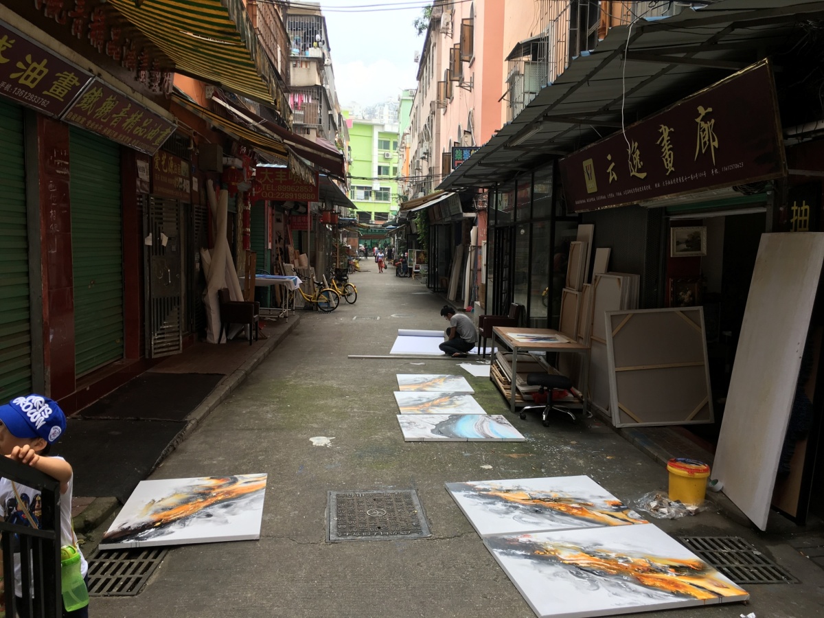 龍崗区布吉街道大芬村。 油絵に限らず、水墨画やオブジェ、画材などを売っている。 フェイク品で有名だったが、そういう物は表立っては売っていない。