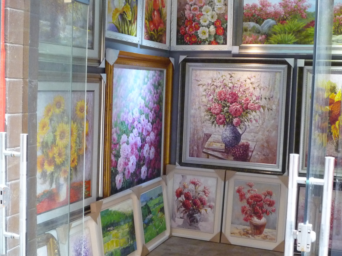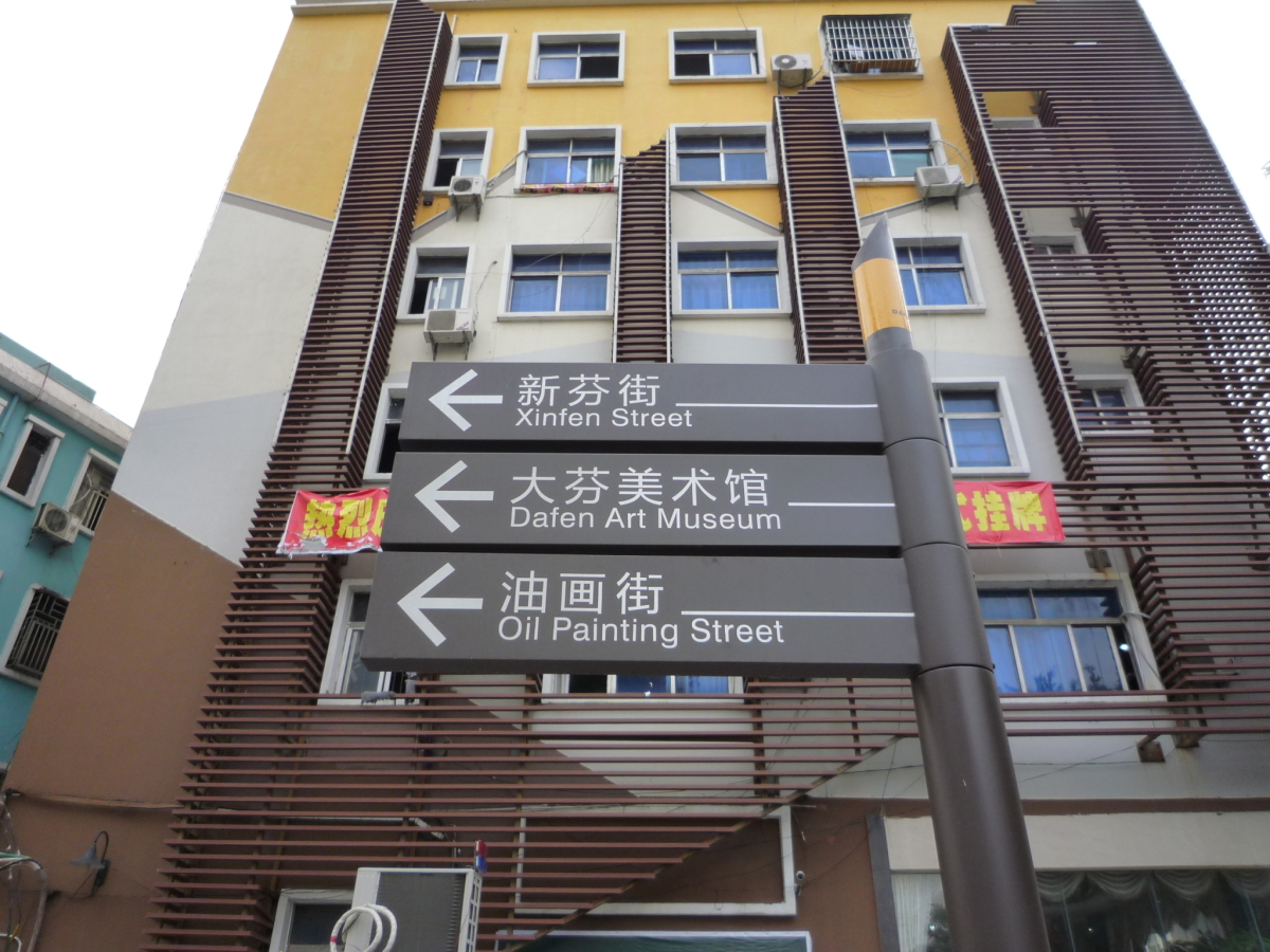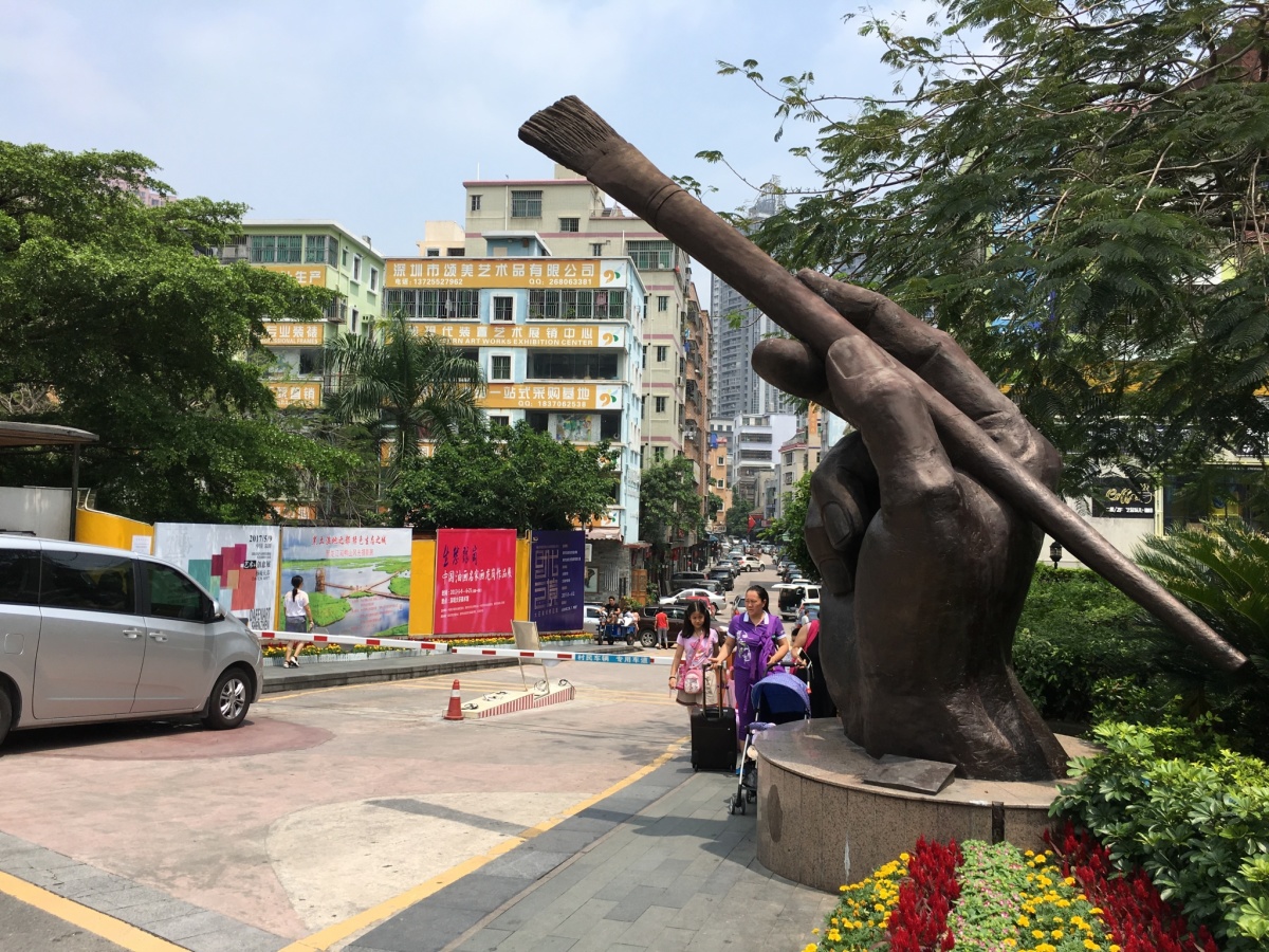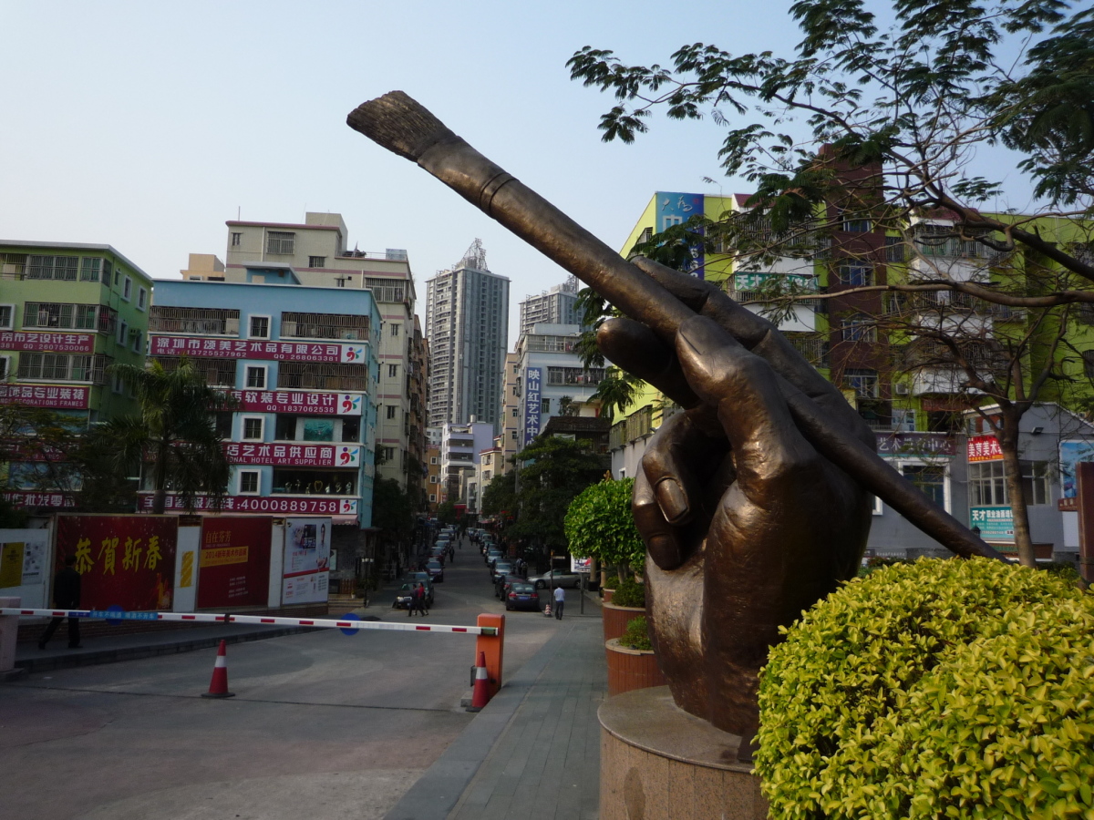 龍崗区布吉街道大芬村。 油絵に限らず、水墨画やオブジェ、画材などを売っている。 フェイク品で有名だったが、そういう物は表立っては売っていない。