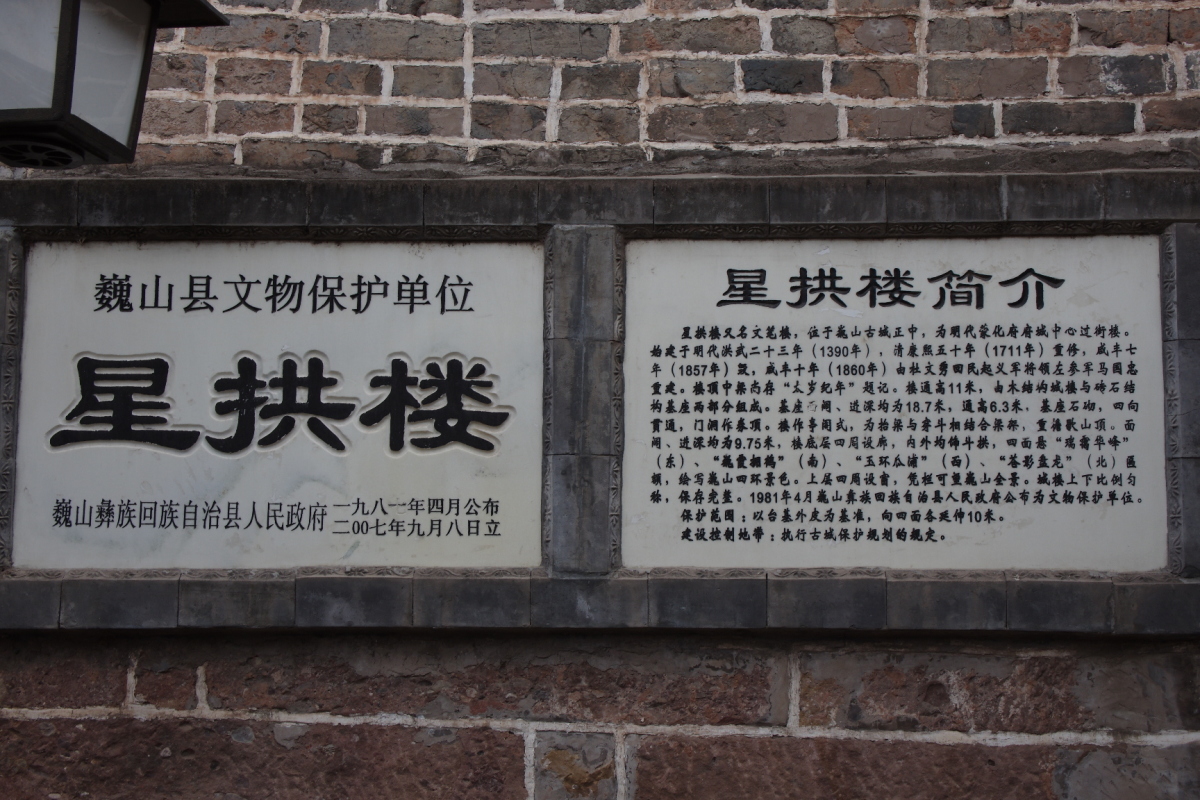 南詔国の発祥地とされる。 明代は蒙化府城。 巍山彝族回族自治県の県城である南詔鎮にある。 北門と鼓楼がある。