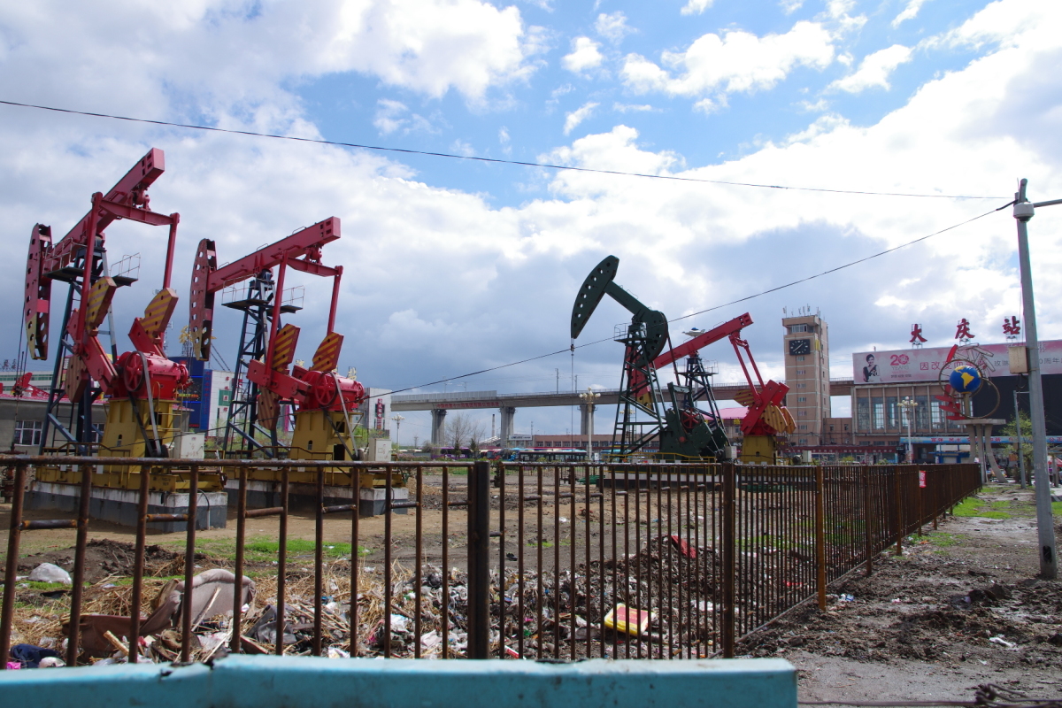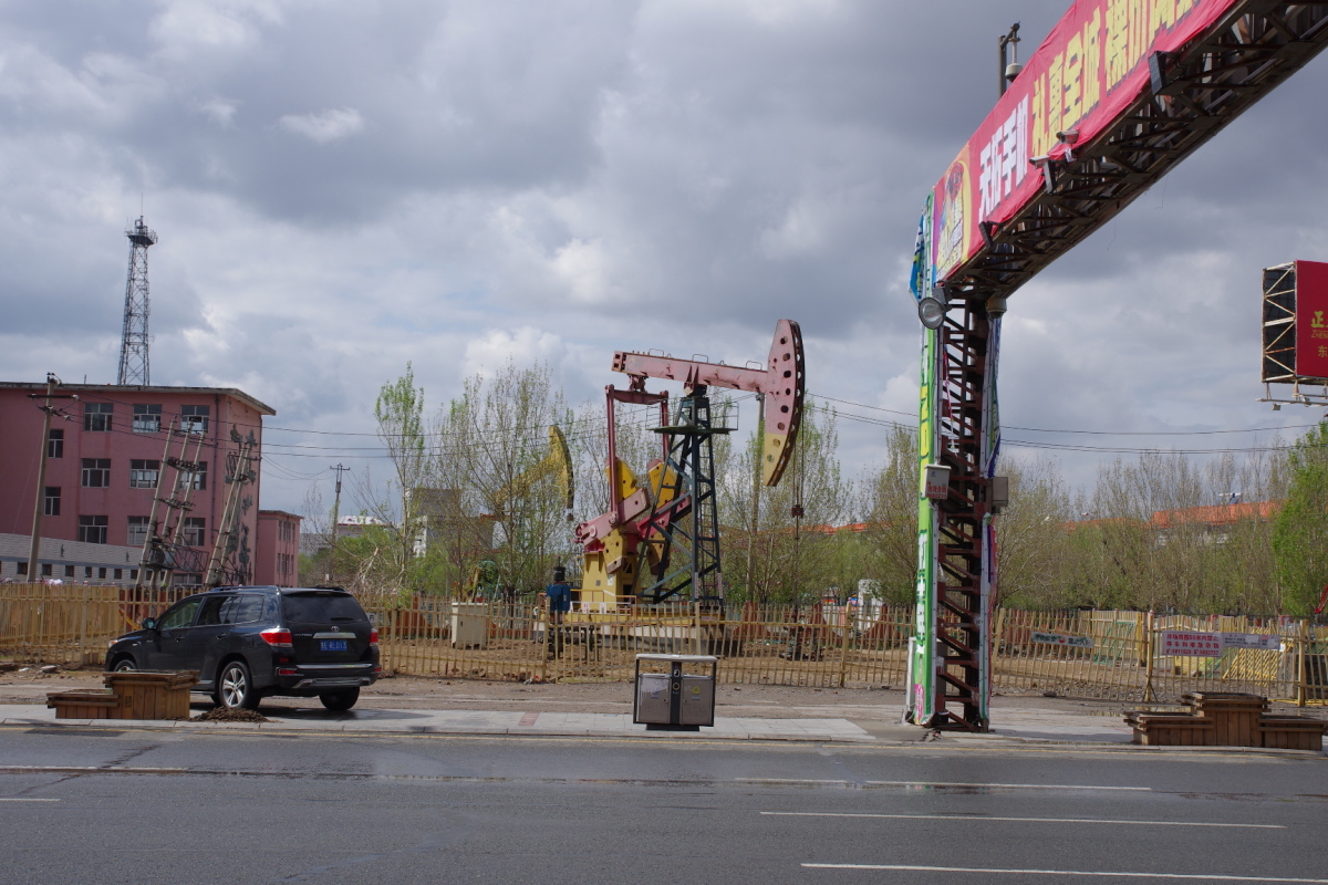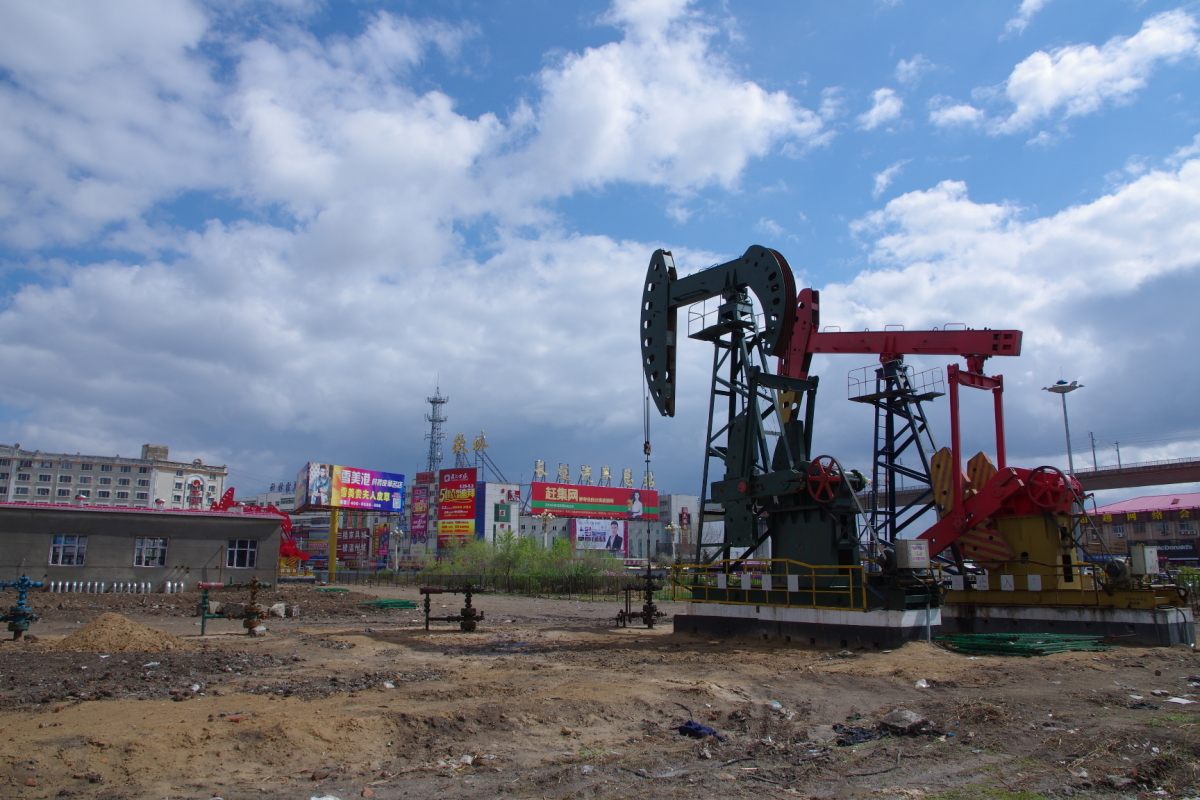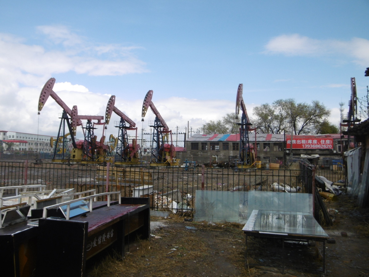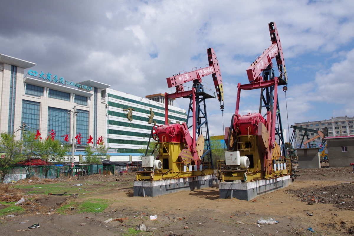 大慶市内の至る所で原油の採掘が行われている。 「大慶市」という地名は「大慶油田」という油田の名前が由来らしい。