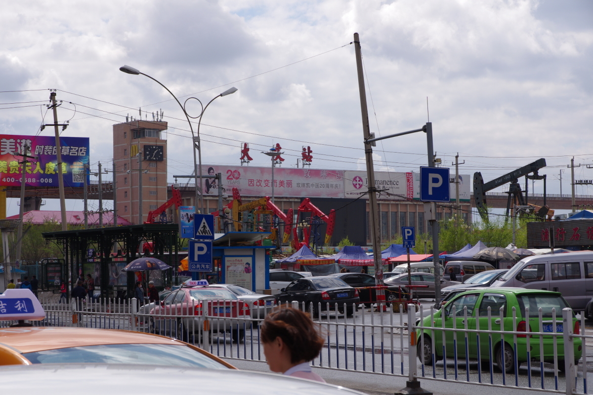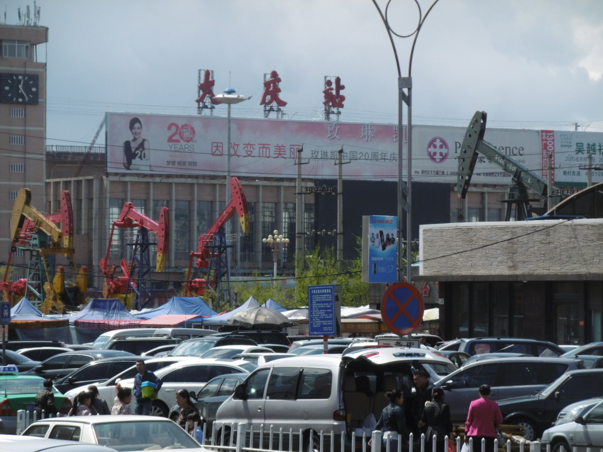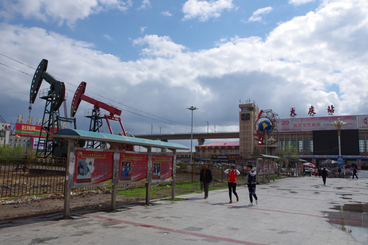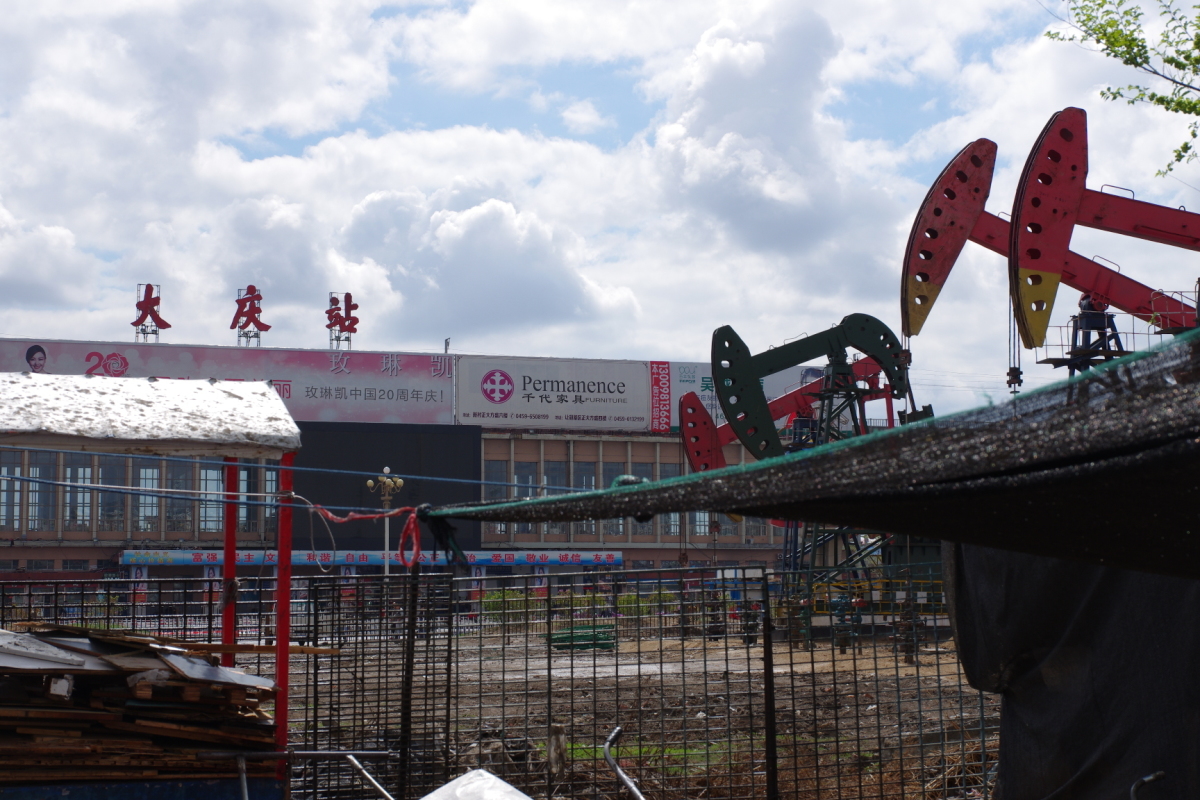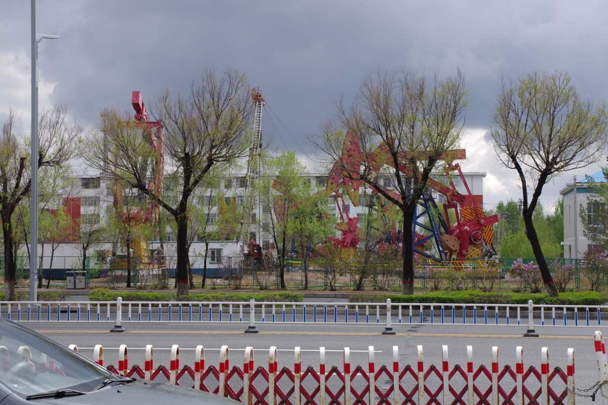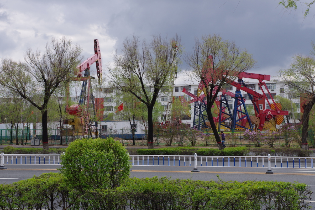 大慶市内の至る所で原油の採掘が行われている。 「大慶市」という地名は「大慶油田」という油田の名前が由来らしい。