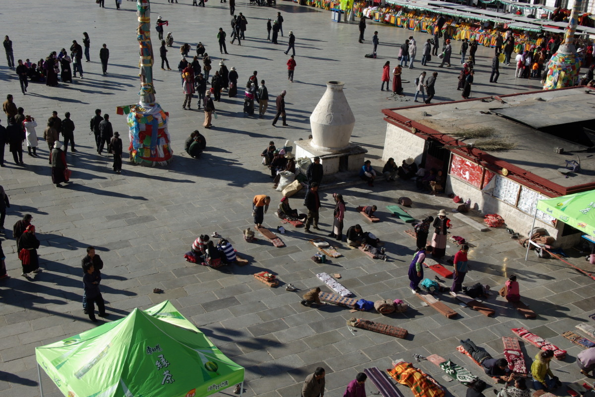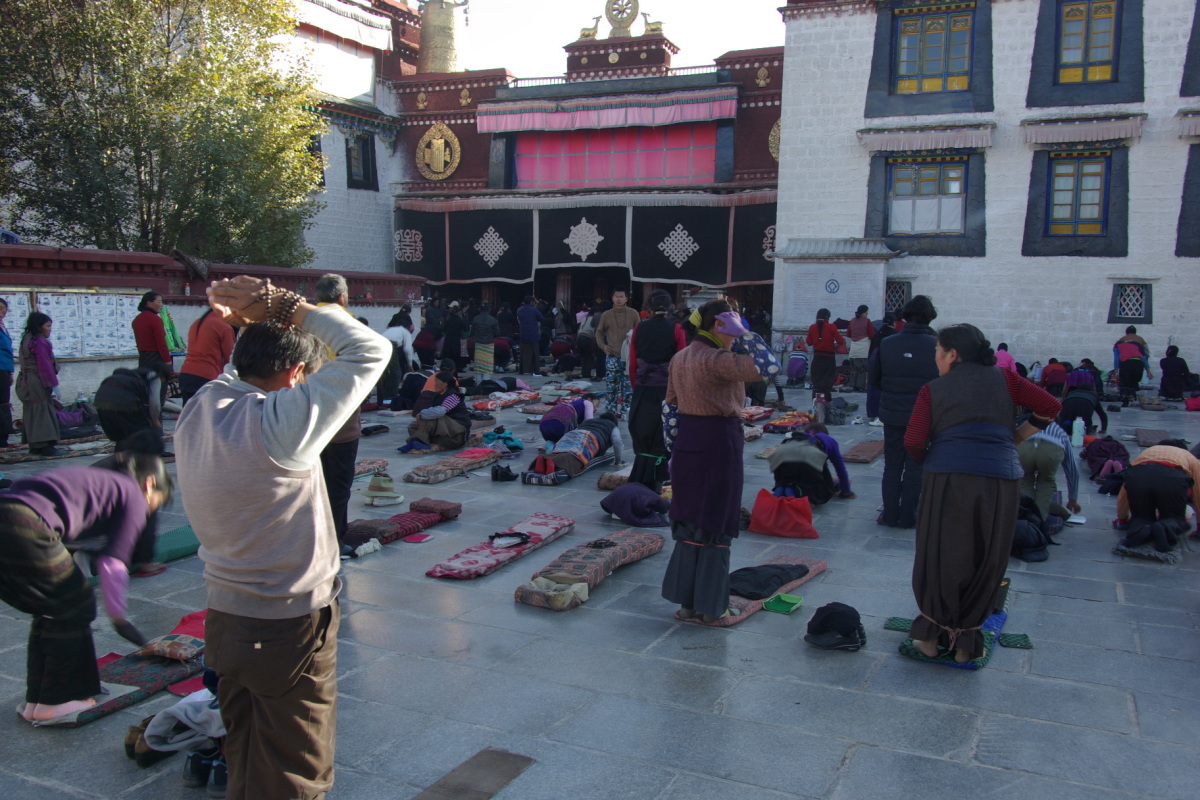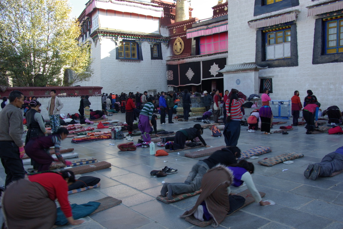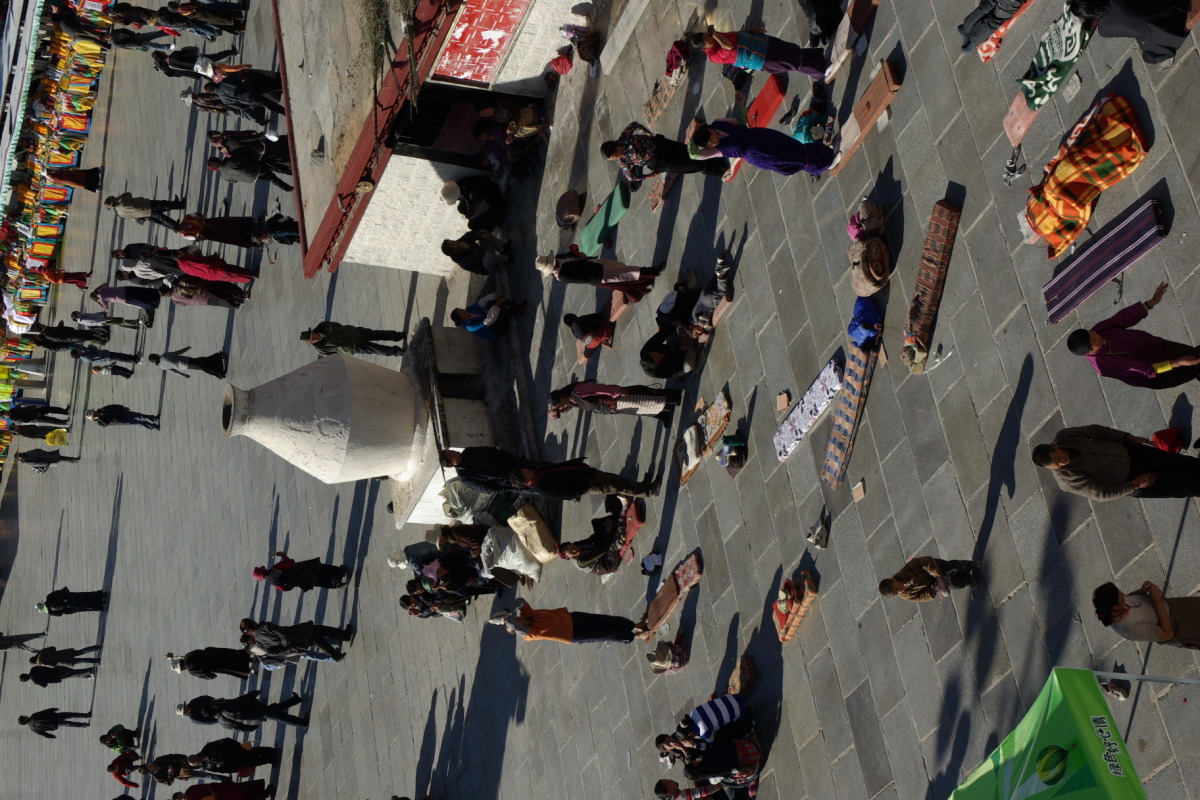 この街を歩くことにより、ジョカンをコルラすることになる。 五体投地をしている人も見かける。