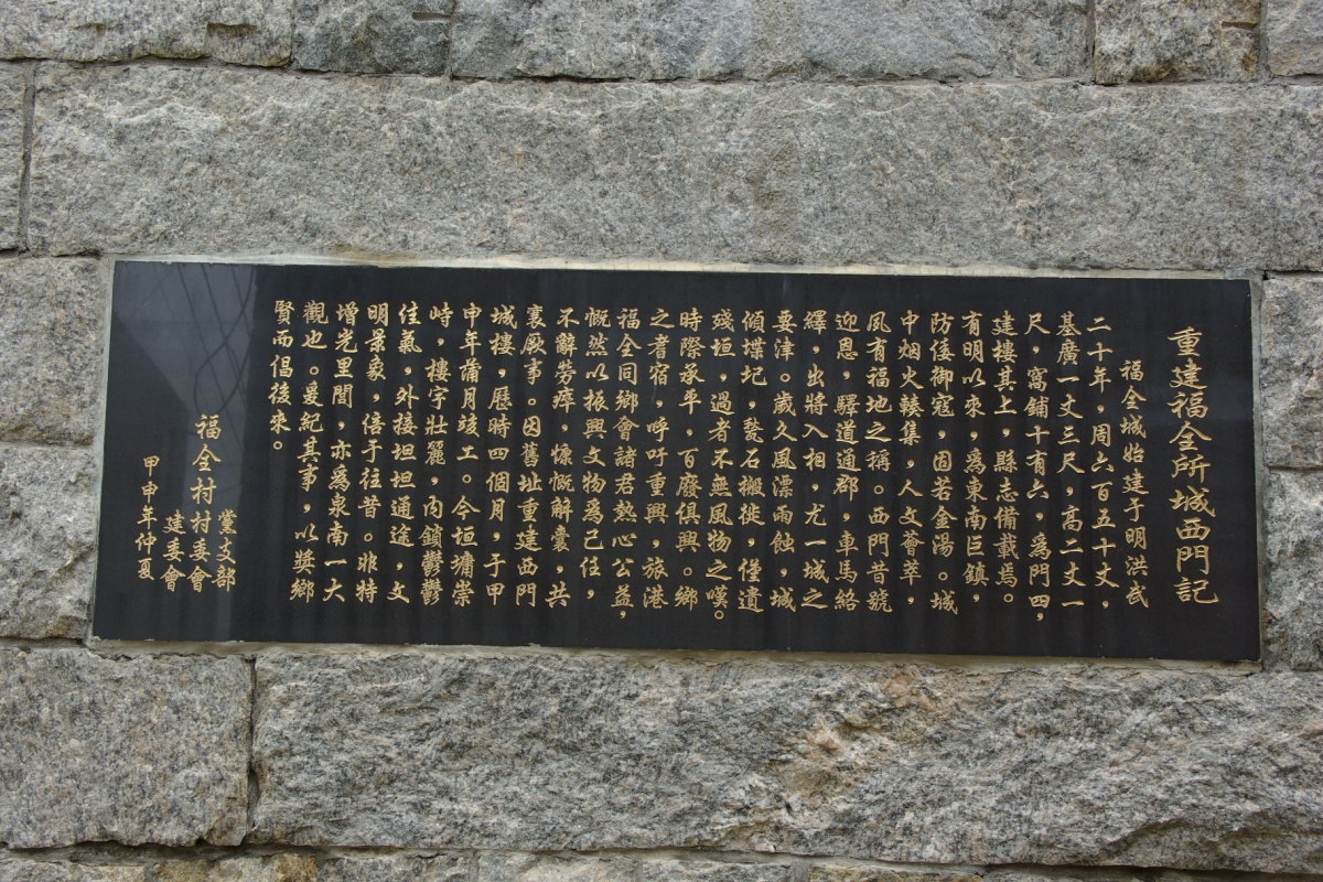 晋江市金井鎮にある福全所城。 修復された西門とその両側に城壁が残る。 他に北門も修復されているらしい。