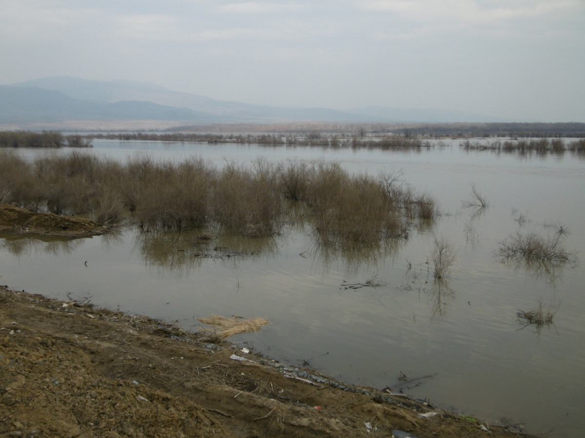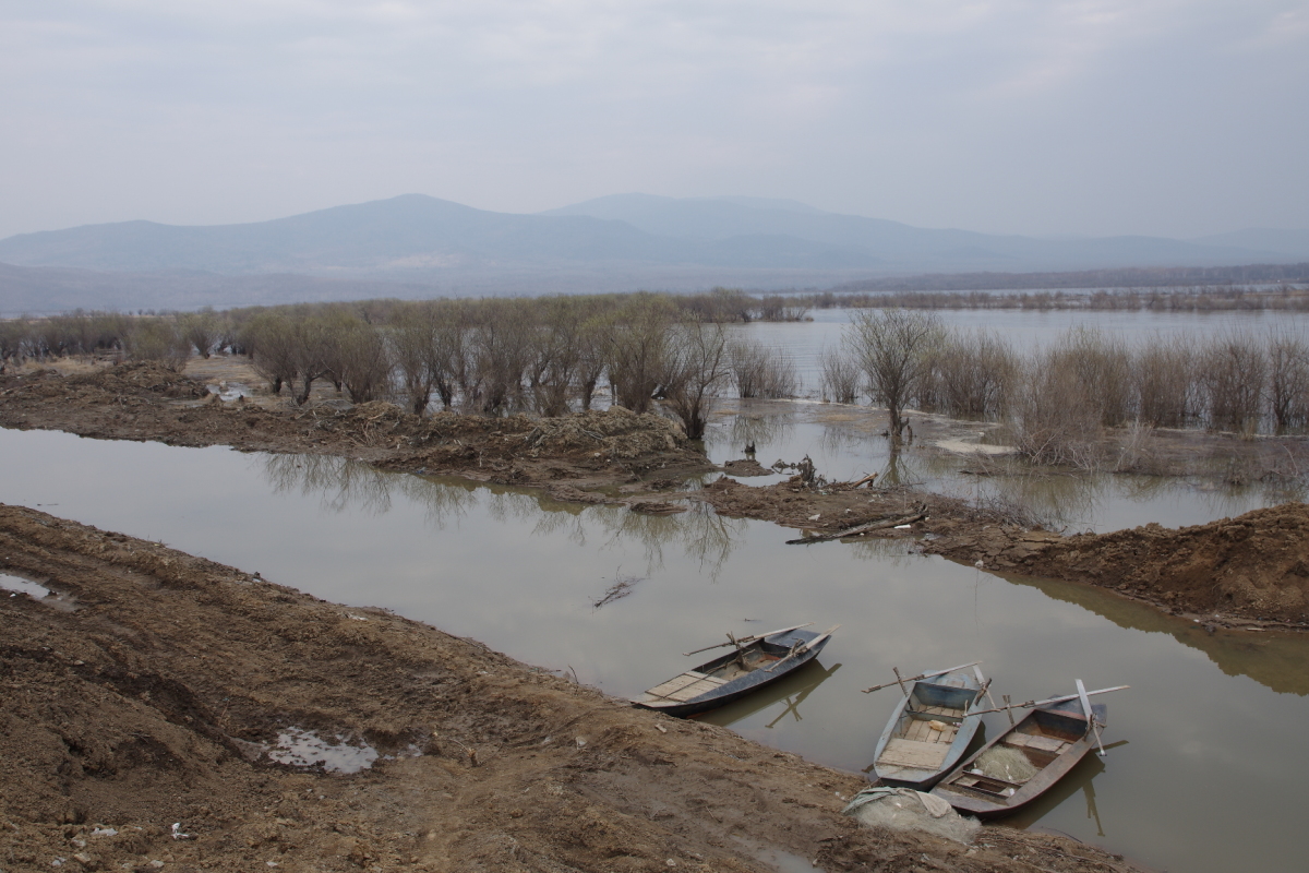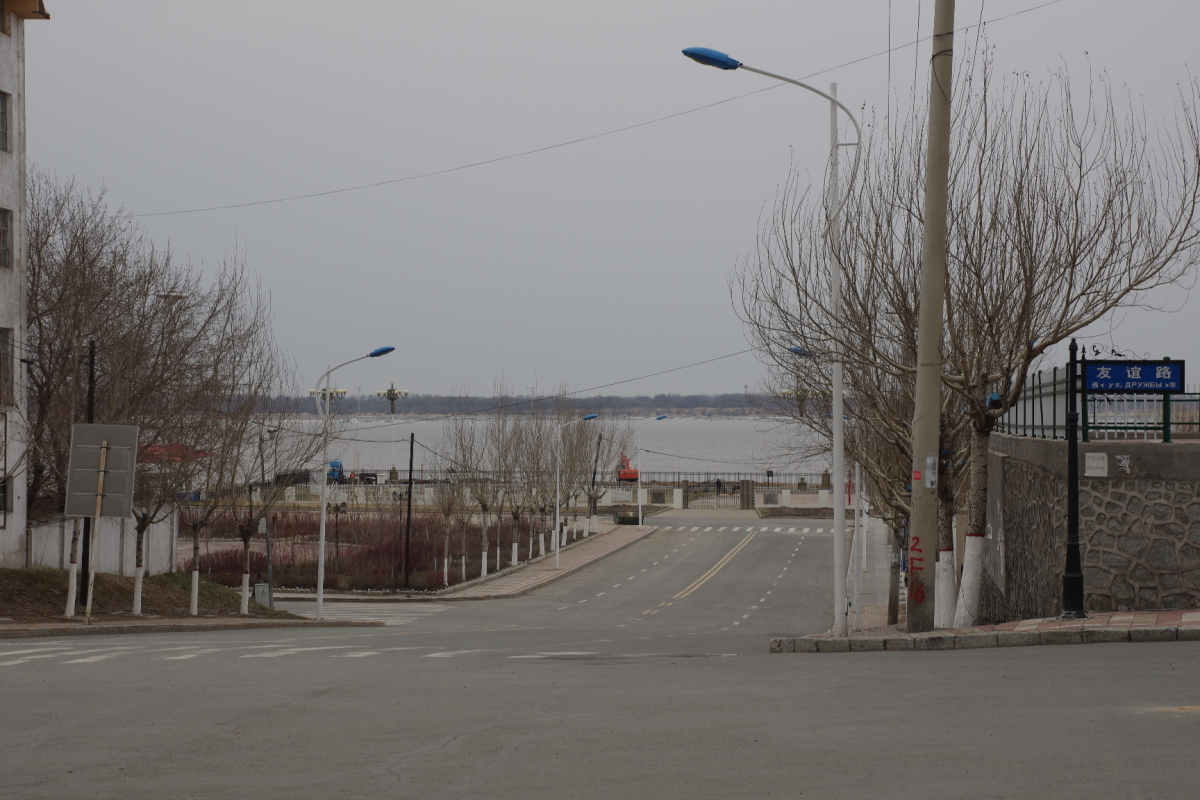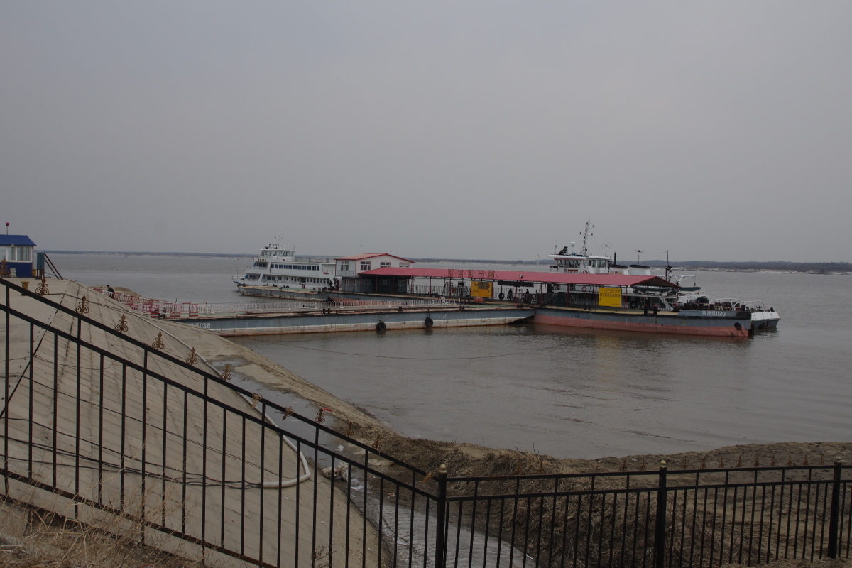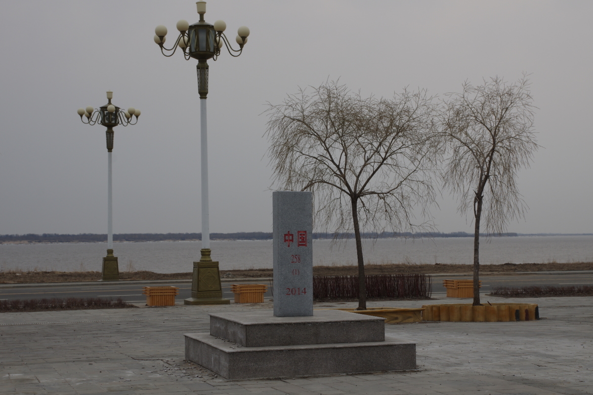 東から西へ流れるアムール川(黒竜江)と、南から北へ流れるウスリー川(烏蘇里江)がここで合流する。
