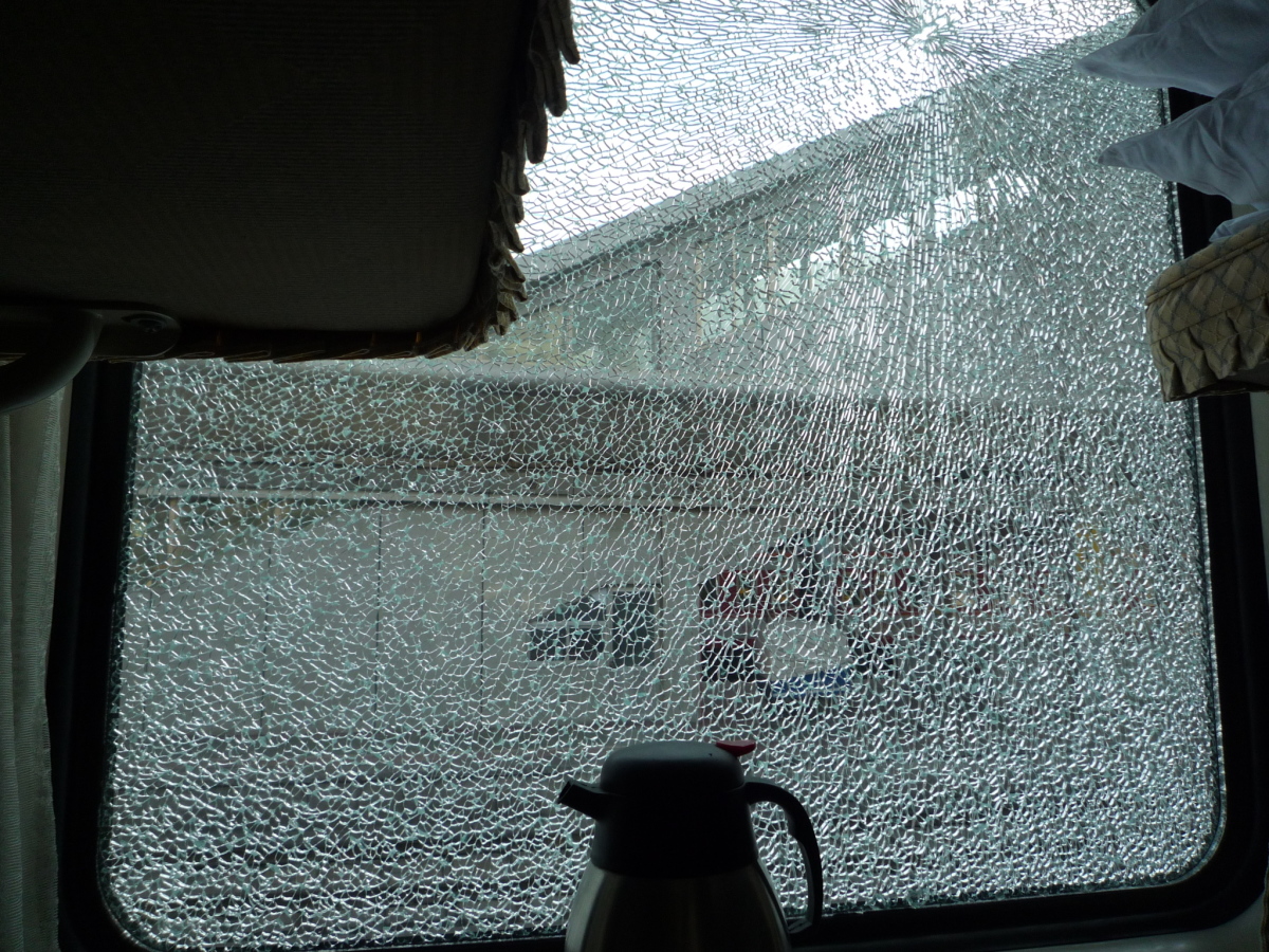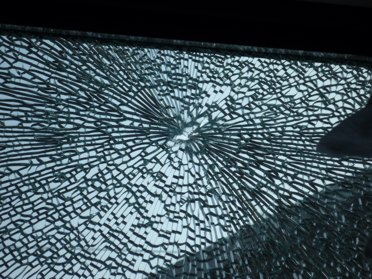 窓ガラスが割れている。
