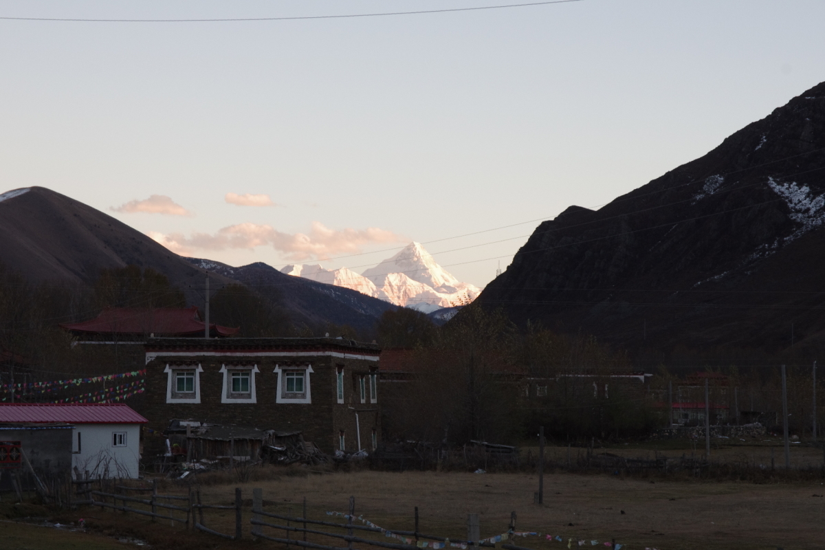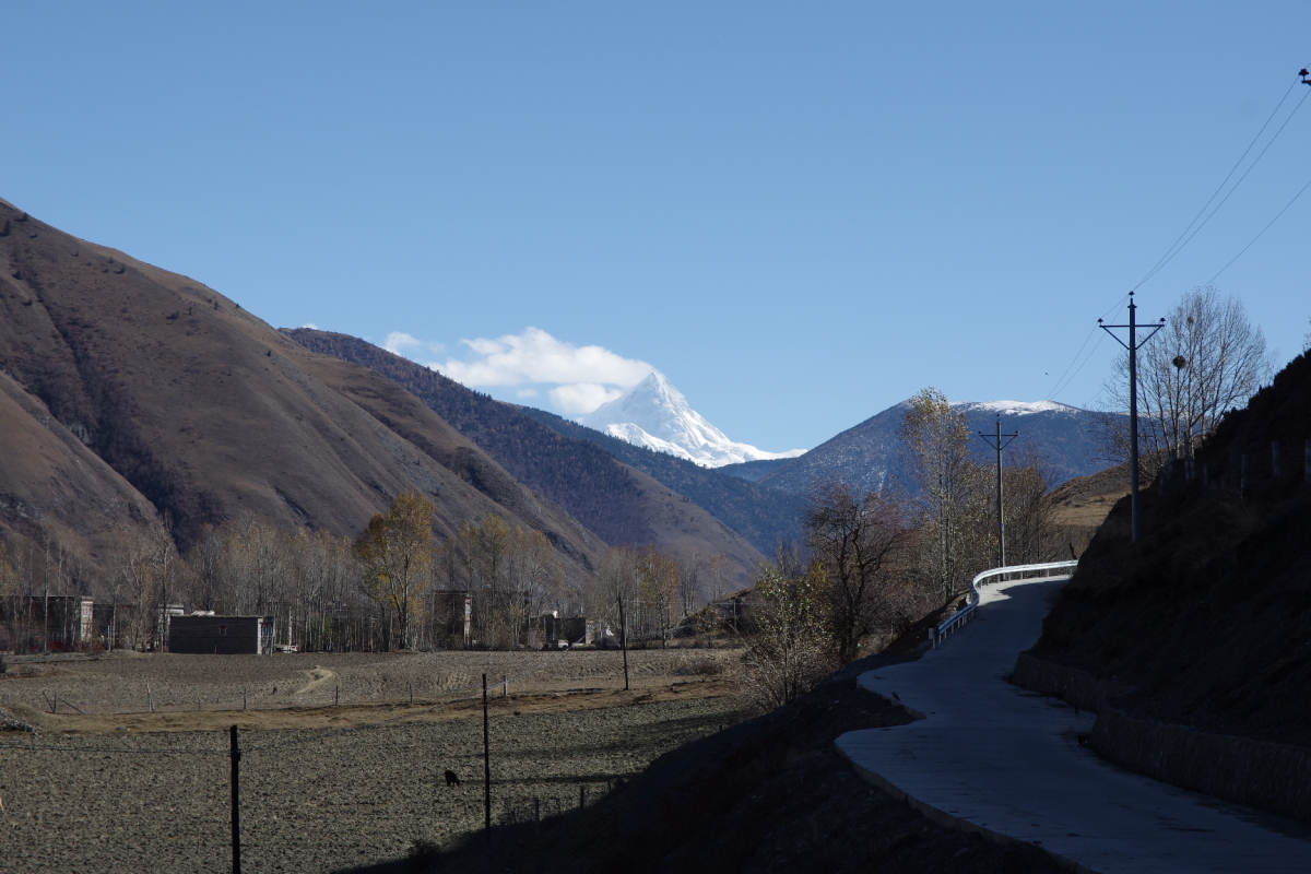ミニヤコンカは7556mの山。 登頂に成功した人は少なく、亡くなられた人が多い。 康定市新都橋鎮からミニヤコンカの姿を見ることができる。