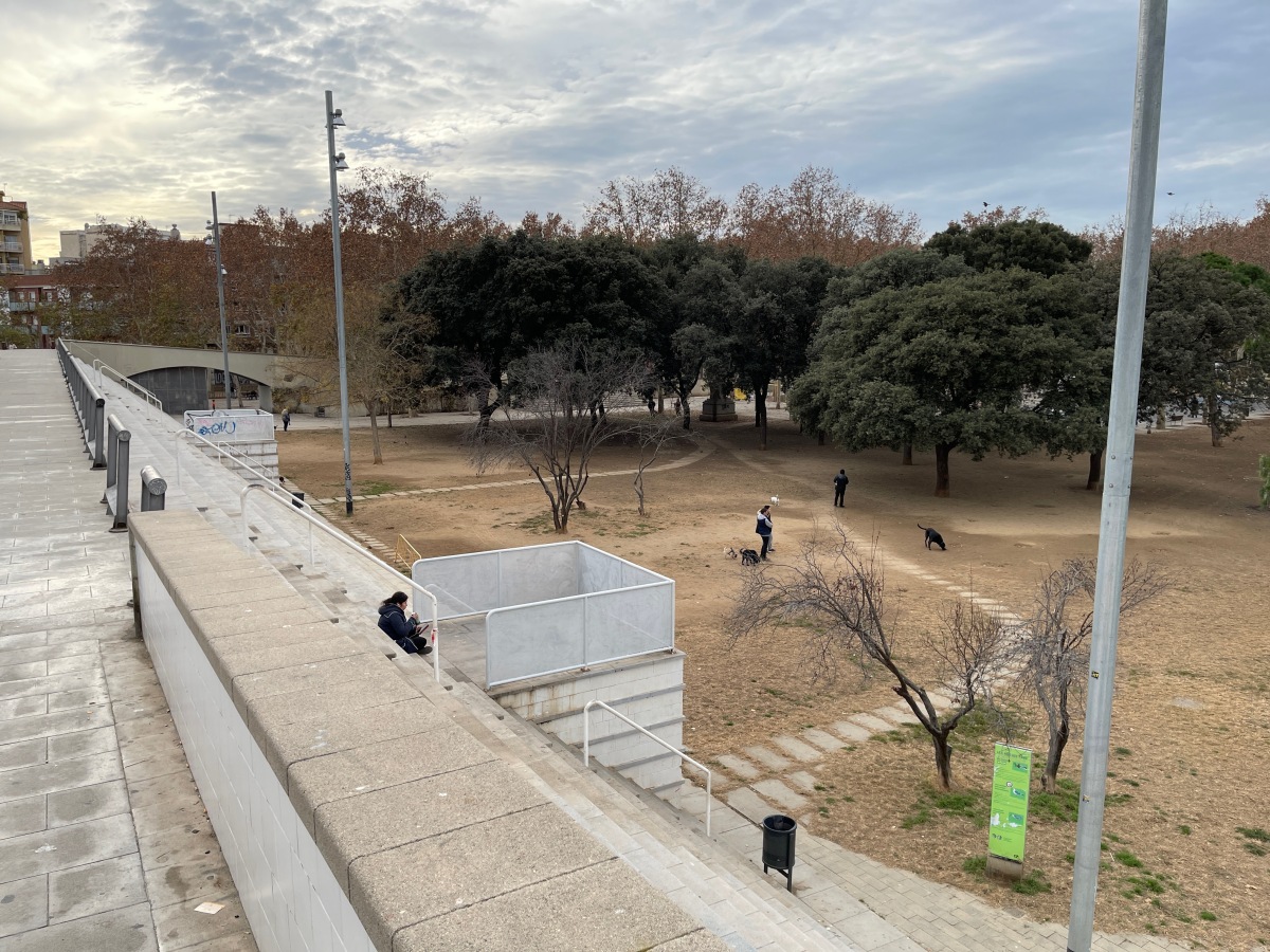 まだチェックインまで時間があるので、近くのスペイン工業公園でスーパーで買ったパンを食べる。