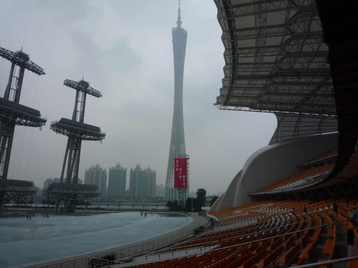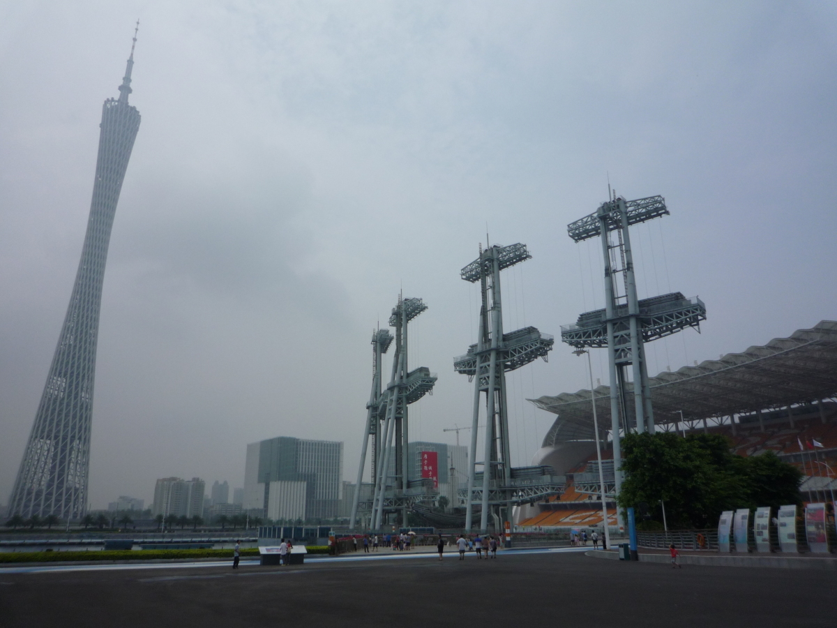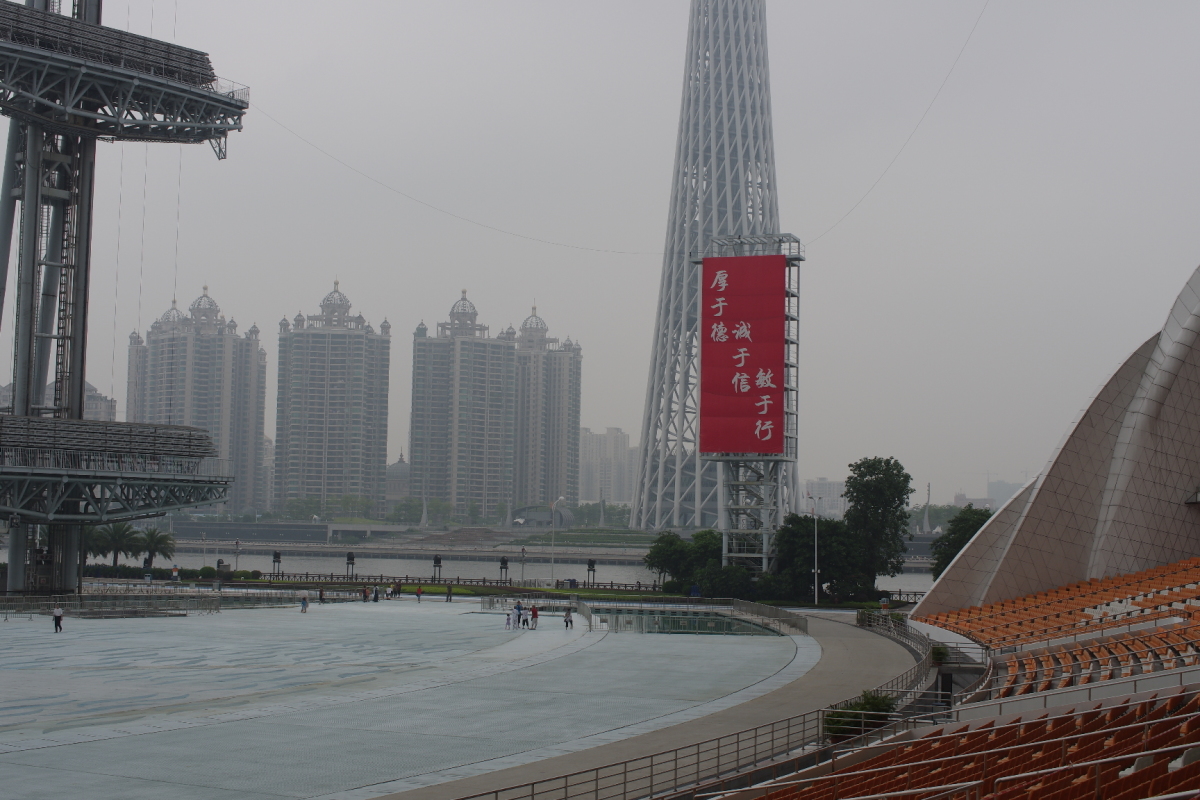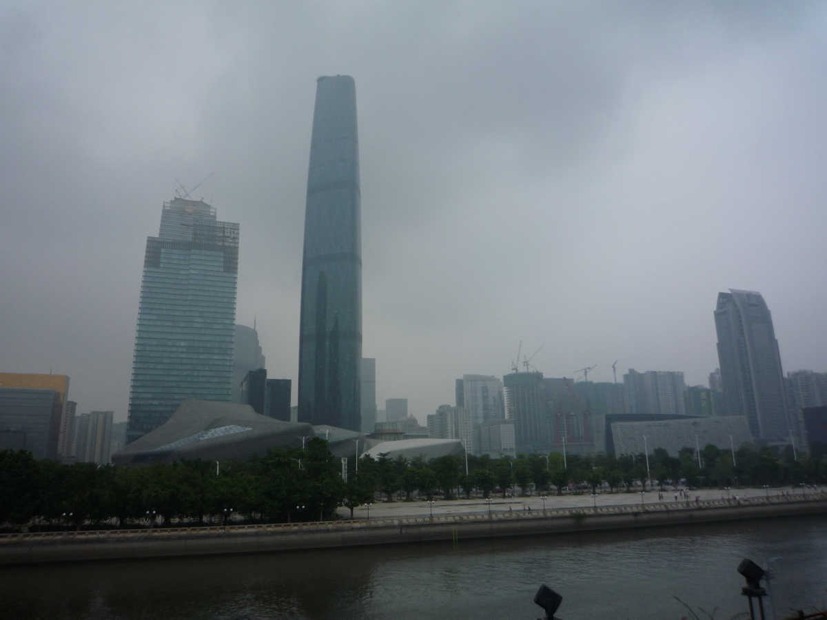 広州東駅から大劇院周辺、広州塔、赤崗塔、琶洲塔を見た。