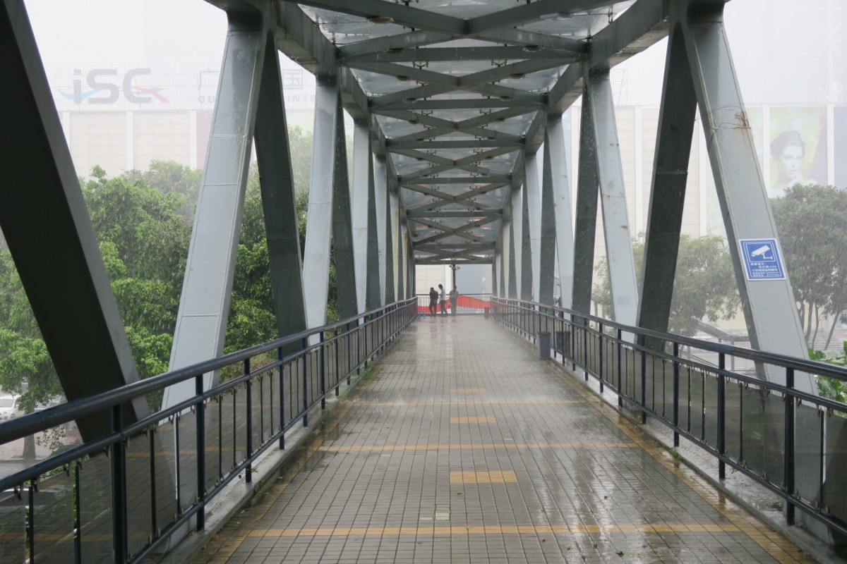 陸橋で雨宿り