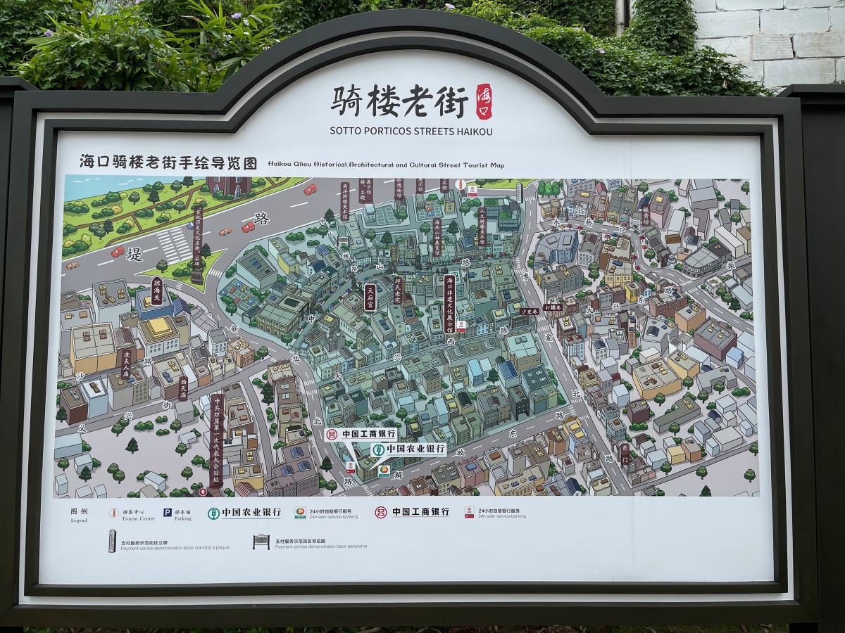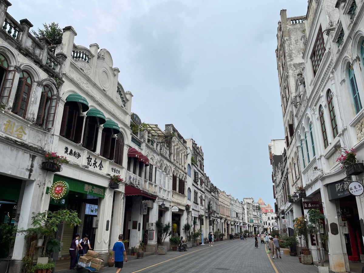 海口百年老街とも呼ばれる。かつては海口所城があった場所。 老街の南側から北に向かって歩いた。