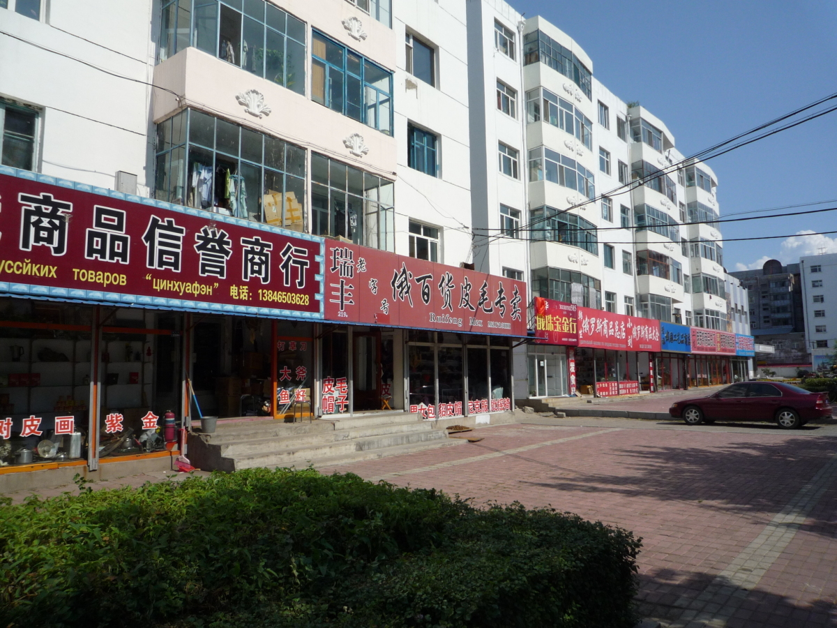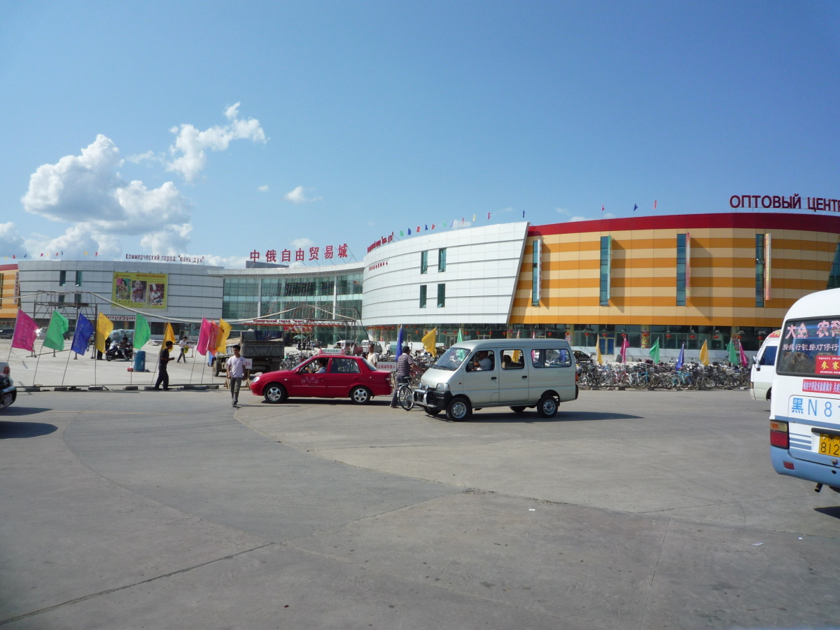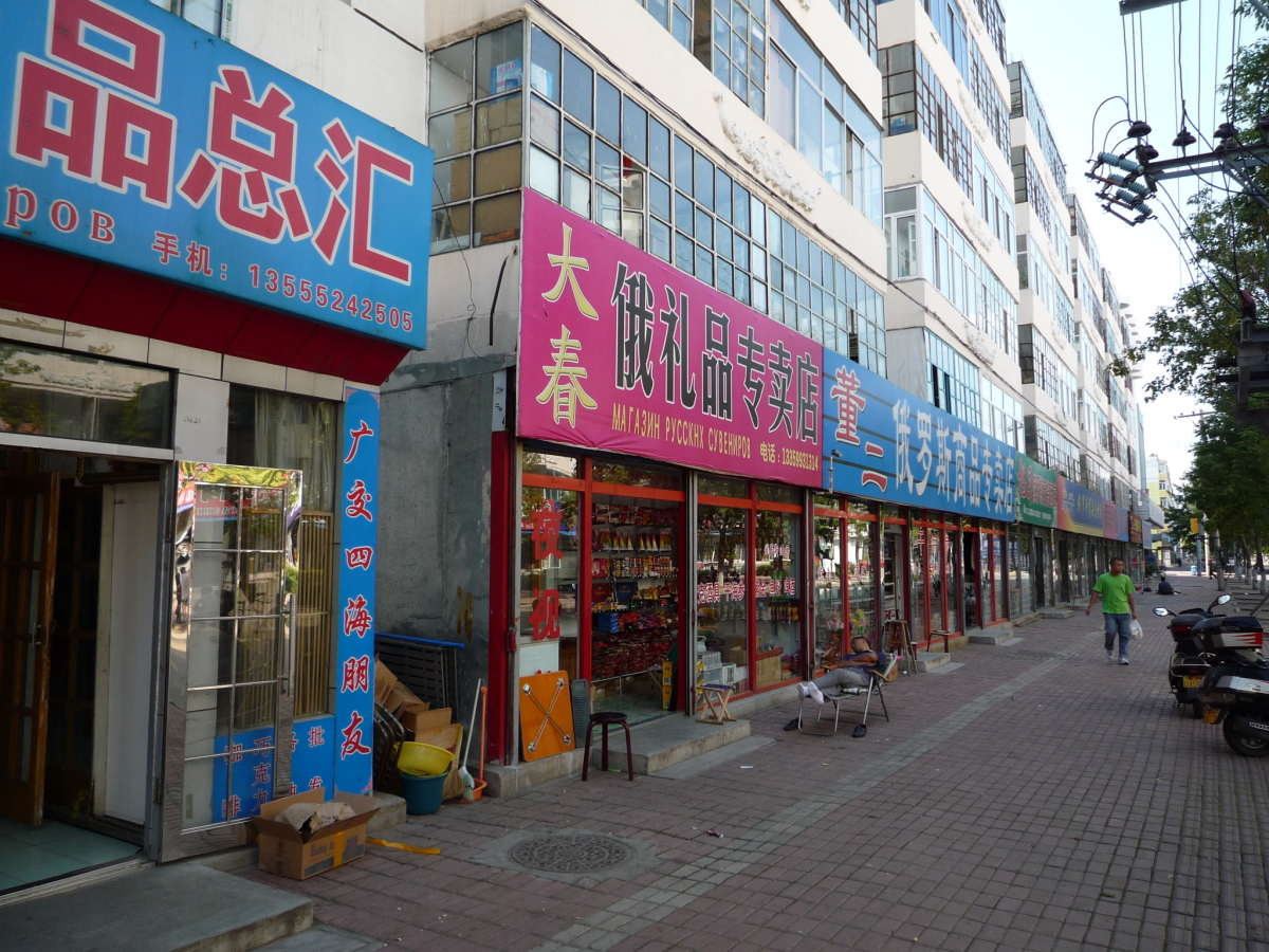 黒龍江(アムール川)の対岸がロシアのブラゴヴェシチェンスクという街。 ブラゴヴェシチェンスクの人は黒河市内だとノービザで入国できるらしく、黒河市内には買出しのロシア人がたくさんいる。