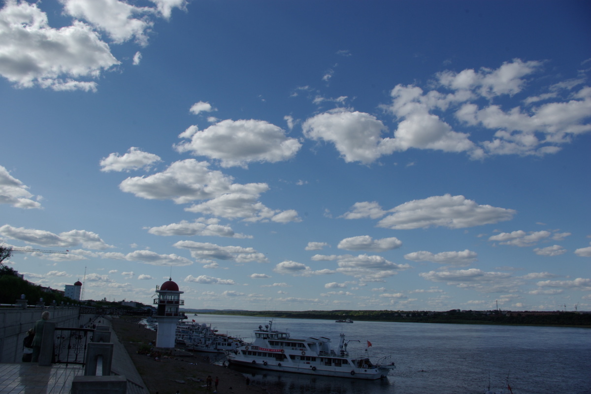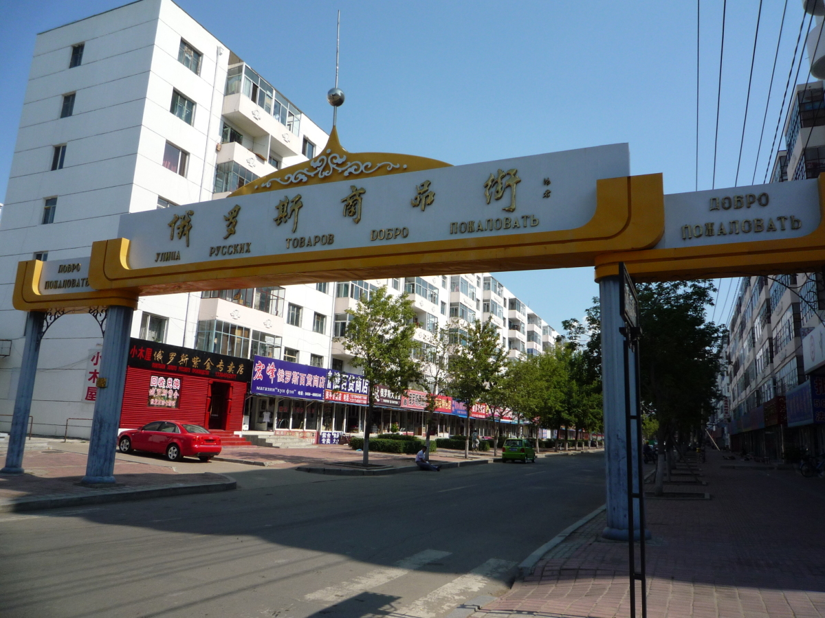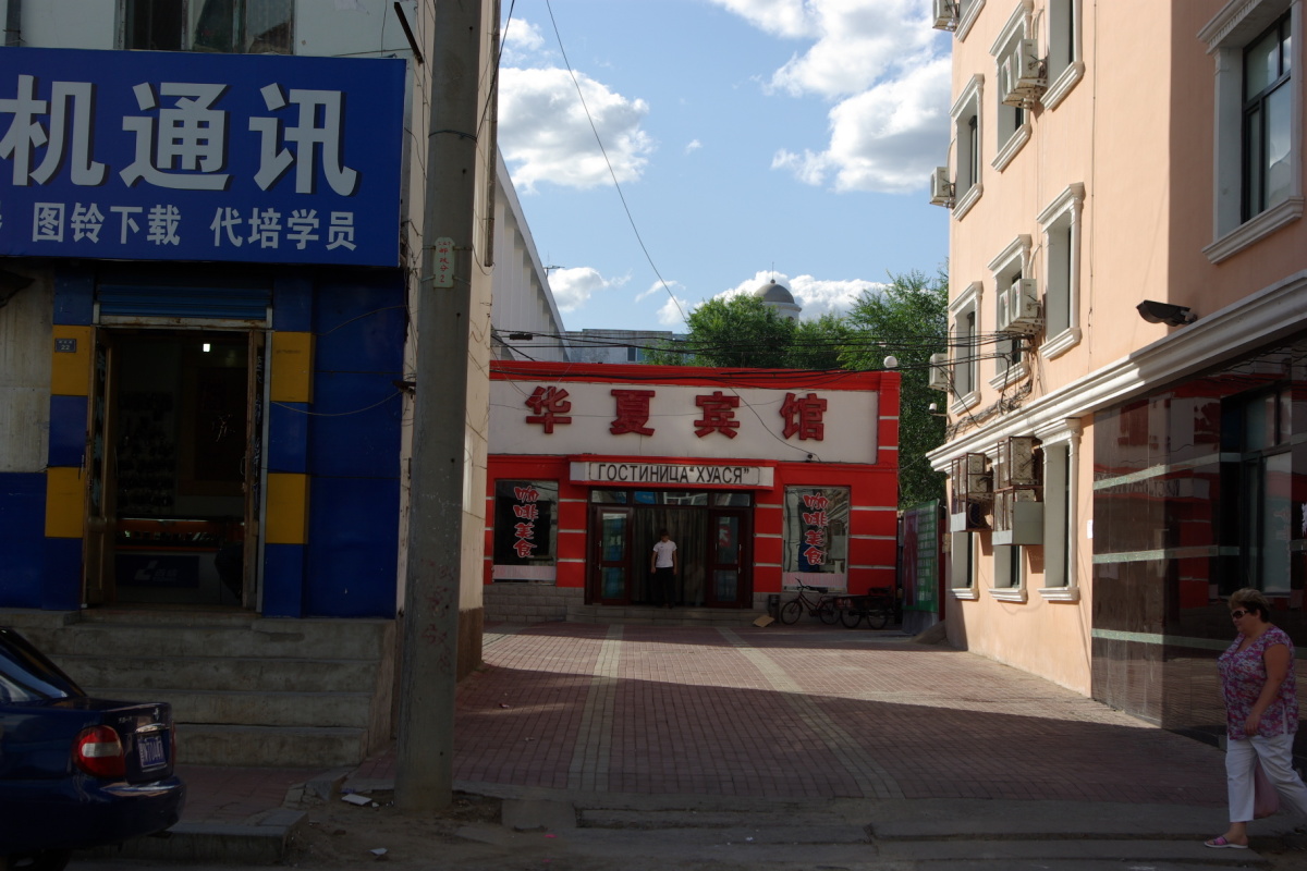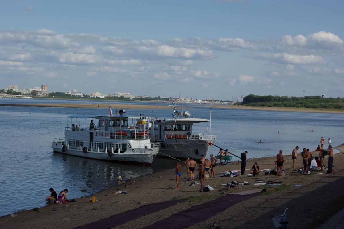 黒龍江(アムール川)の対岸がロシアのブラゴヴェシチェンスクという街。 ブラゴヴェシチェンスクの人は黒河市内だとノービザで入国できるらしく、黒河市内には買出しのロシア人がたくさんいる。