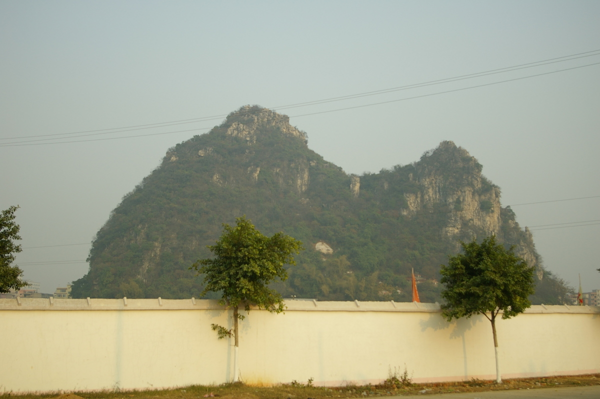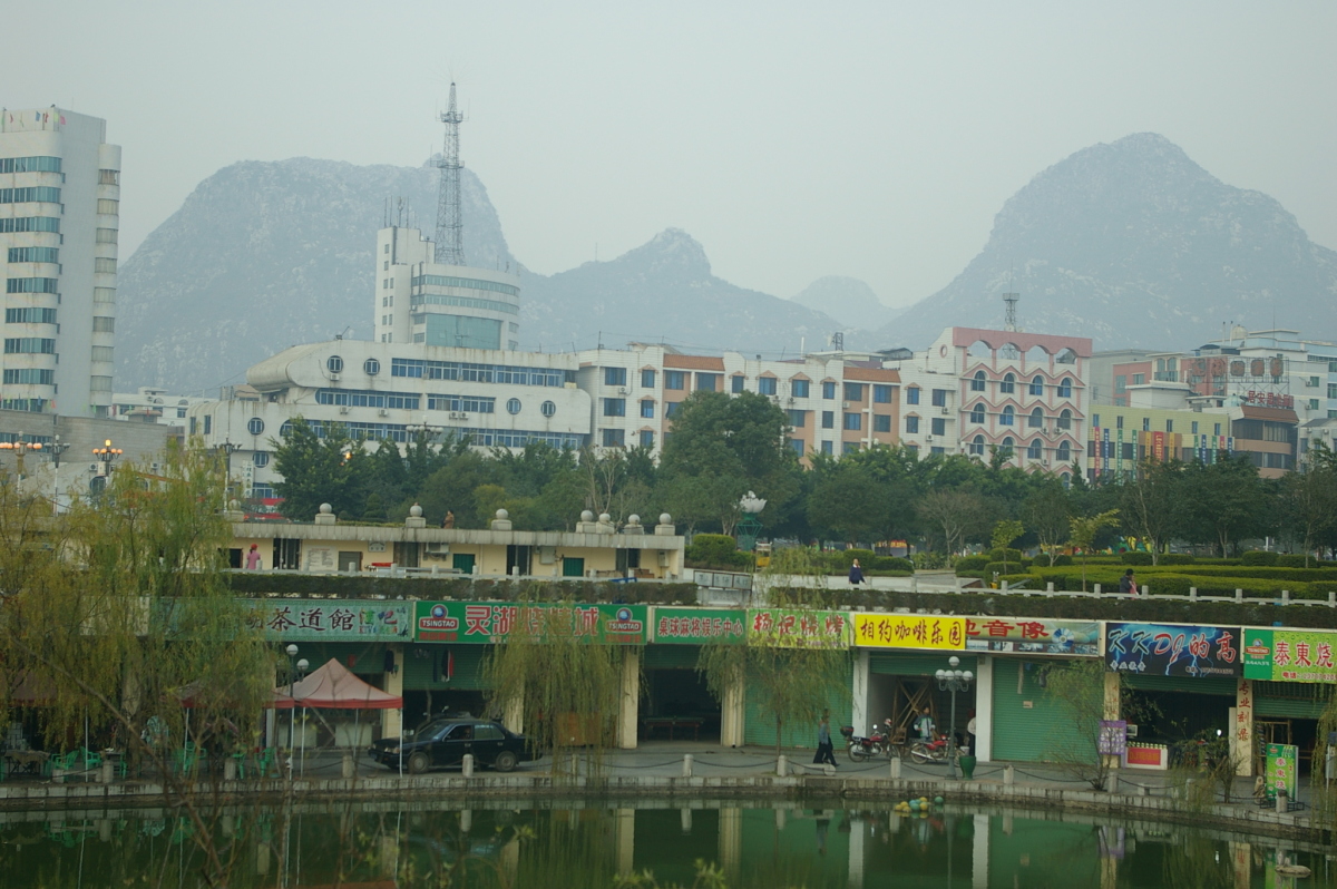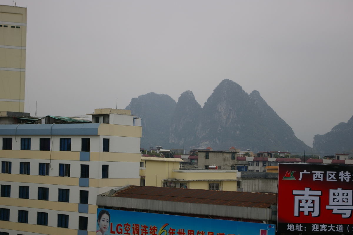 賀州市の中心は八歩区八歩街道。 桂林と同じような変わった形の山がたくさんある。
