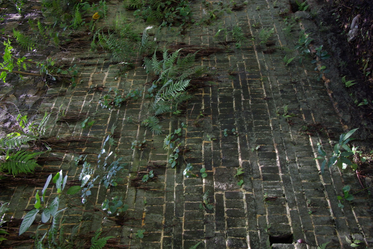 増江沿いの土地に段差があるところに城壁が残る。