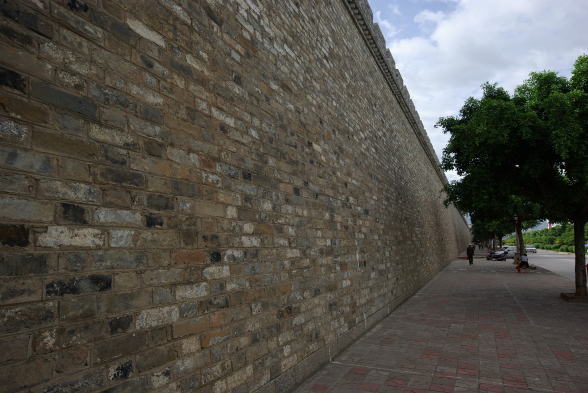 城壁は東西が長い楕円形だったようだが、現在残っているのは、東門(朝陽楼)と西側の一部の城壁だけらしい。