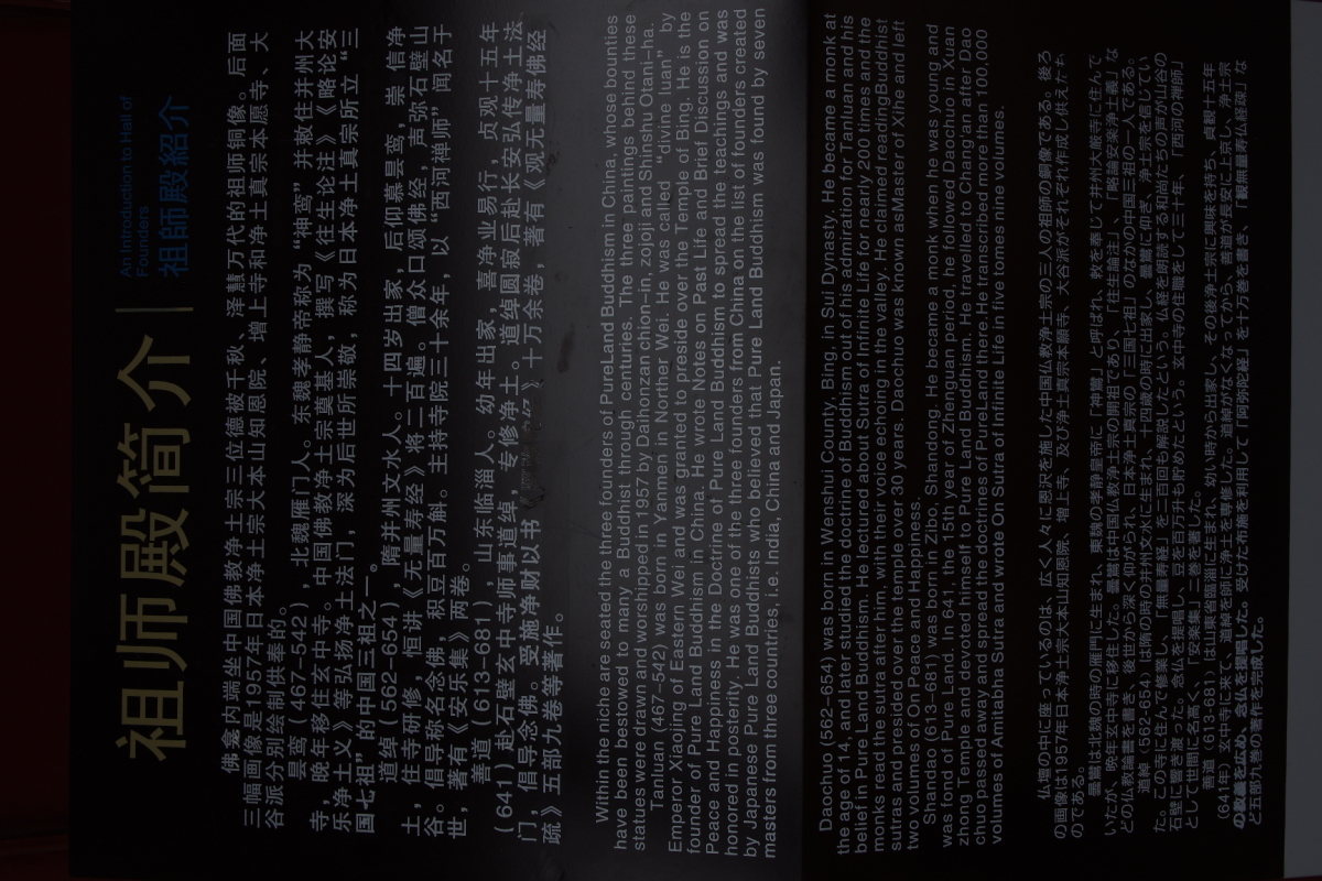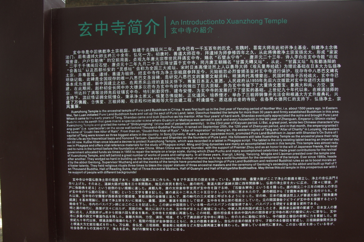 浄土系仏教の高僧である曇鸞・道綽・善導の3人にゆかりのある寺。 石壁山の山中にある。