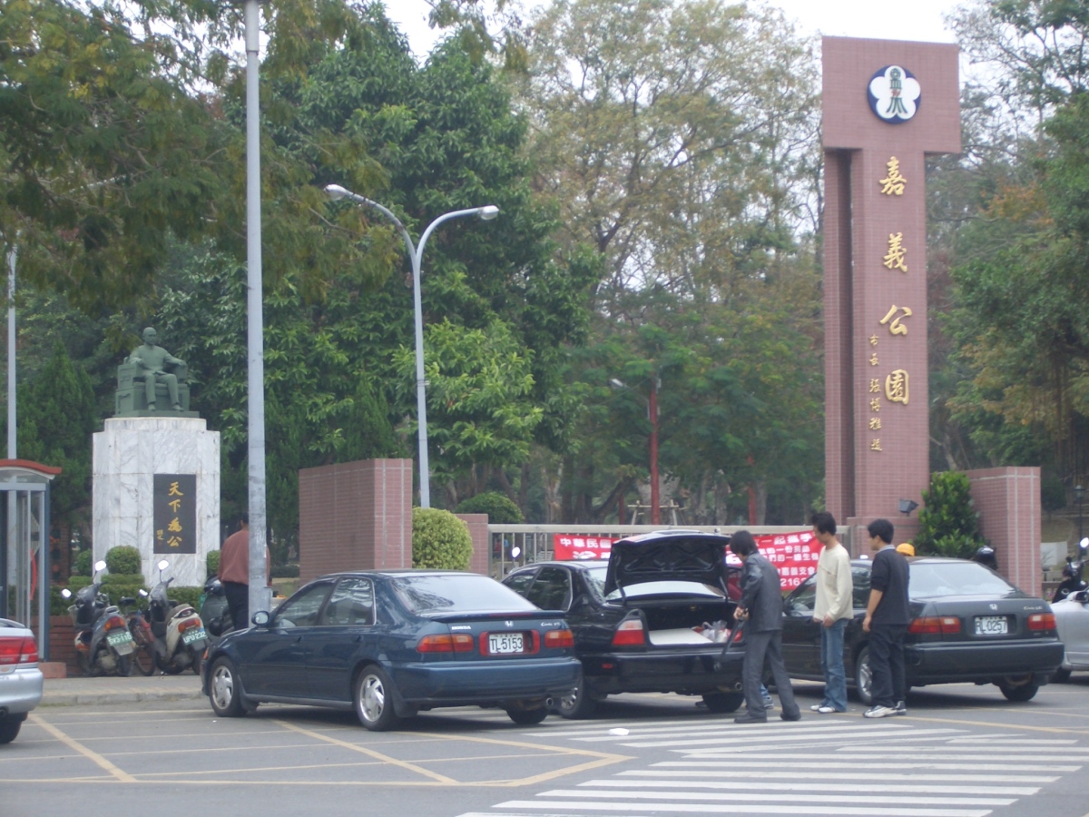 旧名は中山公園で、正面入り口から入ると孫文像がある。 敷地内にある忠烈祠は日本時代に嘉義神社があったところで、灯篭や狛犬が残っている。