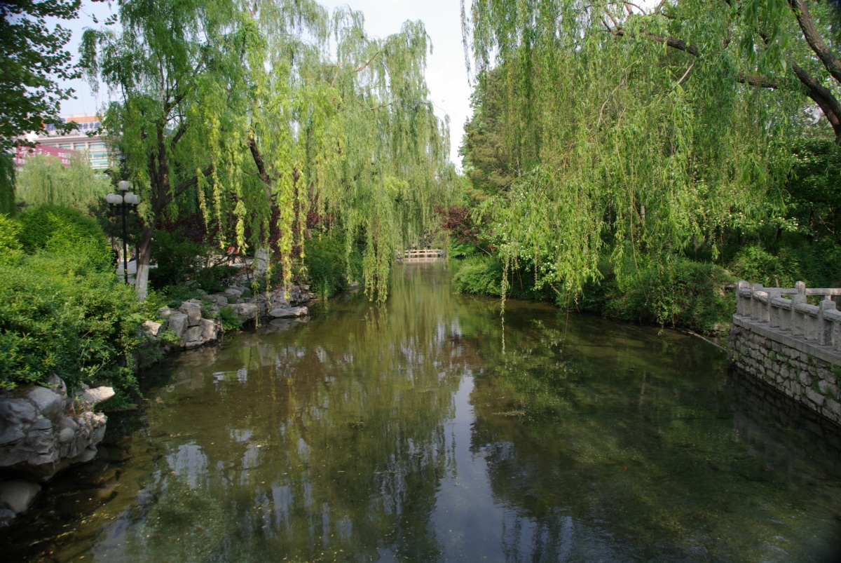 済南は泉がたくさんあることで有名。 趵突泉公園内にはいくつかの泉と池がある。