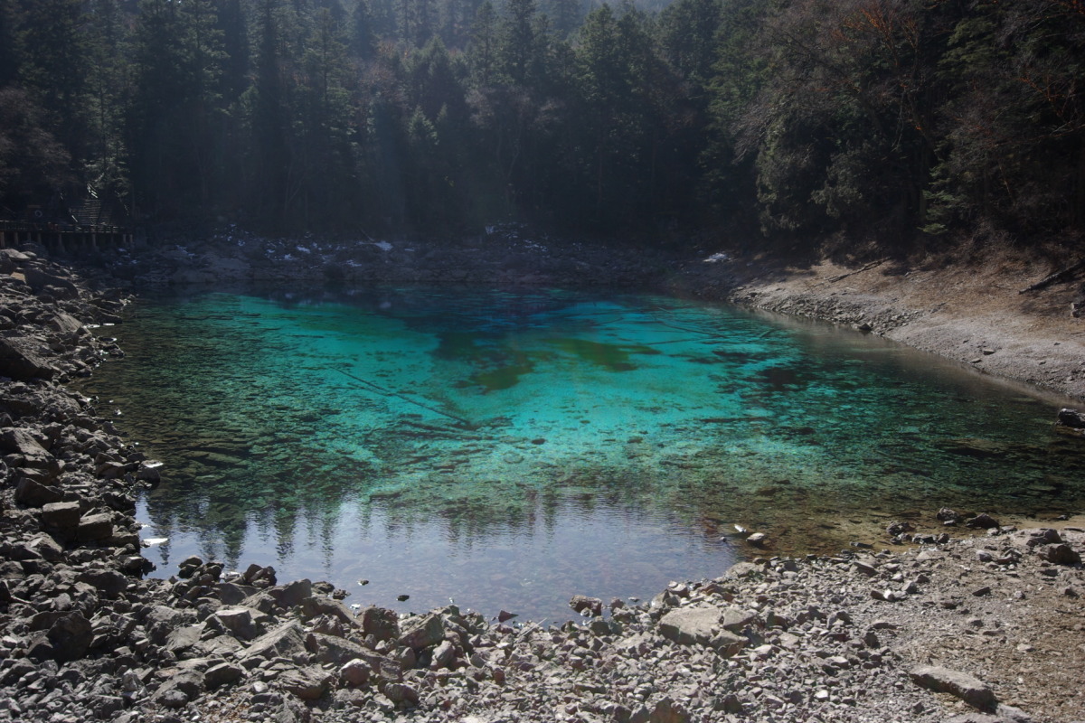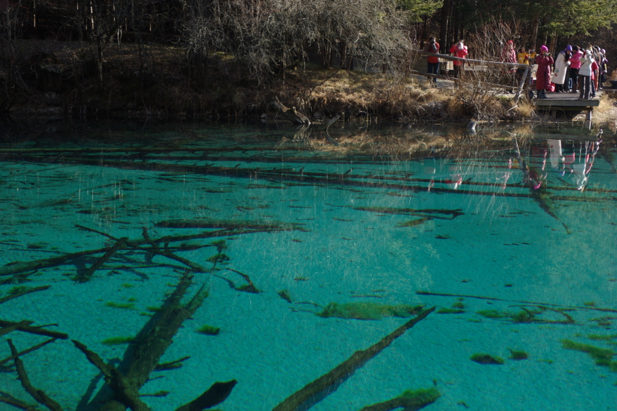 冬でも一部凍結しているが綺麗な風景を見ることができる。 風景区内のバスは動いており、観光客も多い。