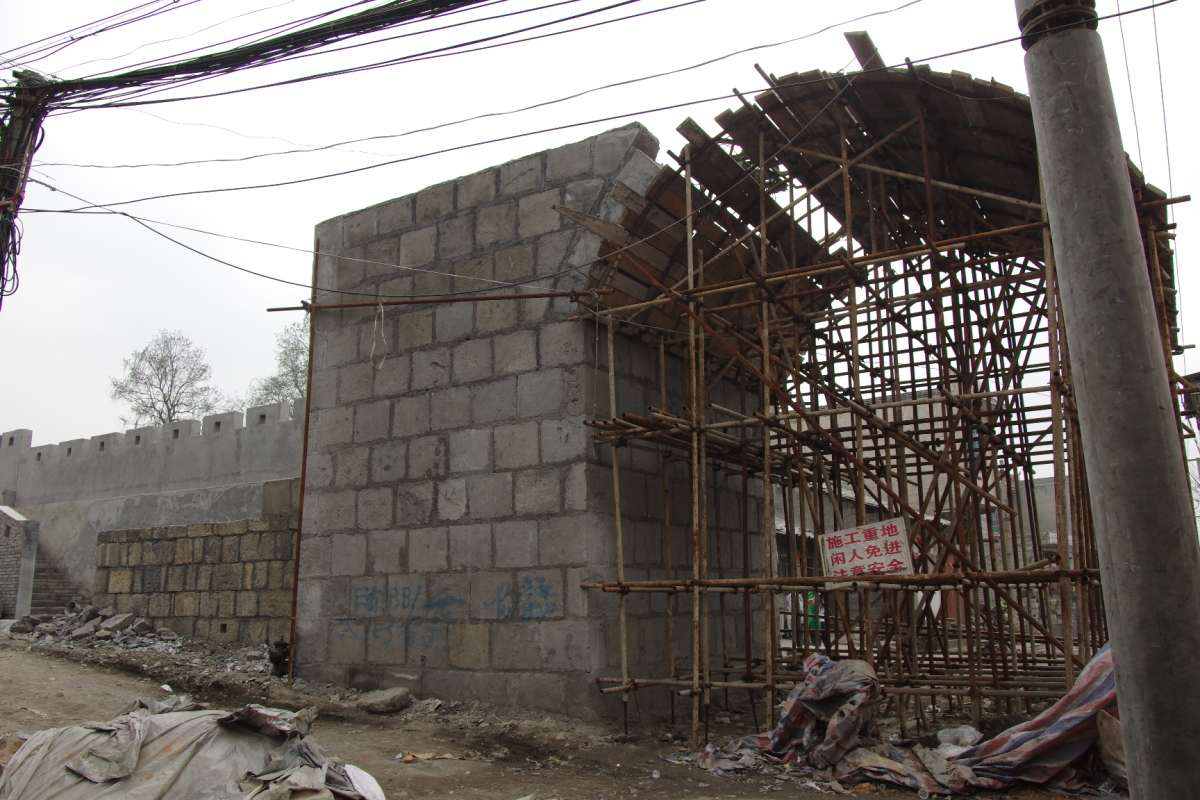 再建途中の東門。
