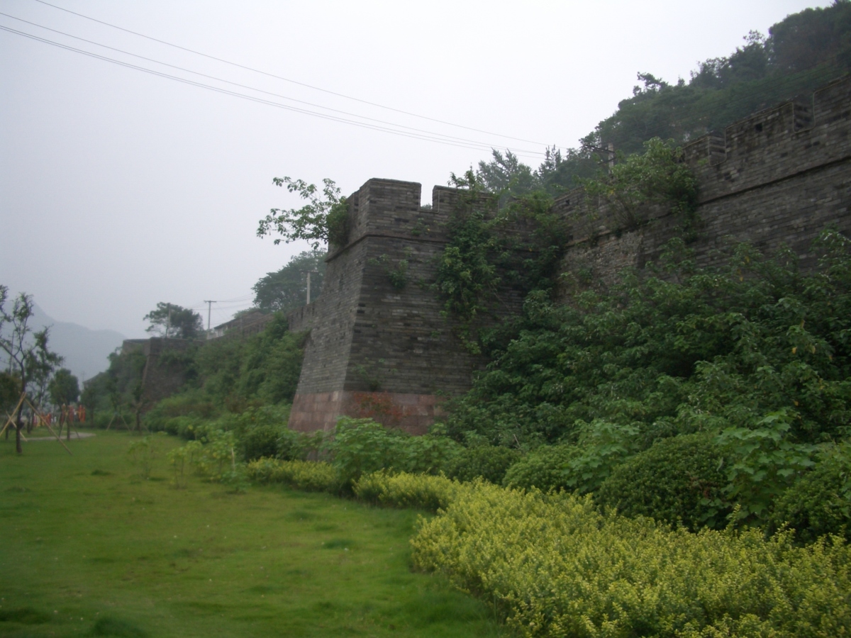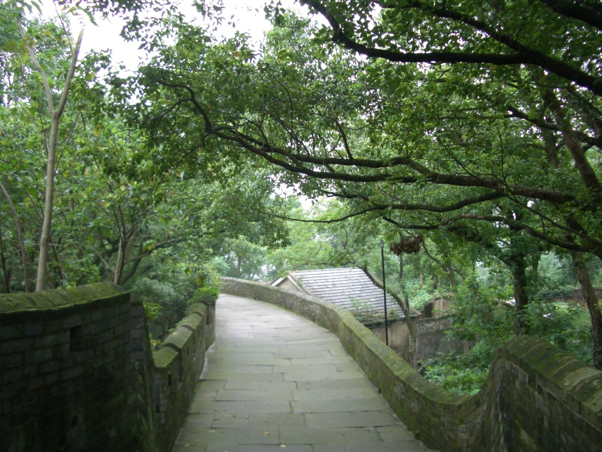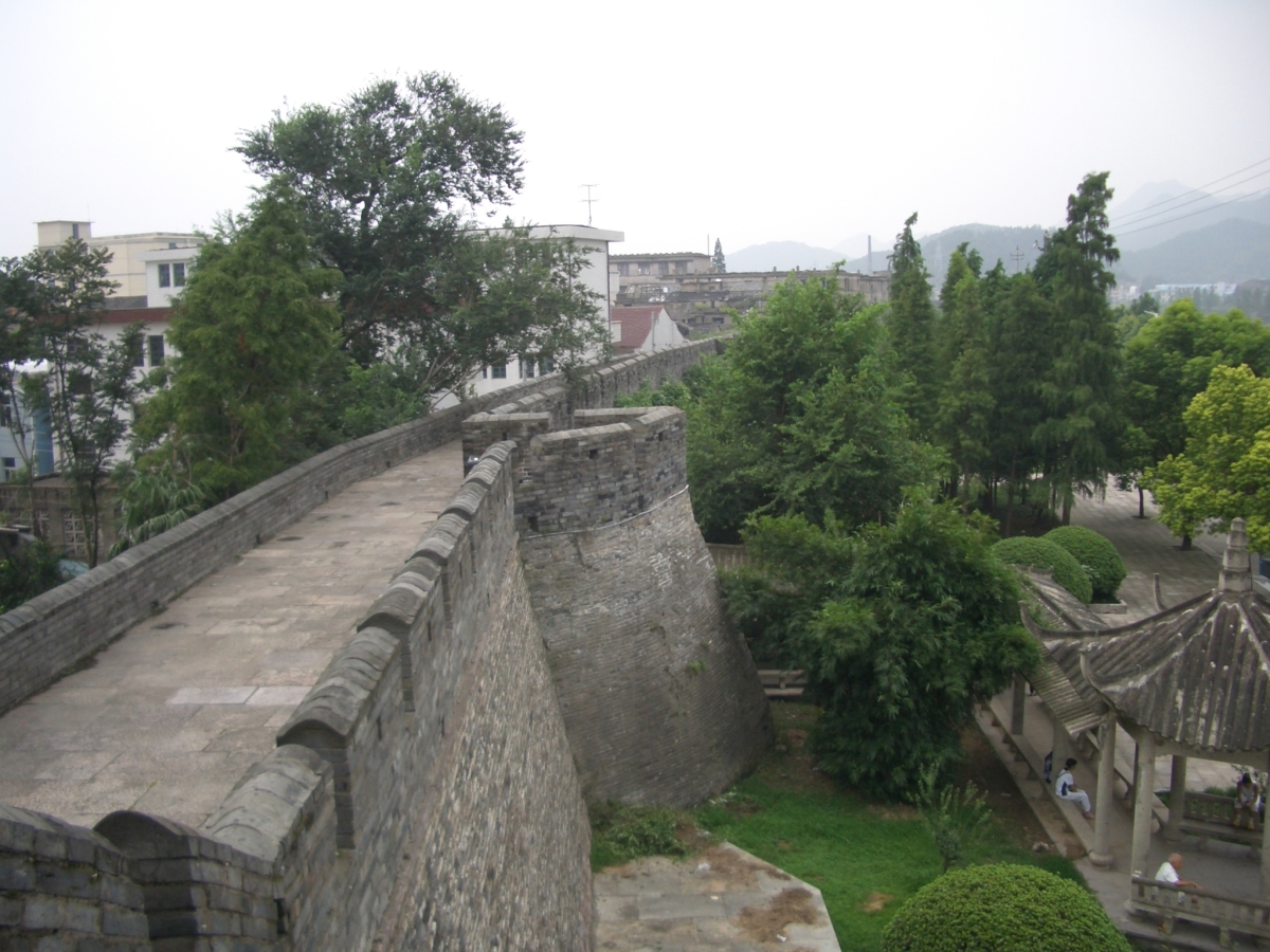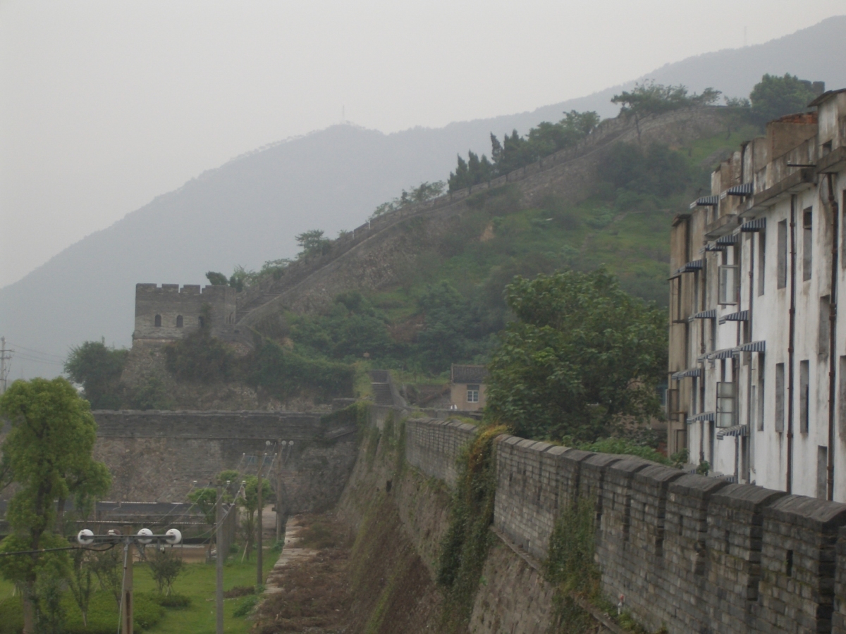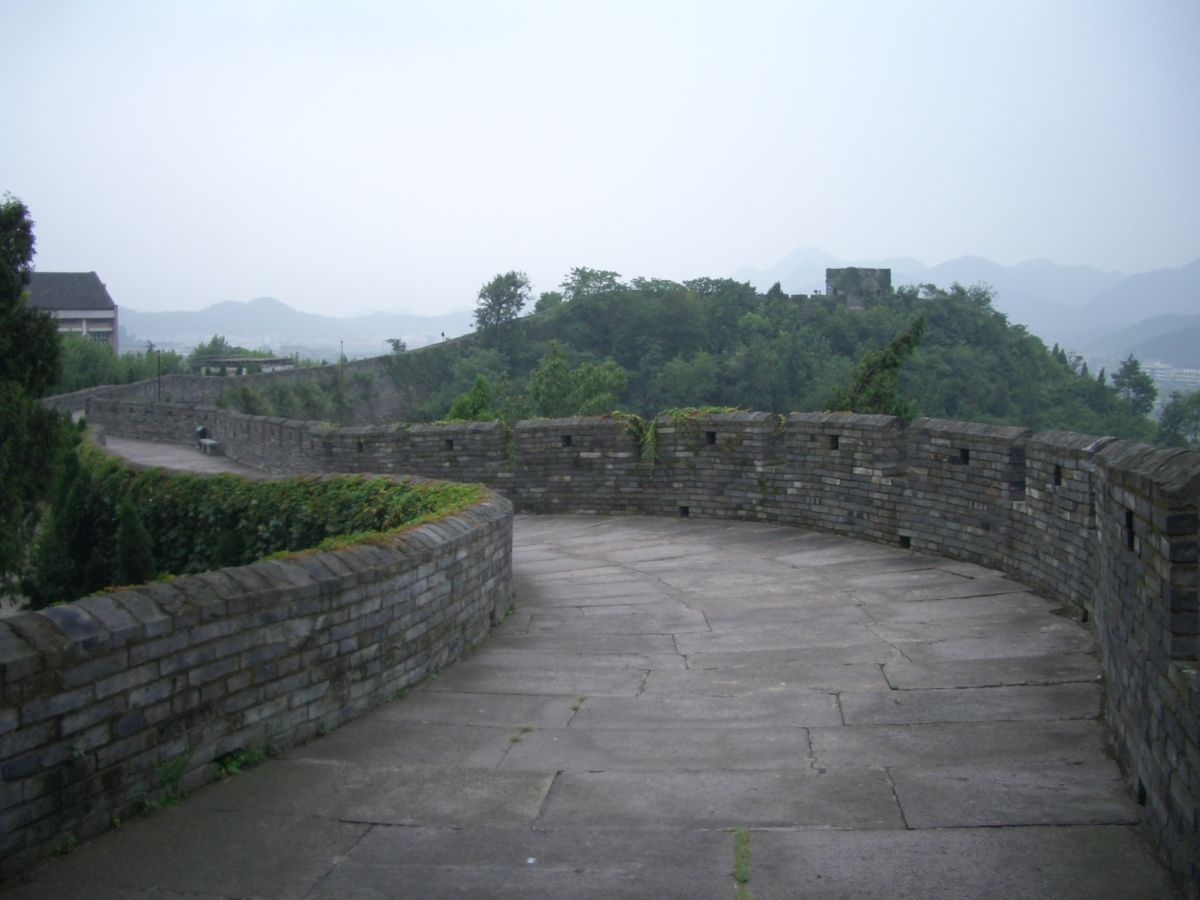 台州市下の臨海市に台州府城があった。 南側と西側は川沿いに、北側は山の尾根に沿って城壁がある。東側は城門だけが残っている。