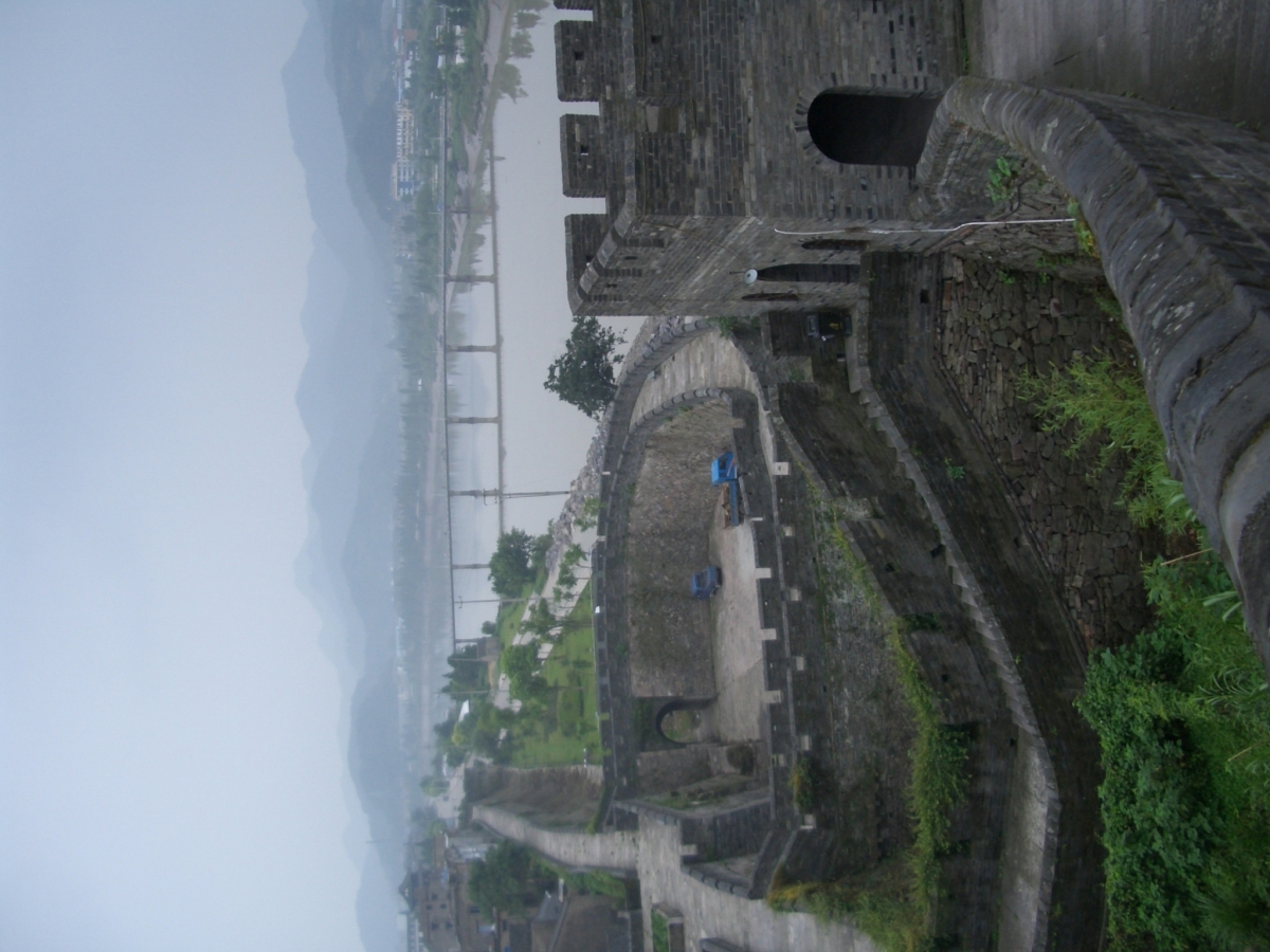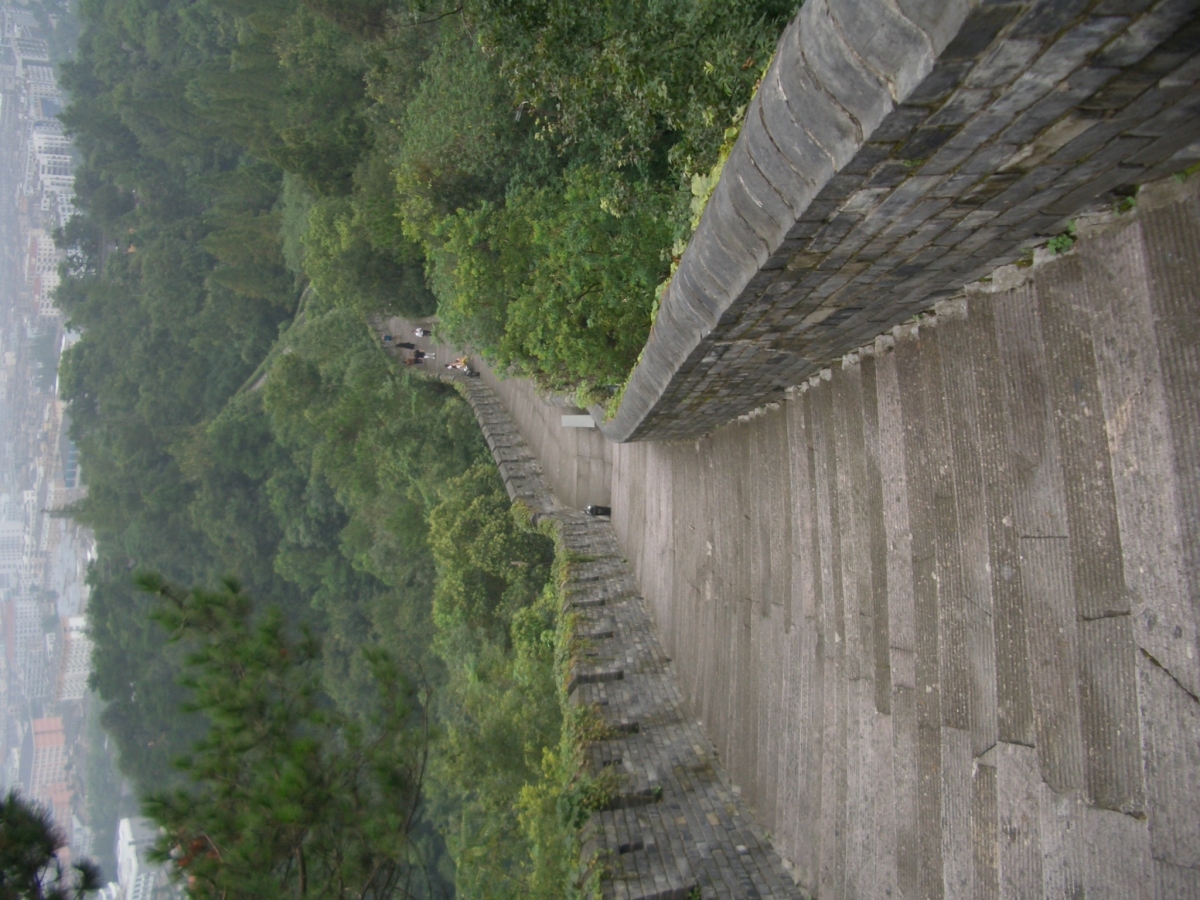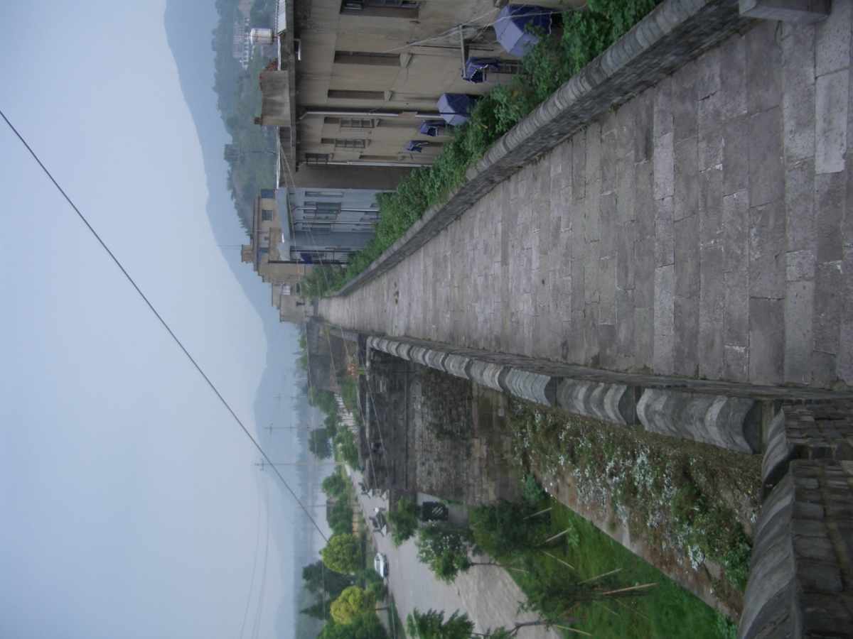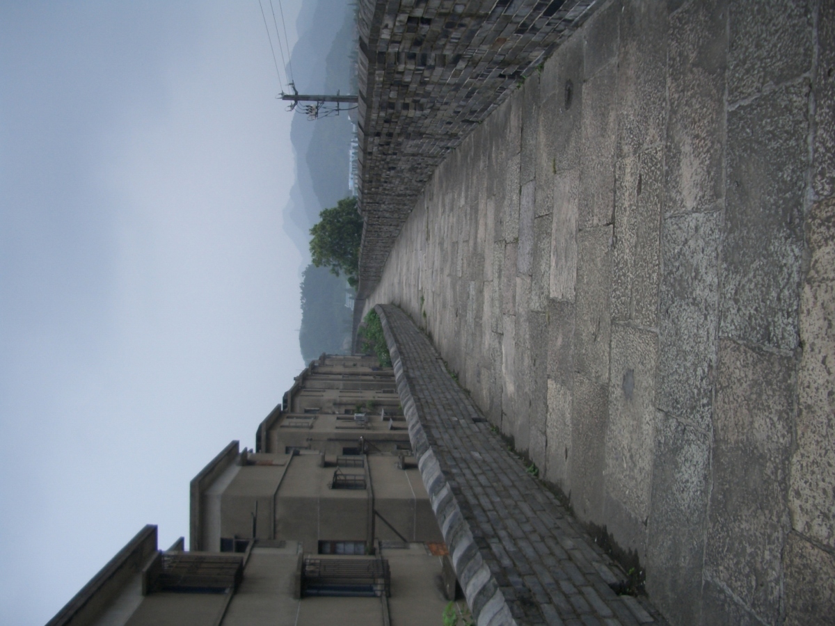 台州市下の臨海市に台州府城があった。 南側と西側は川沿いに、北側は山の尾根に沿って城壁がある。東側は城門だけが残っている。