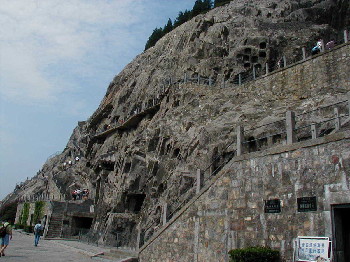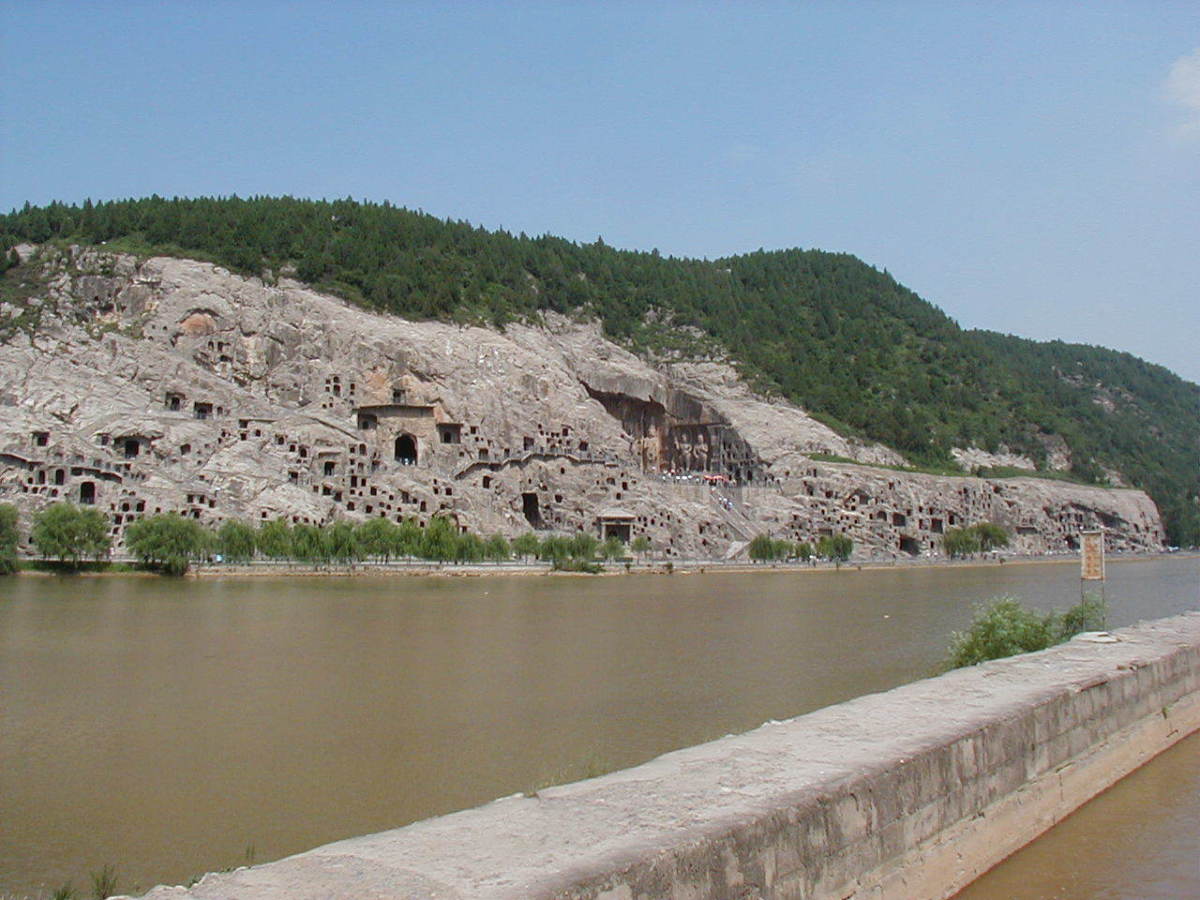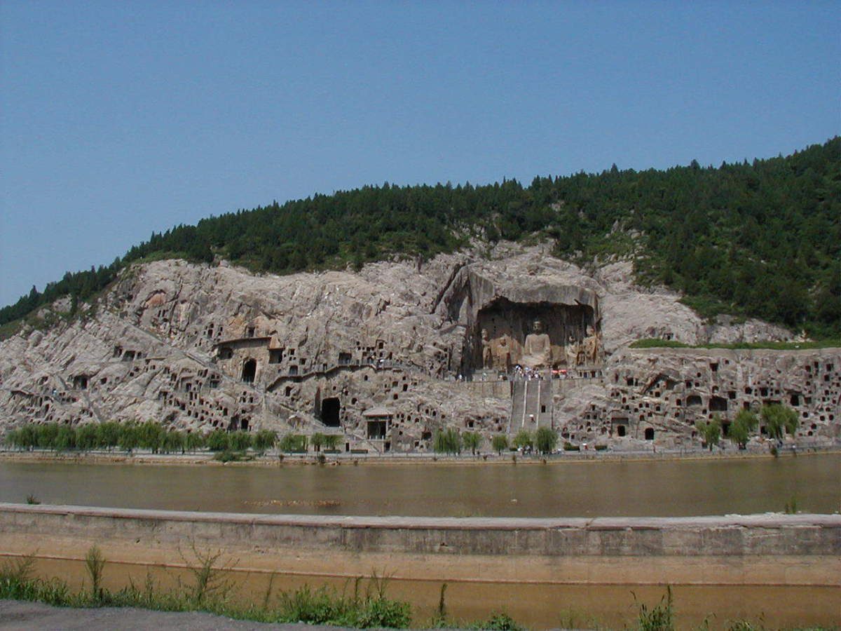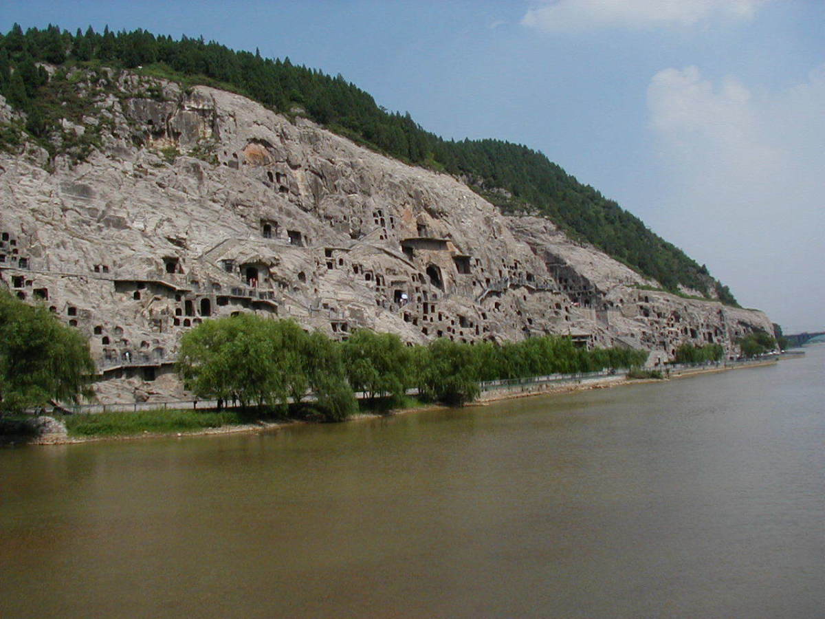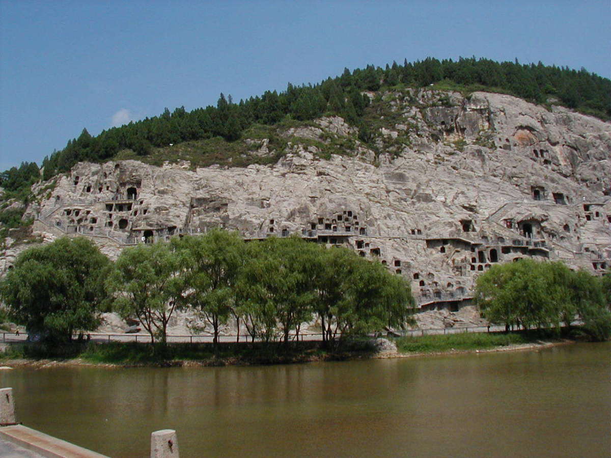 洛陽郊外の川沿いの岩壁に石窟が掘られている。 2000年に世界遺産に登録されている。