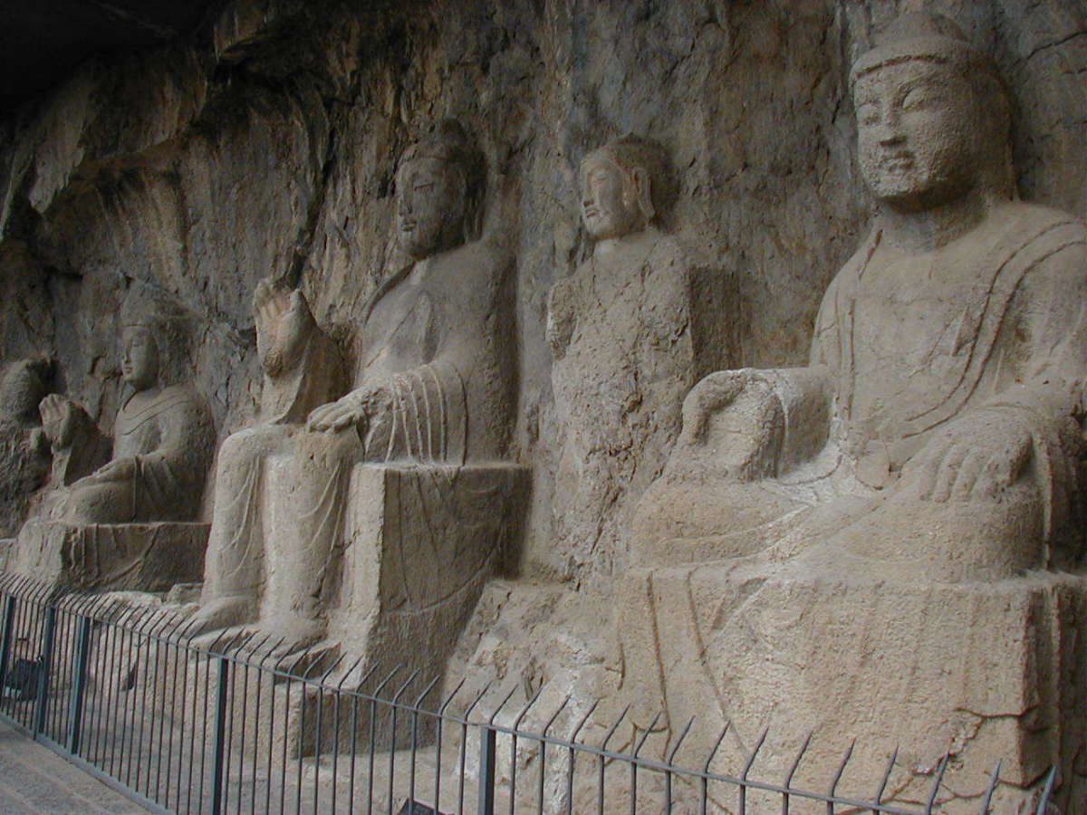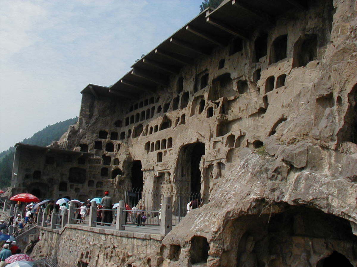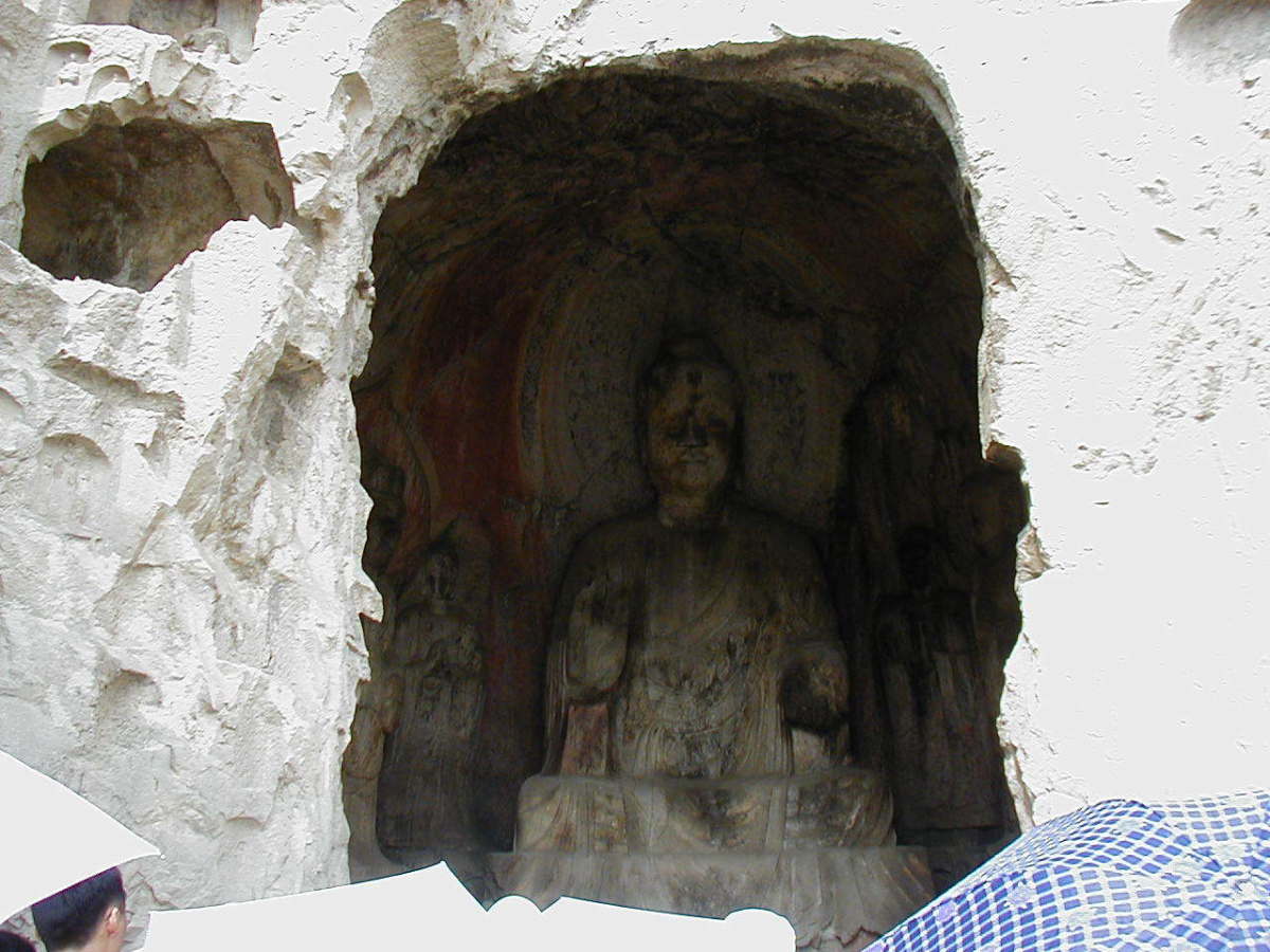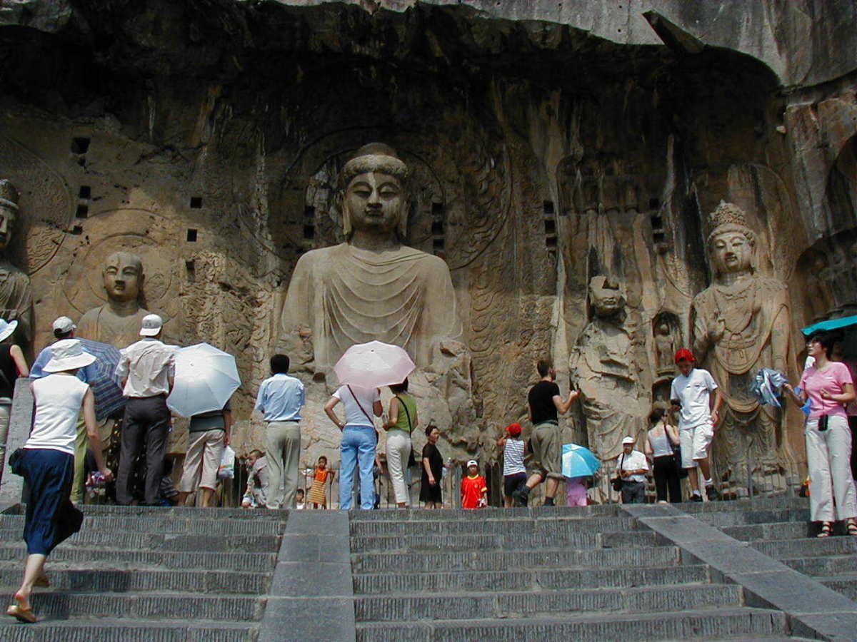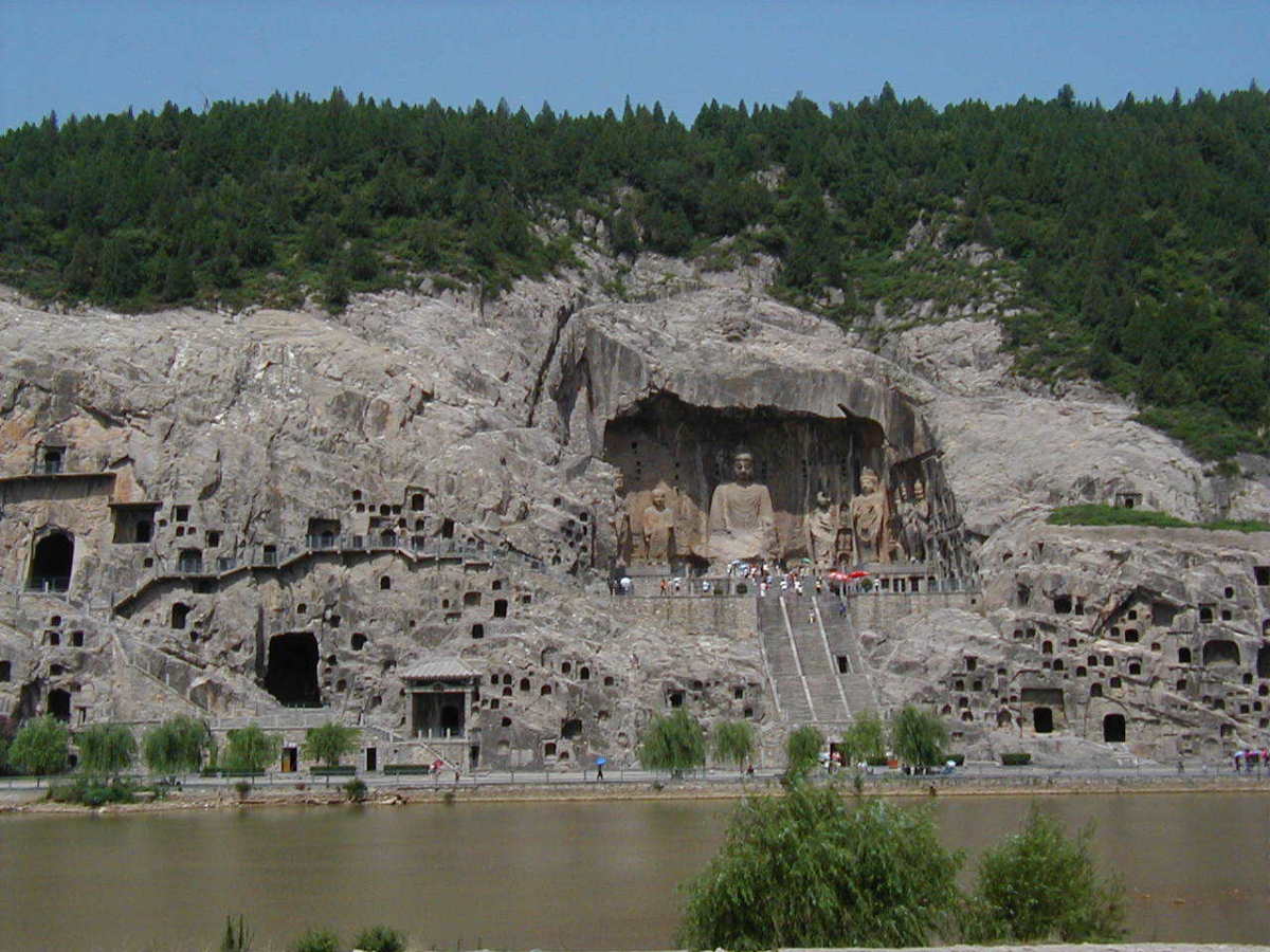 洛陽郊外の川沿いの岩壁に石窟が掘られている。 2000年に世界遺産に登録されている。