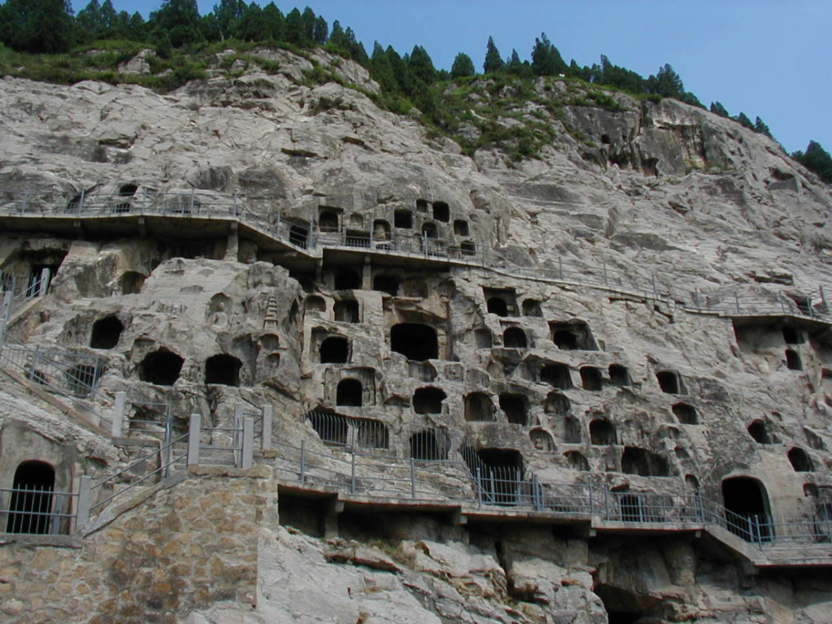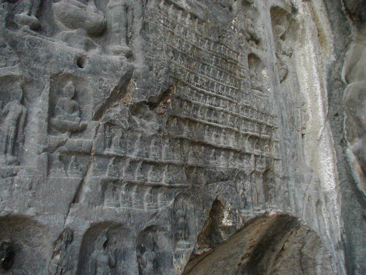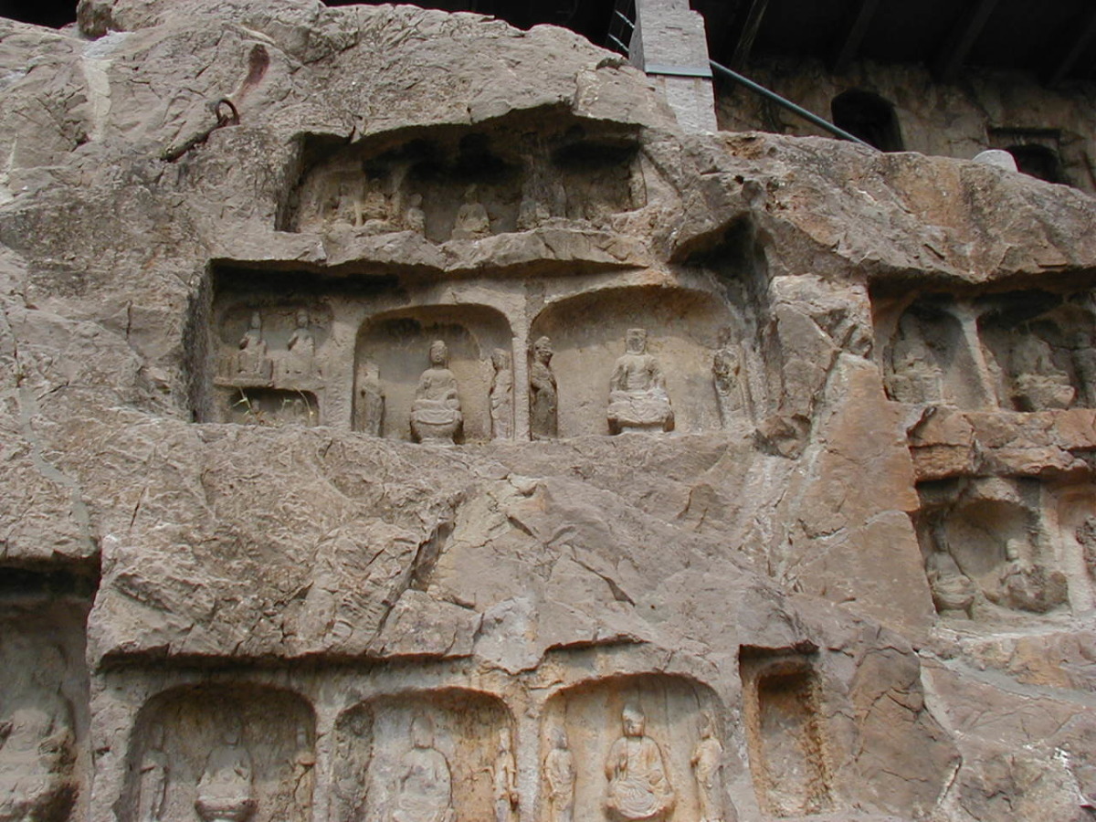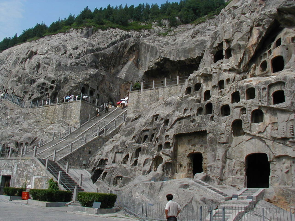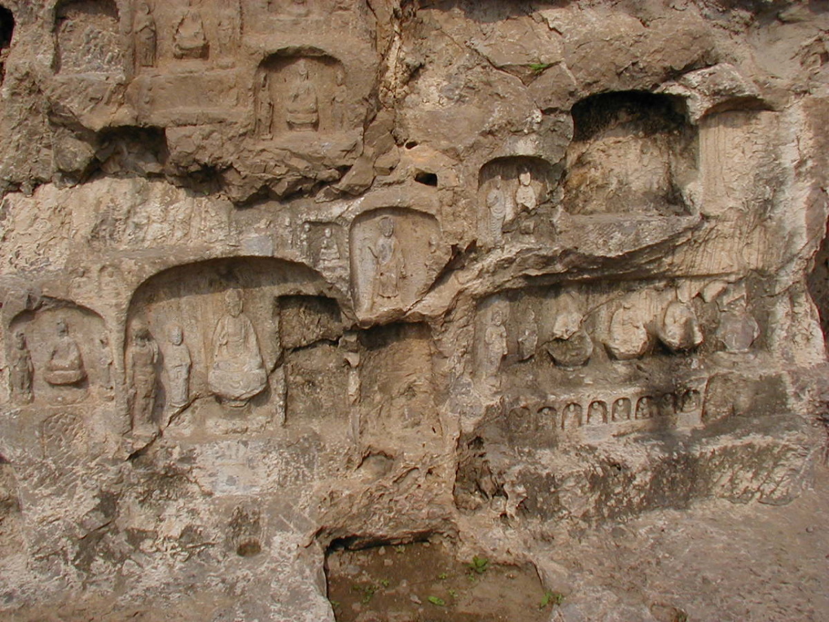 洛陽郊外の川沿いの岩壁に石窟が掘られている。 2000年に世界遺産に登録されている。