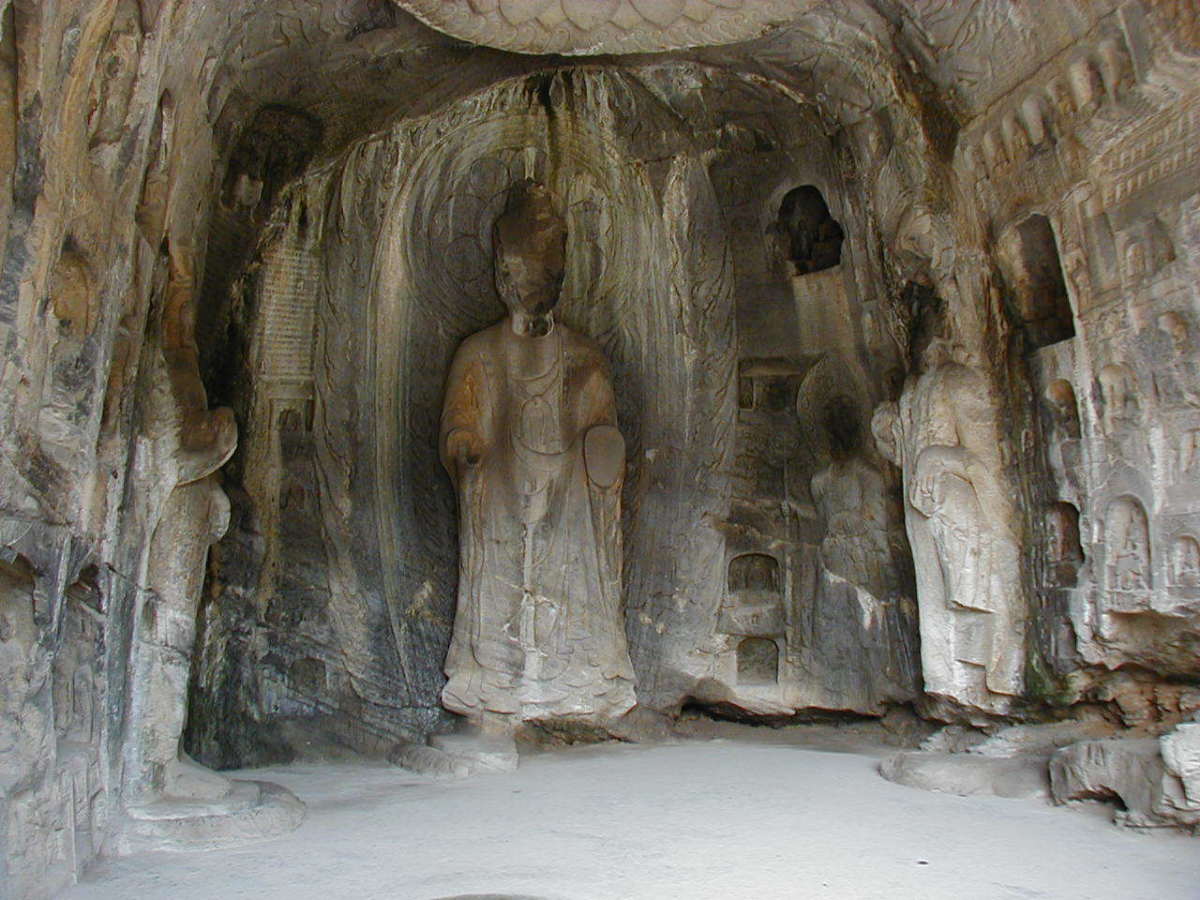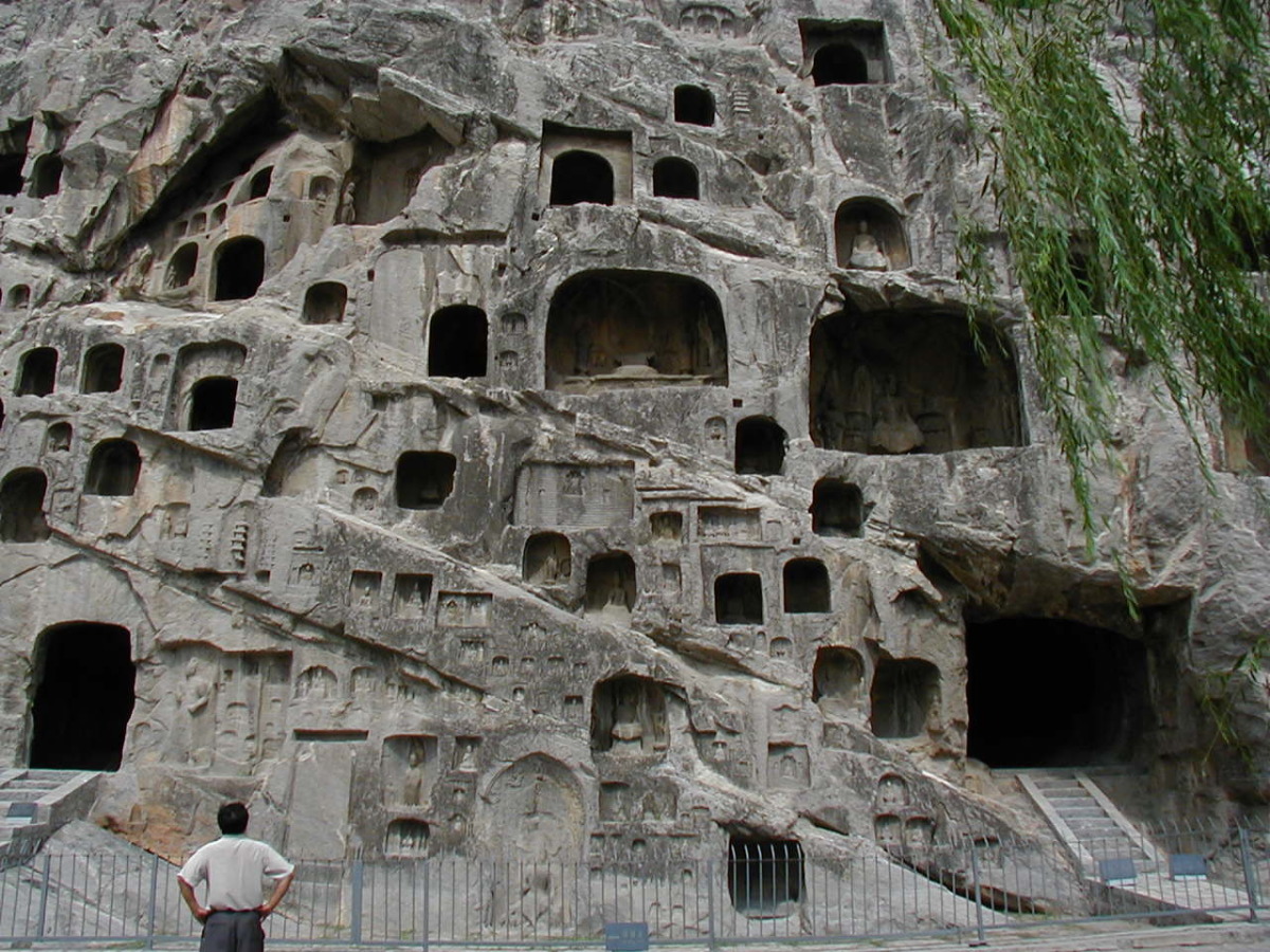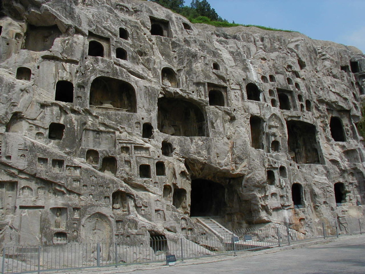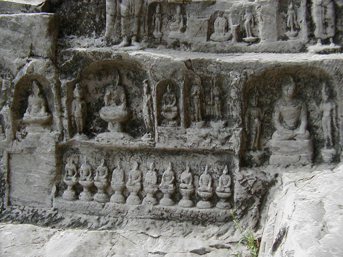 洛陽郊外の川沿いの岩壁に石窟が掘られている。 2000年に世界遺産に登録されている。