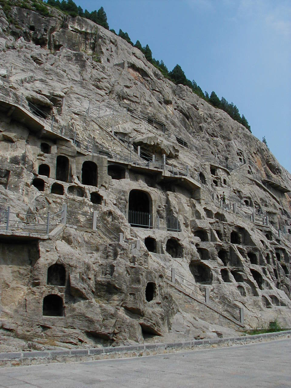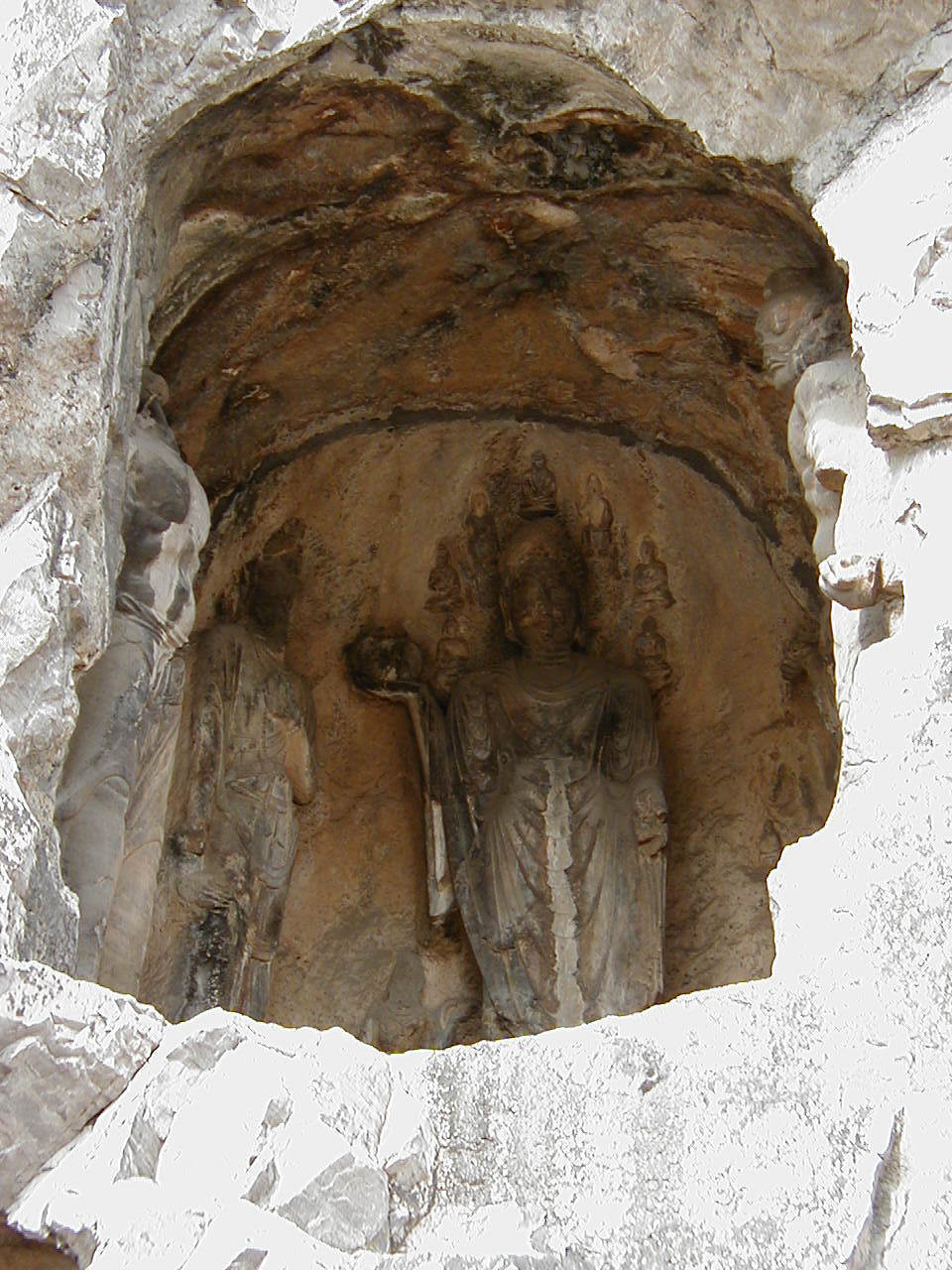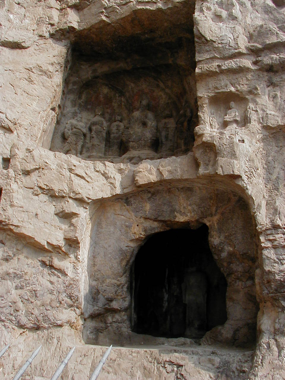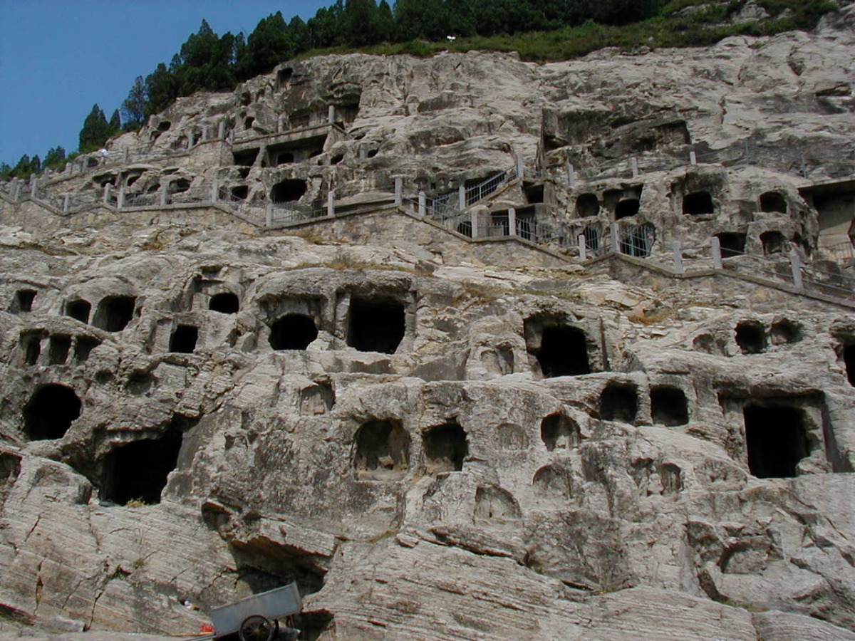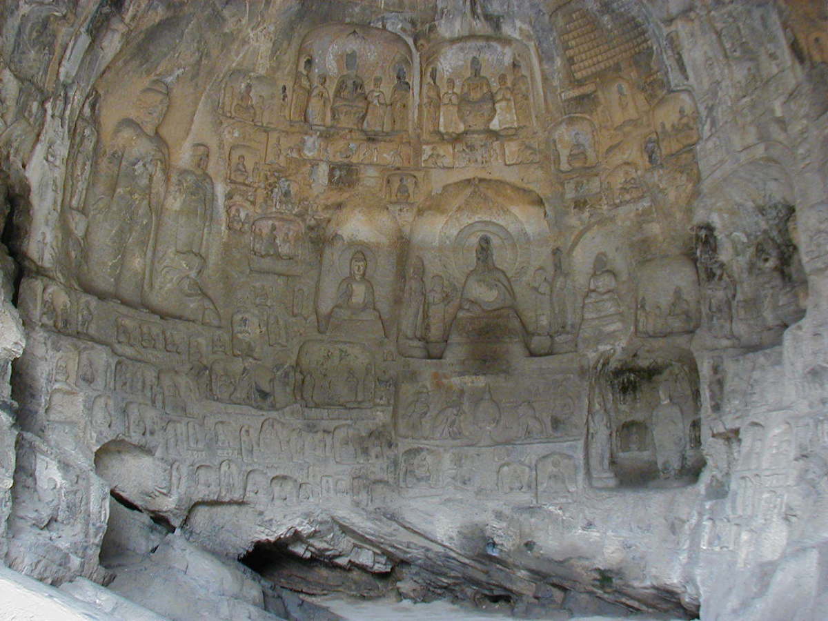 洛陽郊外の川沿いの岩壁に石窟が掘られている。 2000年に世界遺産に登録されている。