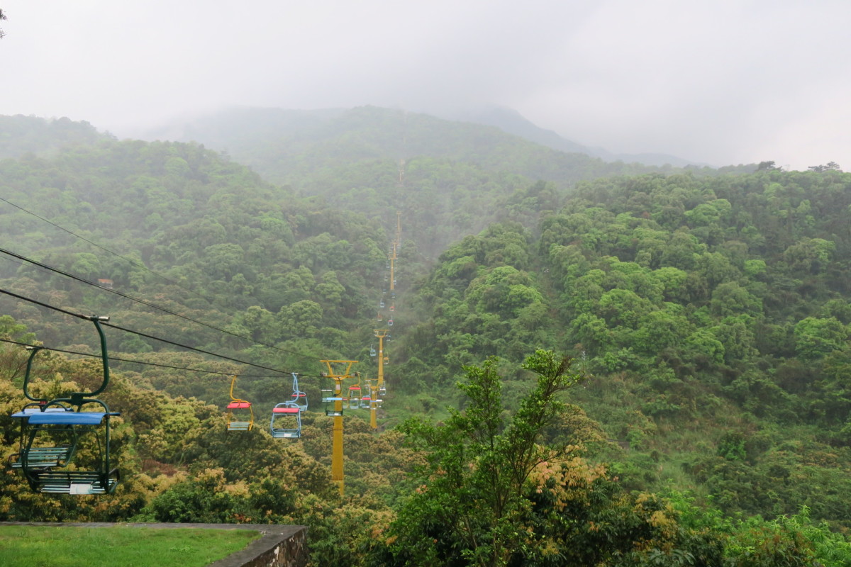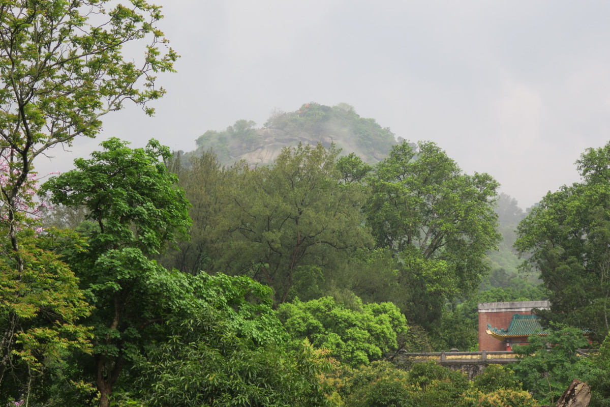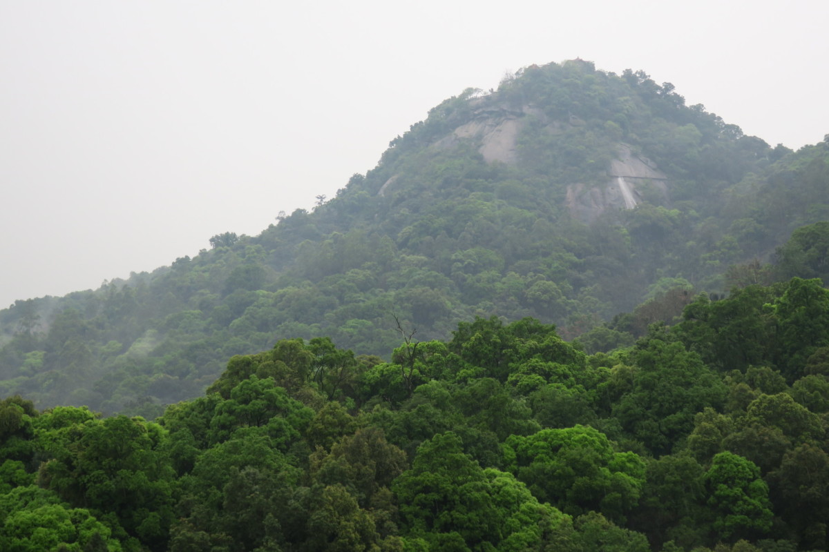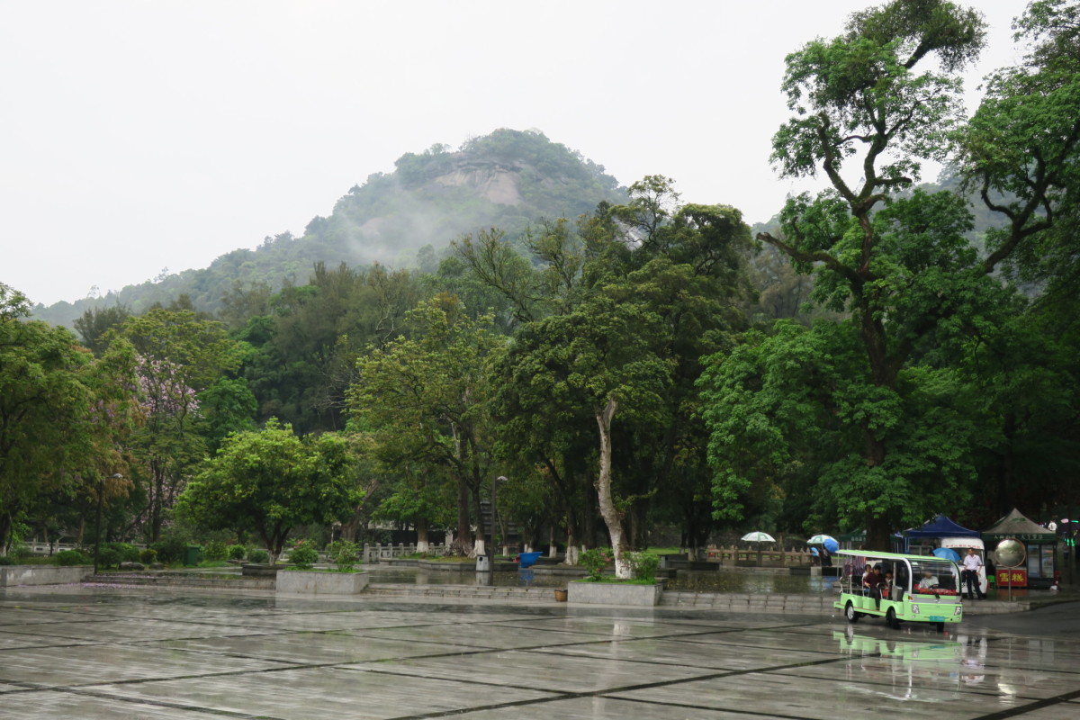 車で広州から恵州へ移動すると、高速道路から見える雄大な山。 ロープウェイで山上へ行くことができるが、雨のため休止となった。