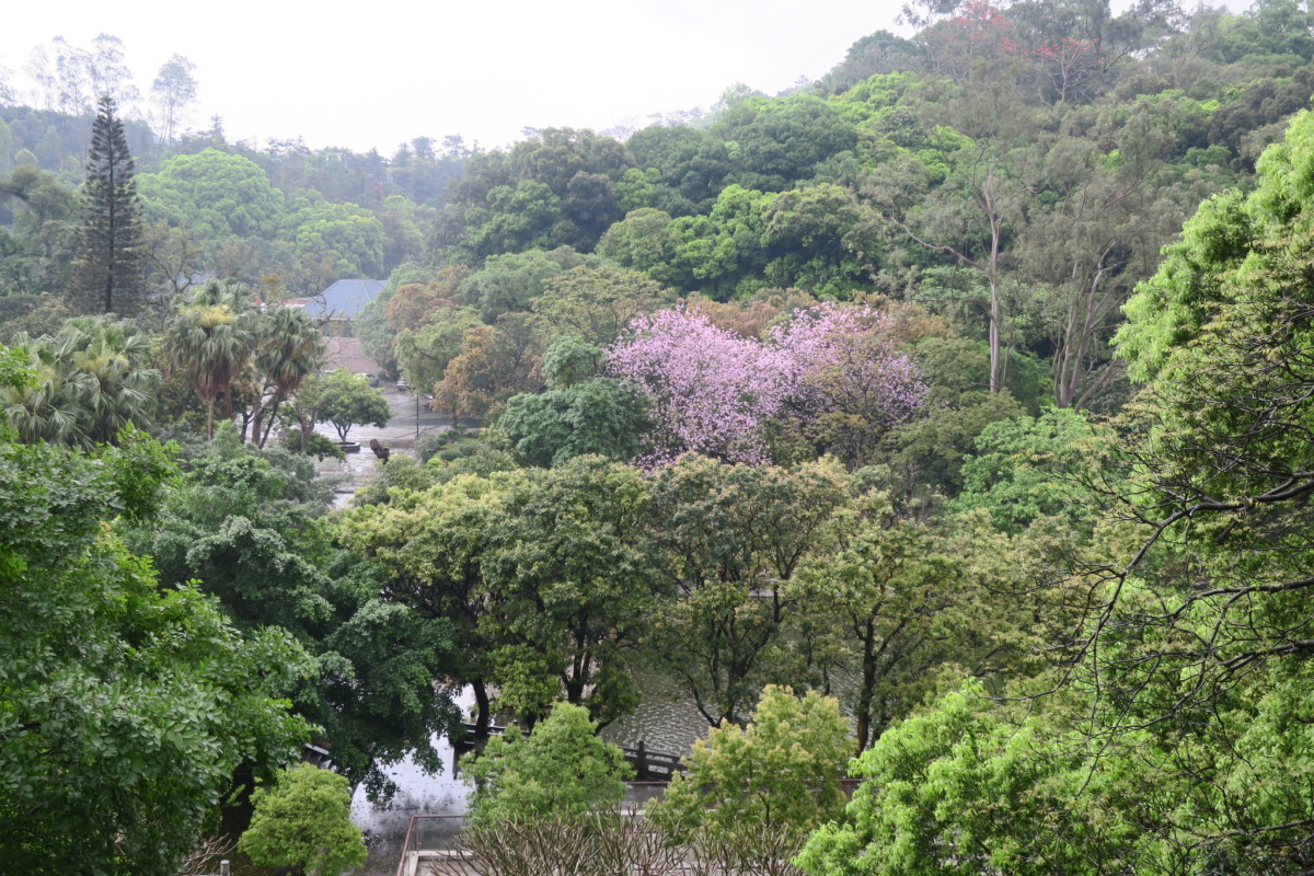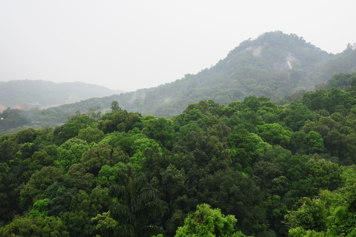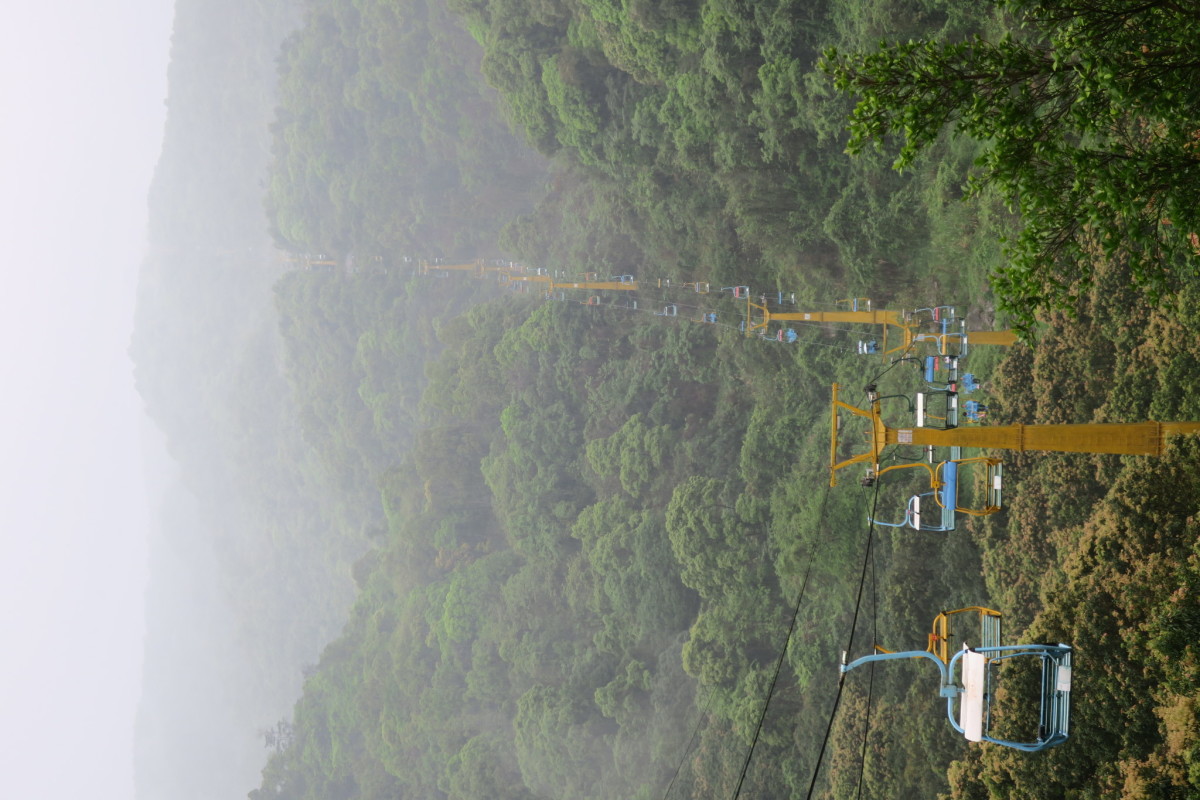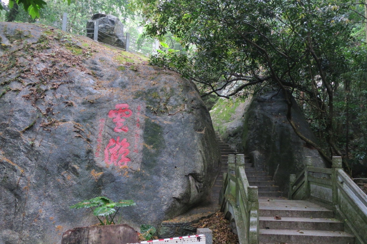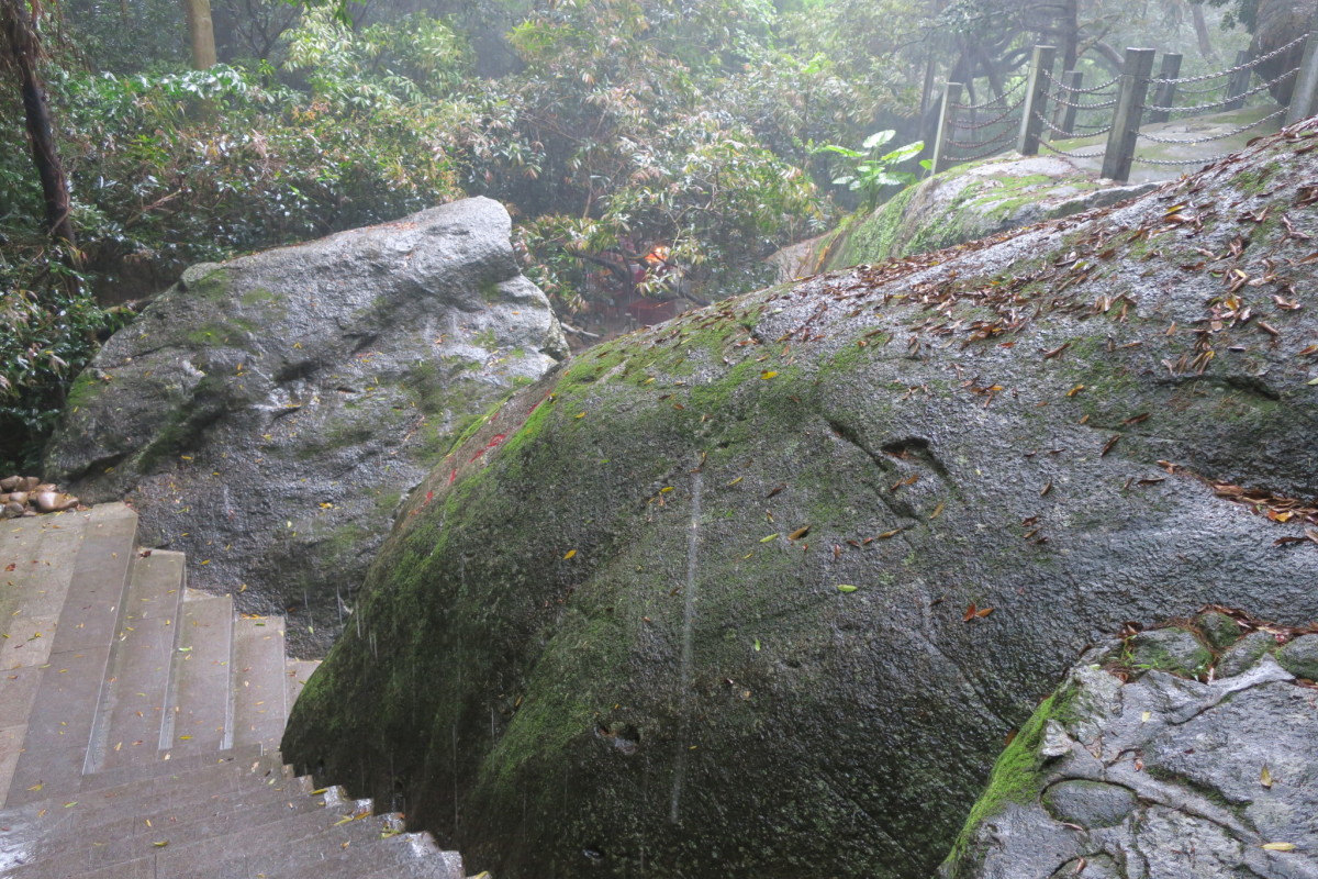 車で広州から恵州へ移動すると、高速道路から見える雄大な山。 ロープウェイで山上へ行くことができるが、雨のため休止となった。