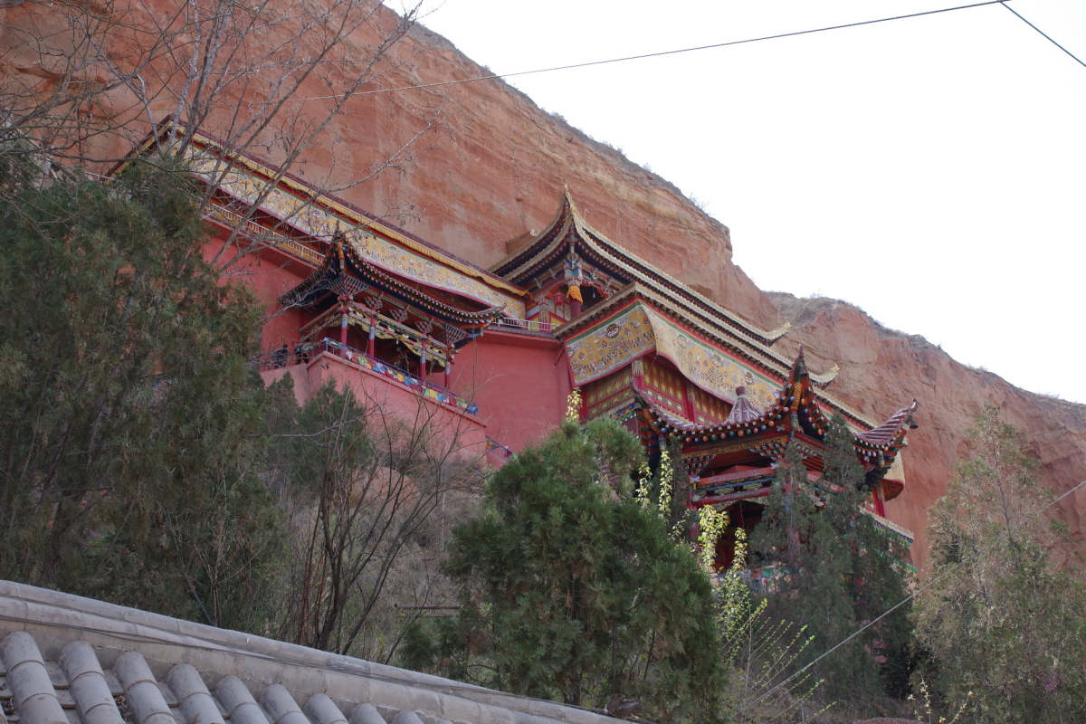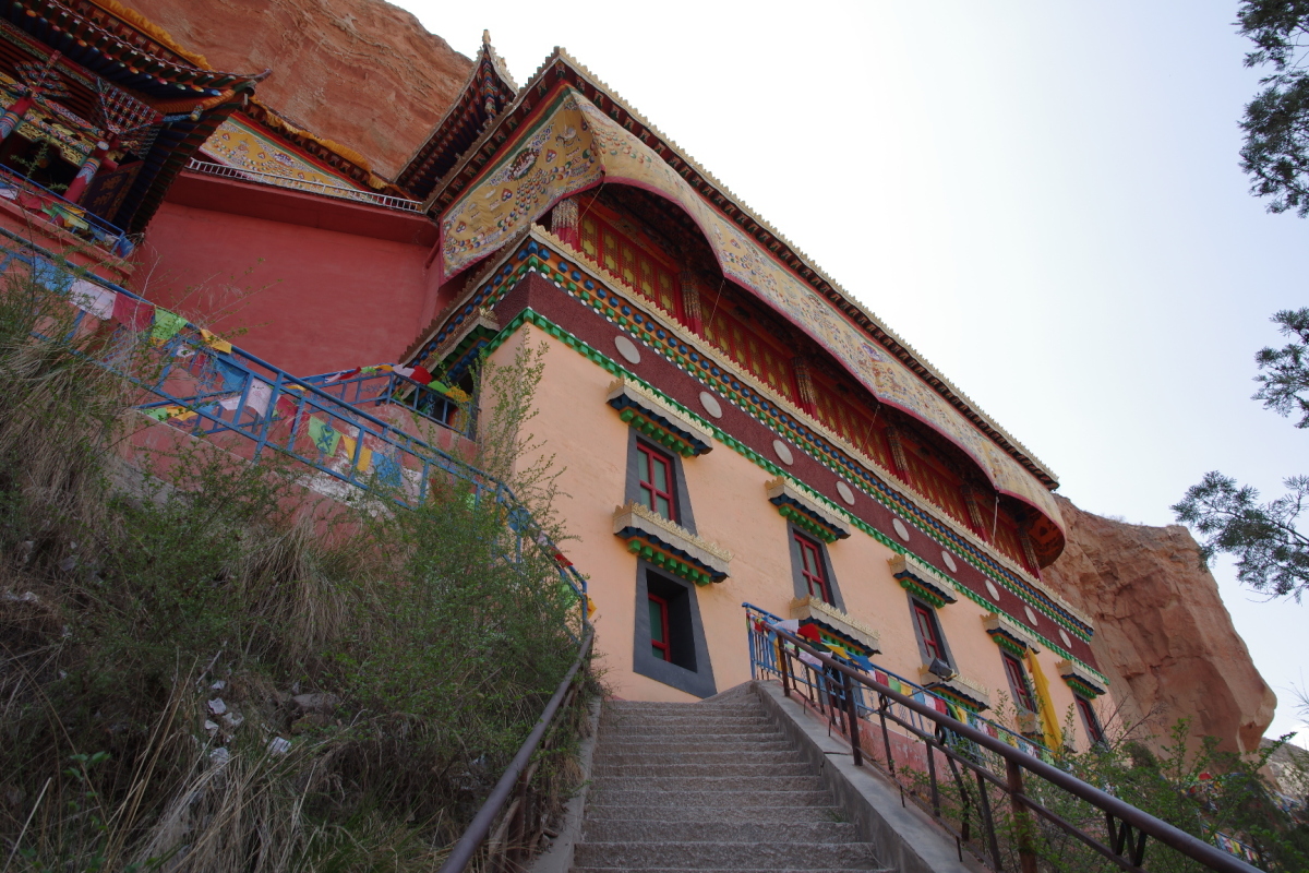 赤い絶壁に張り付くように建てられたお寺。 歴史的には古いようだが、現在あるのは再建されたもの。