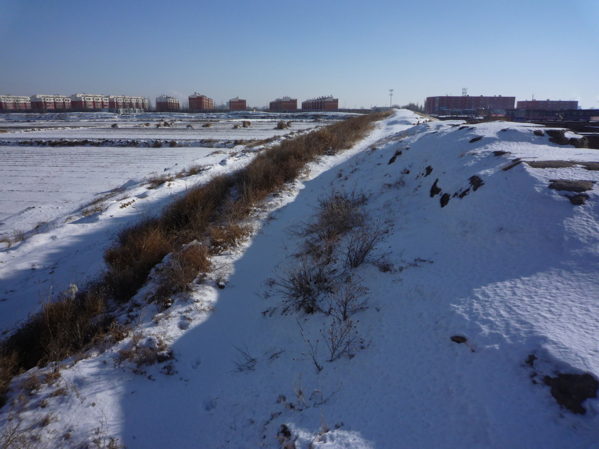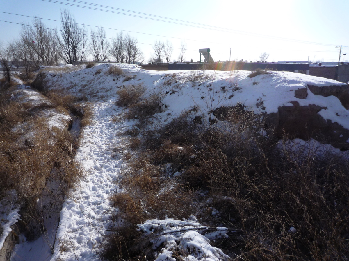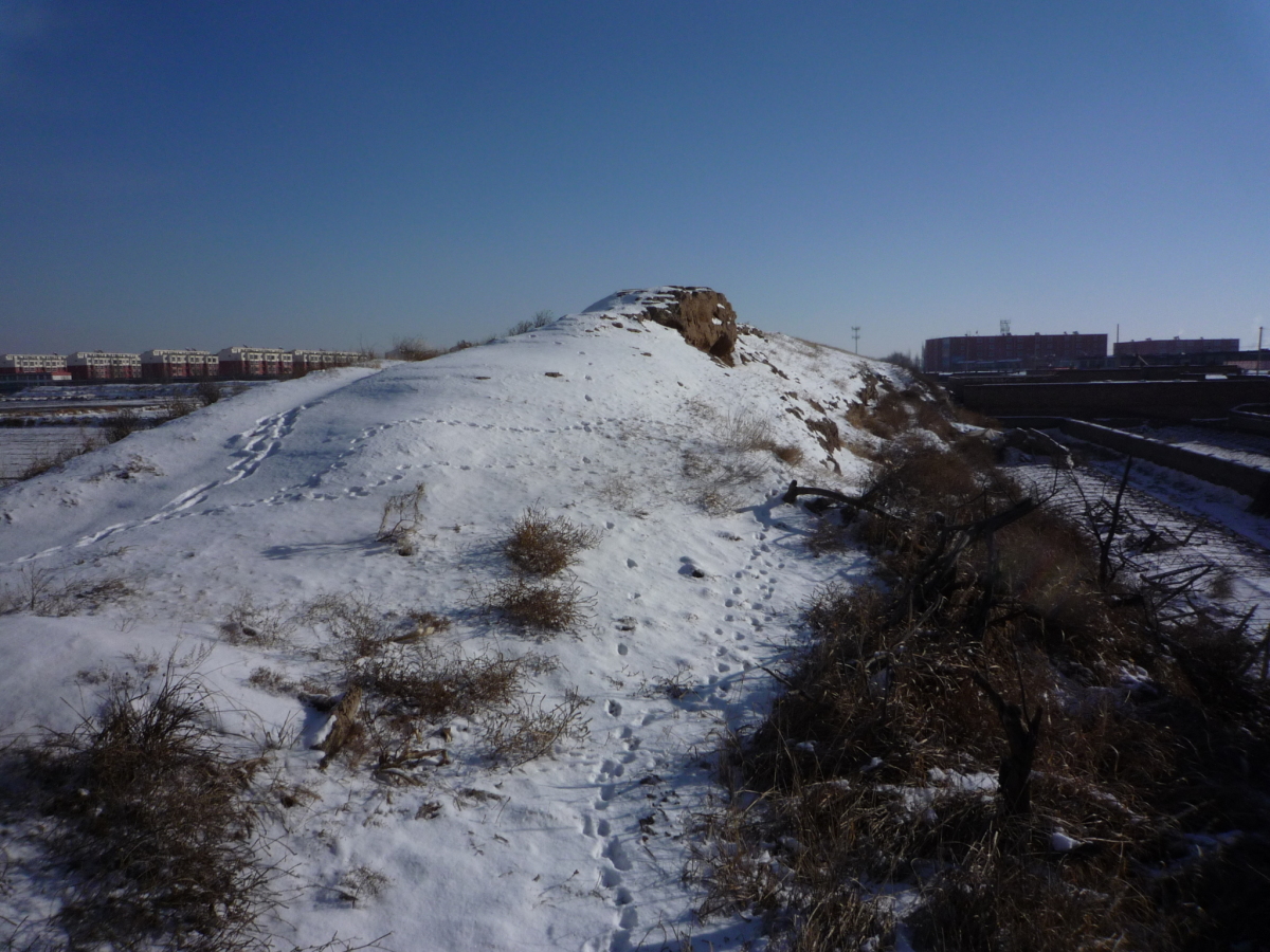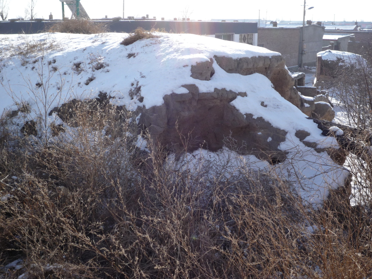 包頭駅南側の九原区麻池鎮にある漢代の古城。 漢の時代は五原県城だったらしく、呂布の故郷とされている。 城壁だけが残っており、城内は畑になっていた。