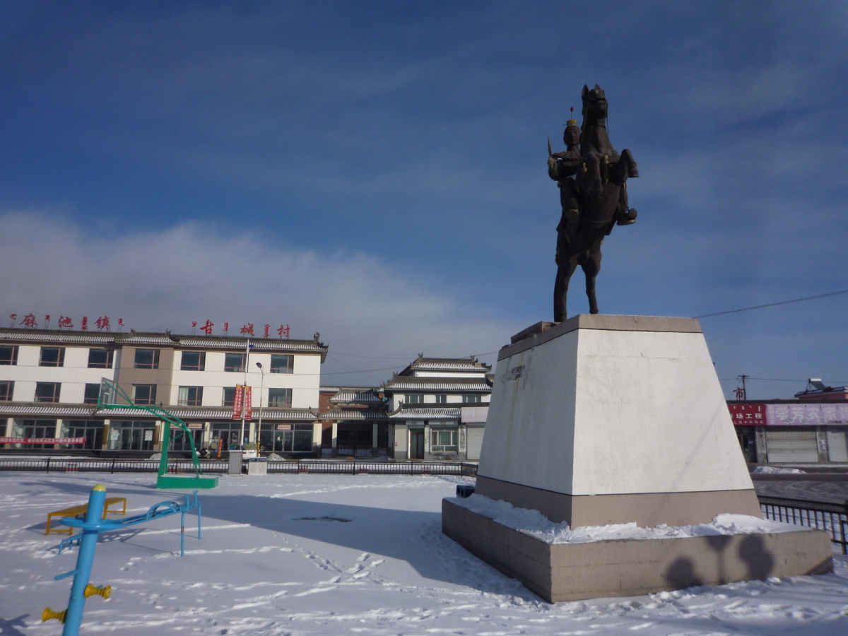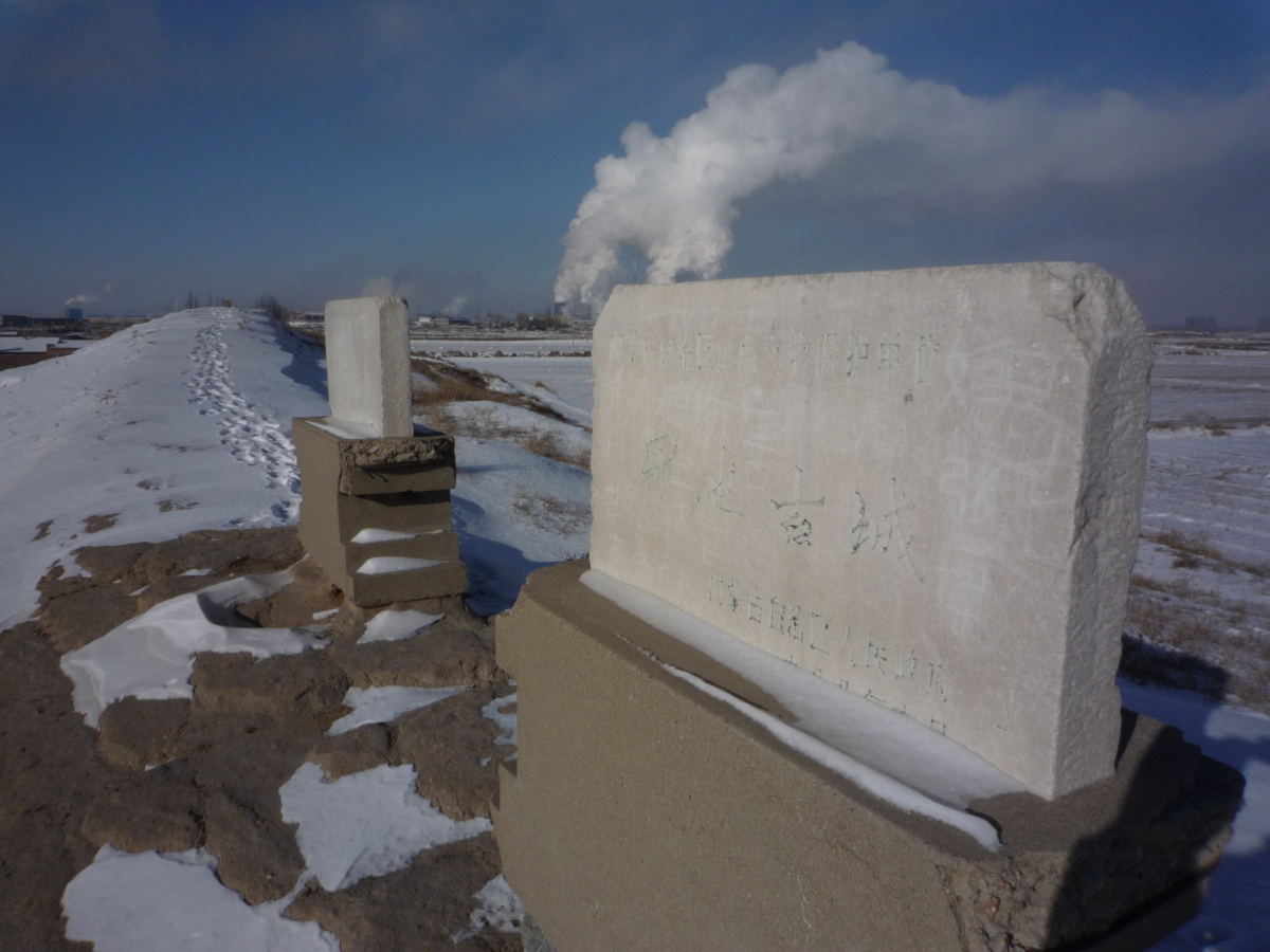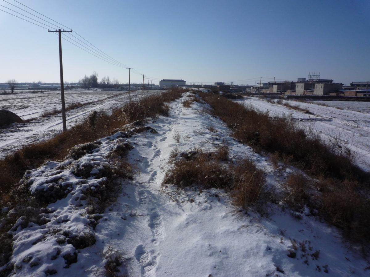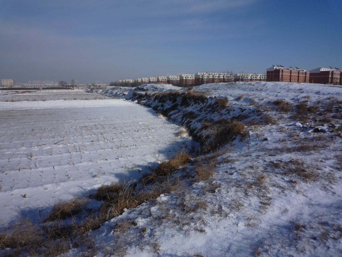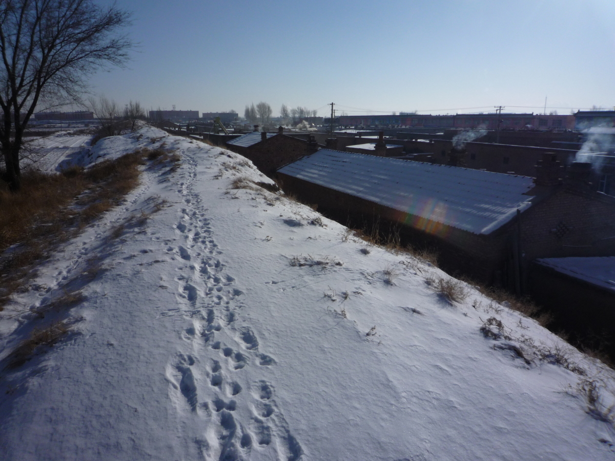 包頭駅南側の九原区麻池鎮にある漢代の古城。 漢の時代は五原県城だったらしく、呂布の故郷とされている。 城壁だけが残っており、城内は畑になっていた。