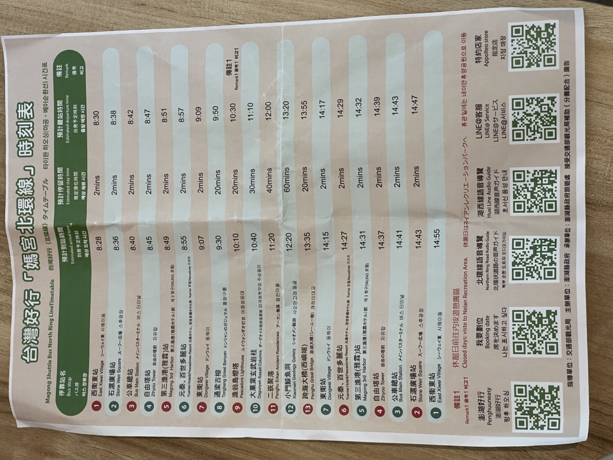 澎湖の北側にある白沙島と漁翁島を巡る一日バスツアーに参加した。本来は前日までに予約しないといけないが、席が空いていれば飛び入り参加できる。