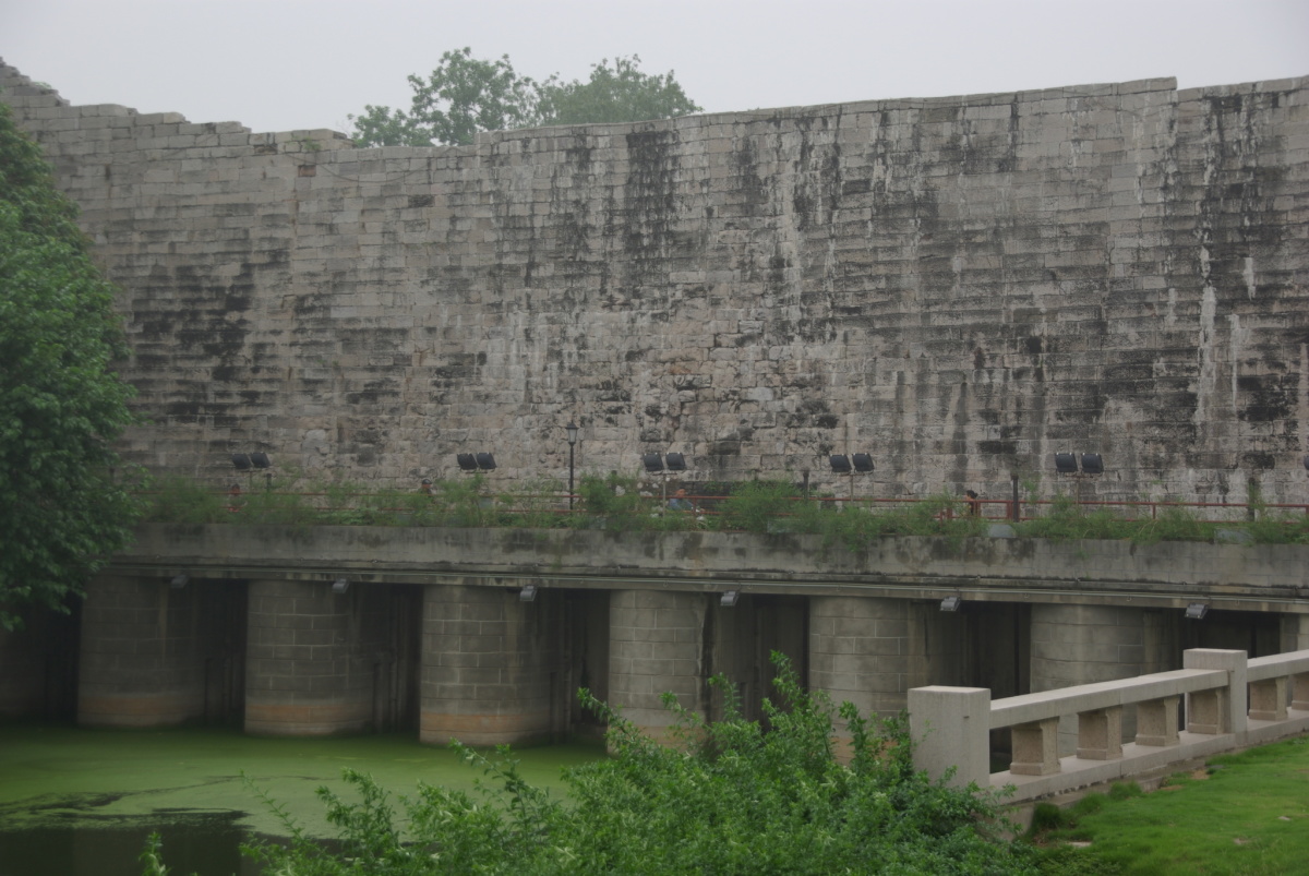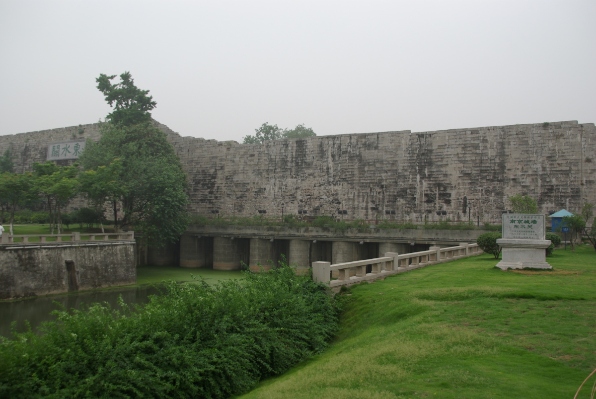 東水関では城壁の下を水路が通っている。