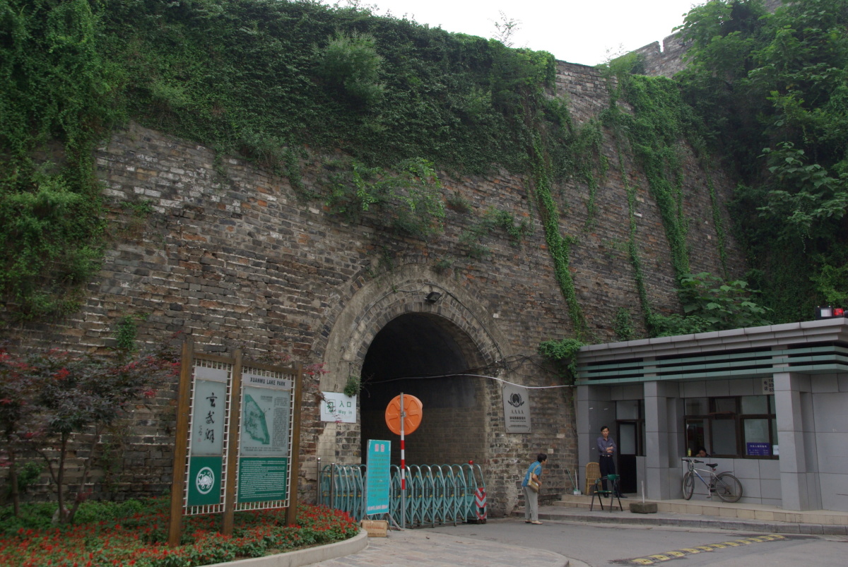 玄武湖に沿って城壁がカーブを描くように建てられている。