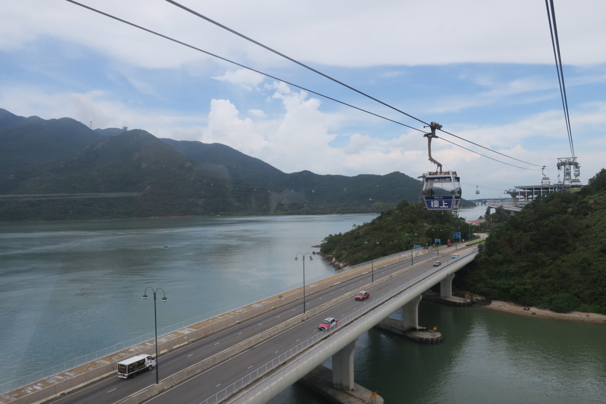 当時建設中の港珠澳大橋が見える。 道路が海に潜っている。