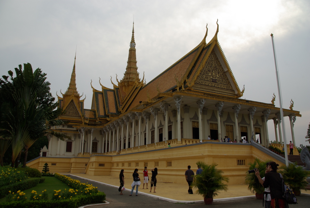 ベトナムのホーチミンからバスでカンボジアに入国。 プノンペンに到着後、その日のうちに王宮を観光した。