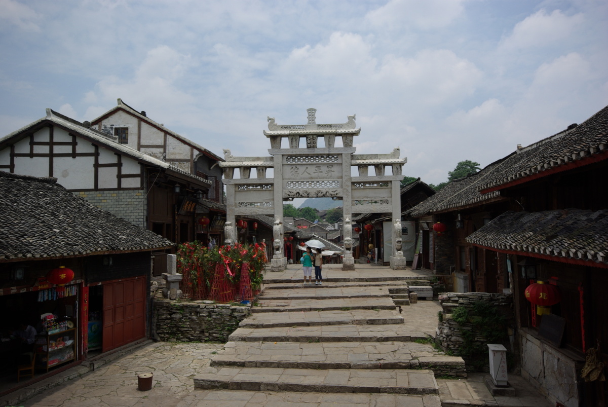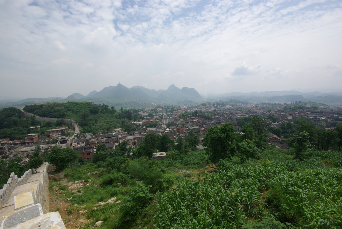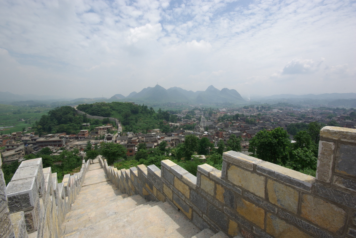 貴陽市花渓区。 新しい城壁に囲われている。 古鎮内の雰囲気は良く、周辺の景色も綺麗。