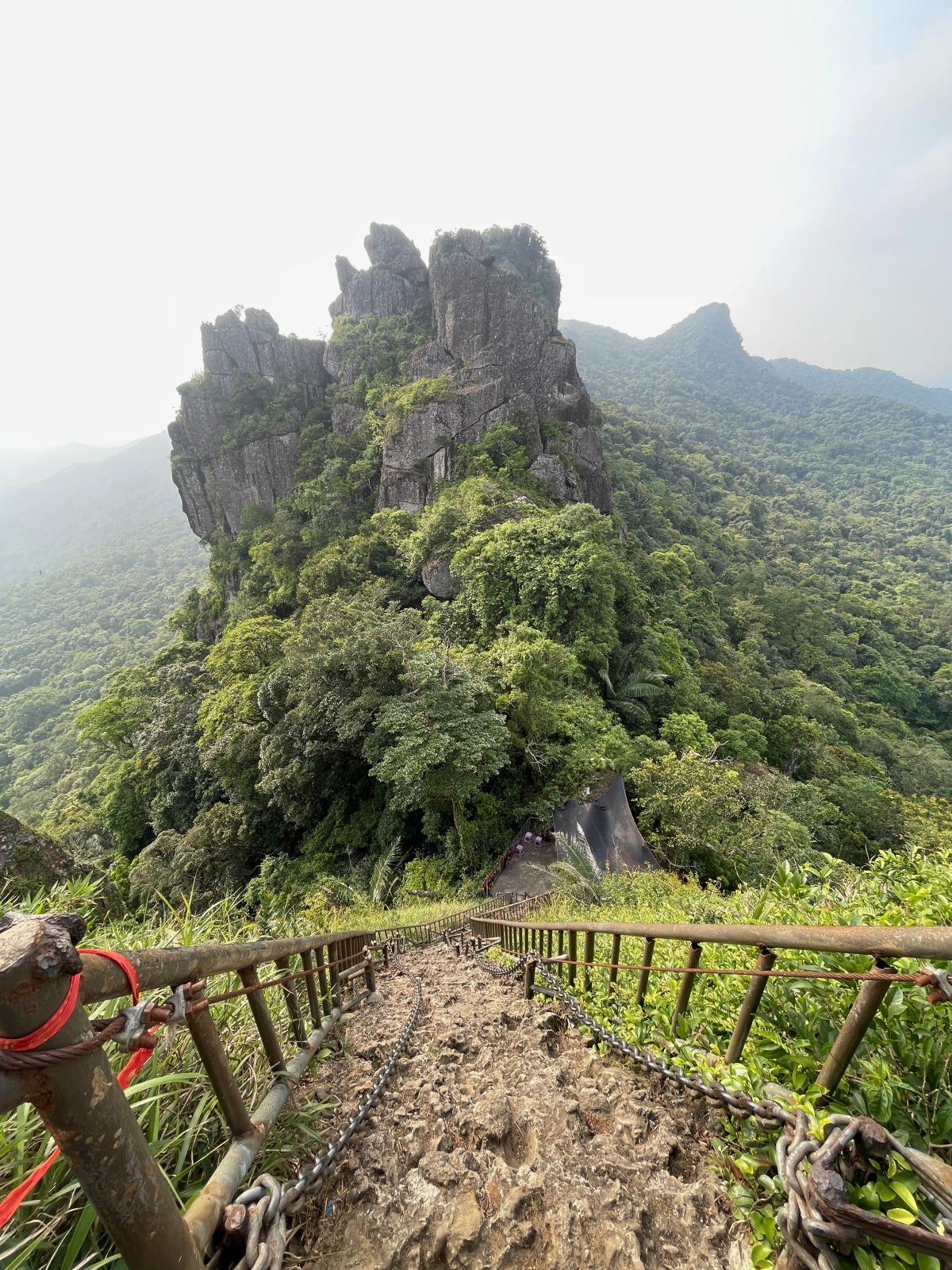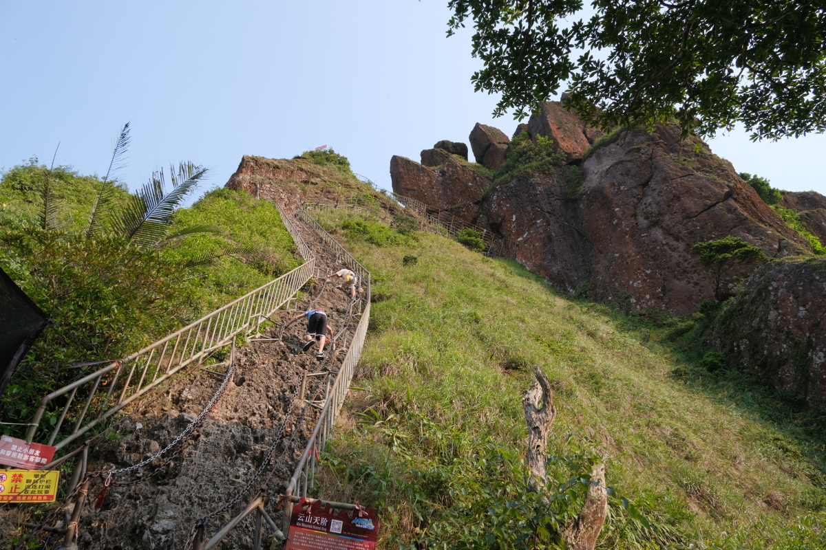 やっと頂上付近に到着。ここからは安全ベルトを着けて岩登り。(別料金が必要)