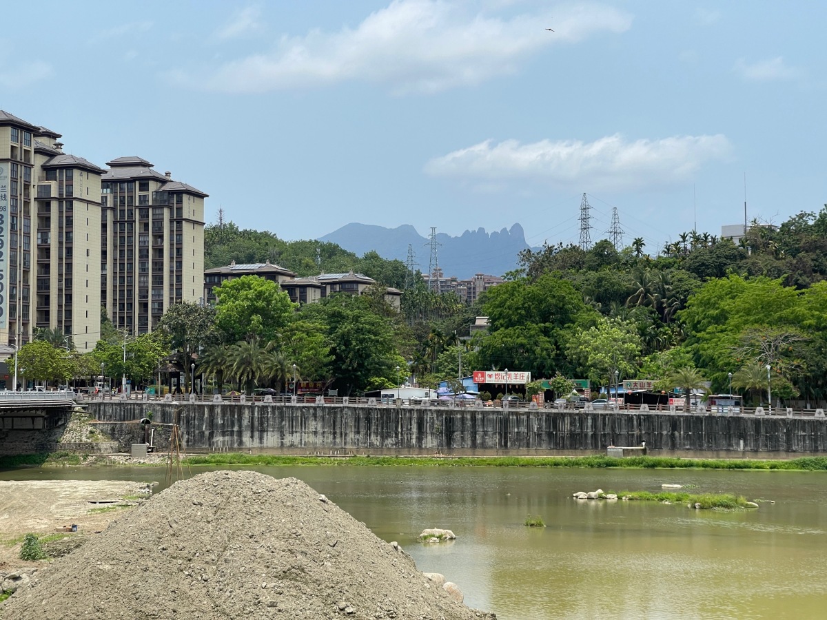 市区内からも七仙嶺が見える。